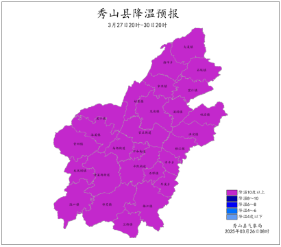 图1 3月27日20时―30日20时秀山县降温幅度预报图