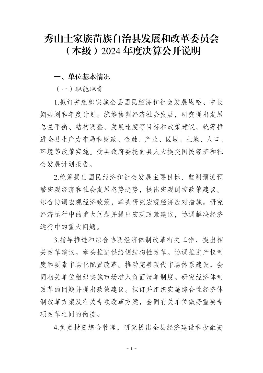 秀山土家族苗族自治县发展和改革委员会(本级)2024年度决算公开说明