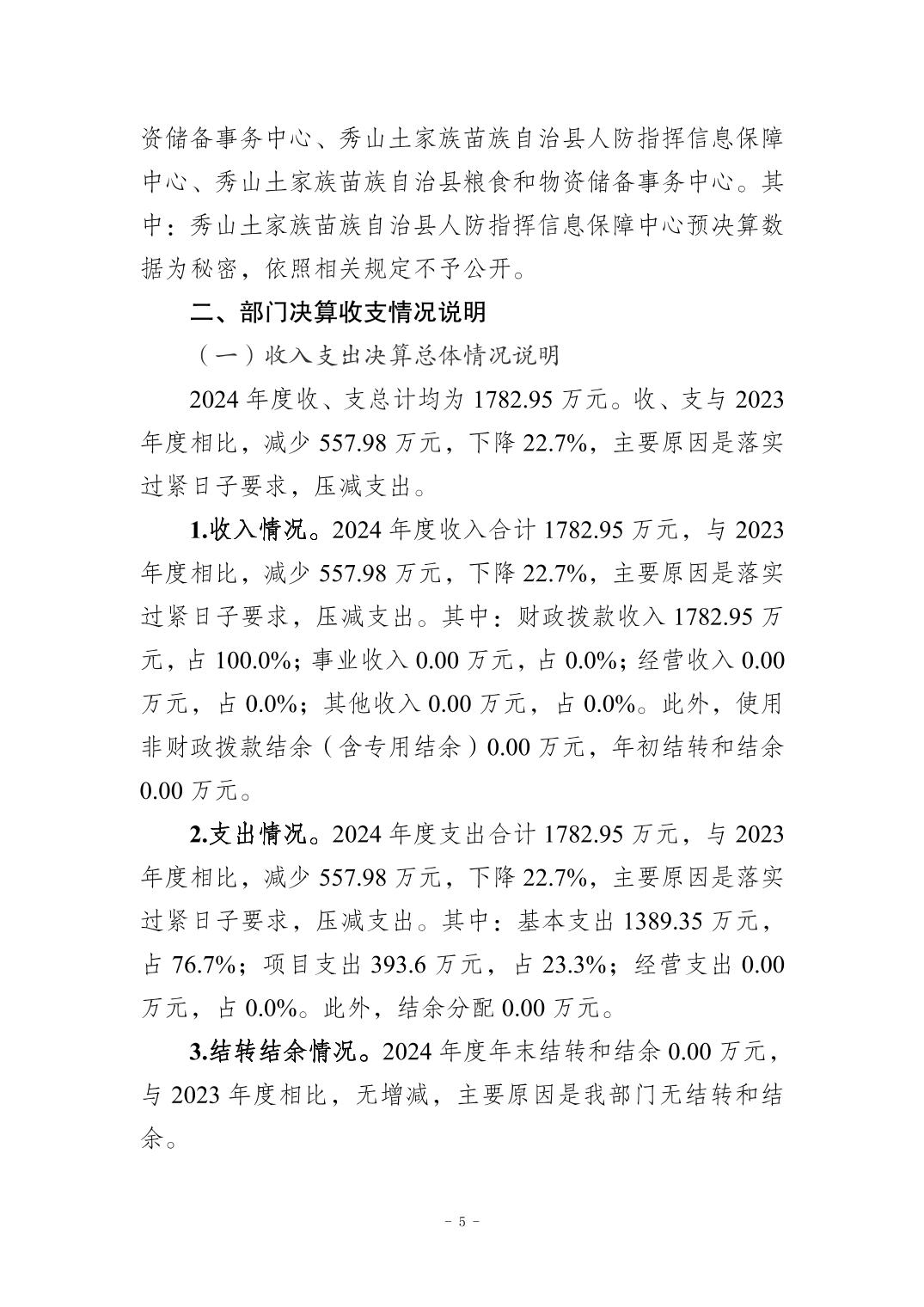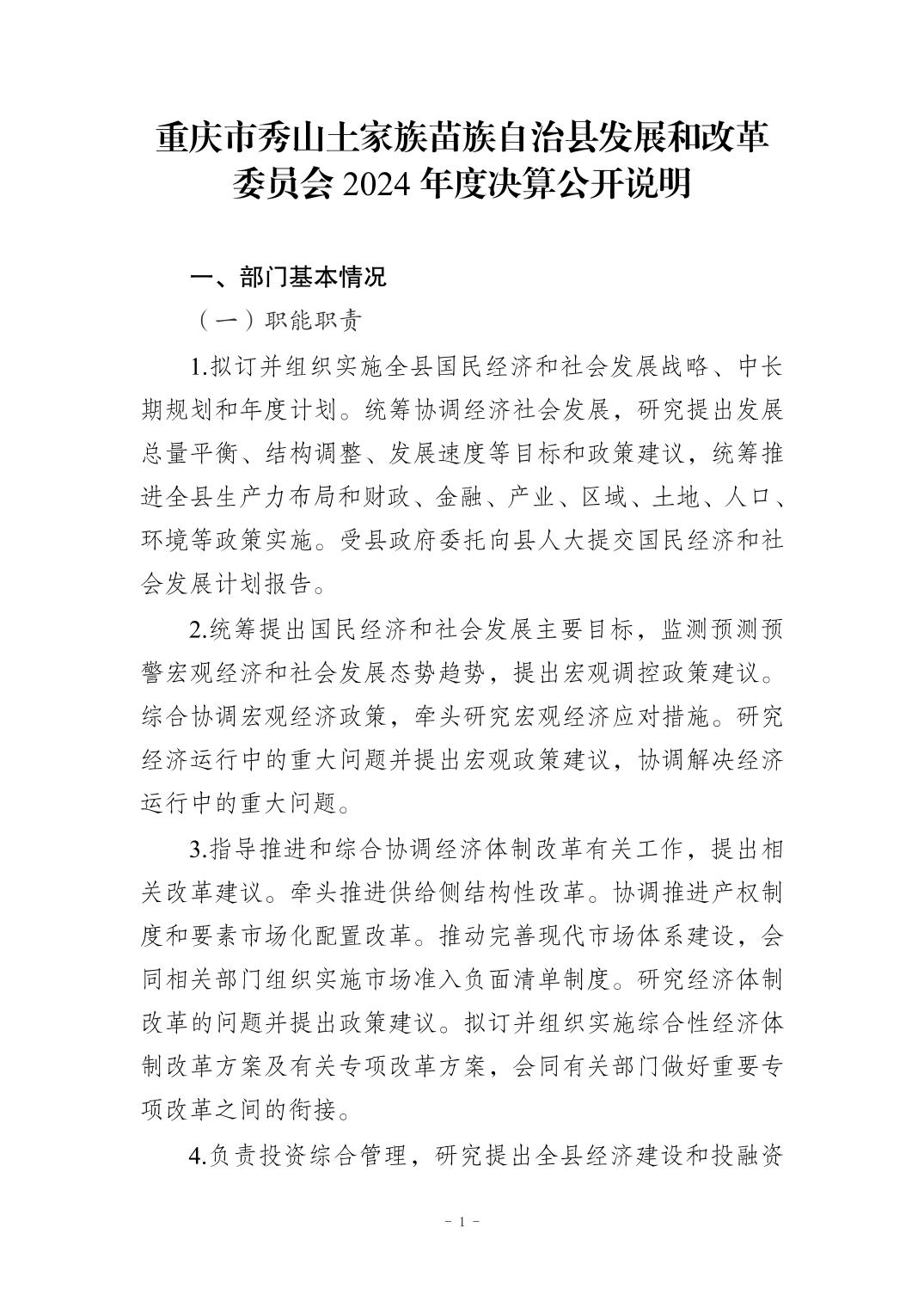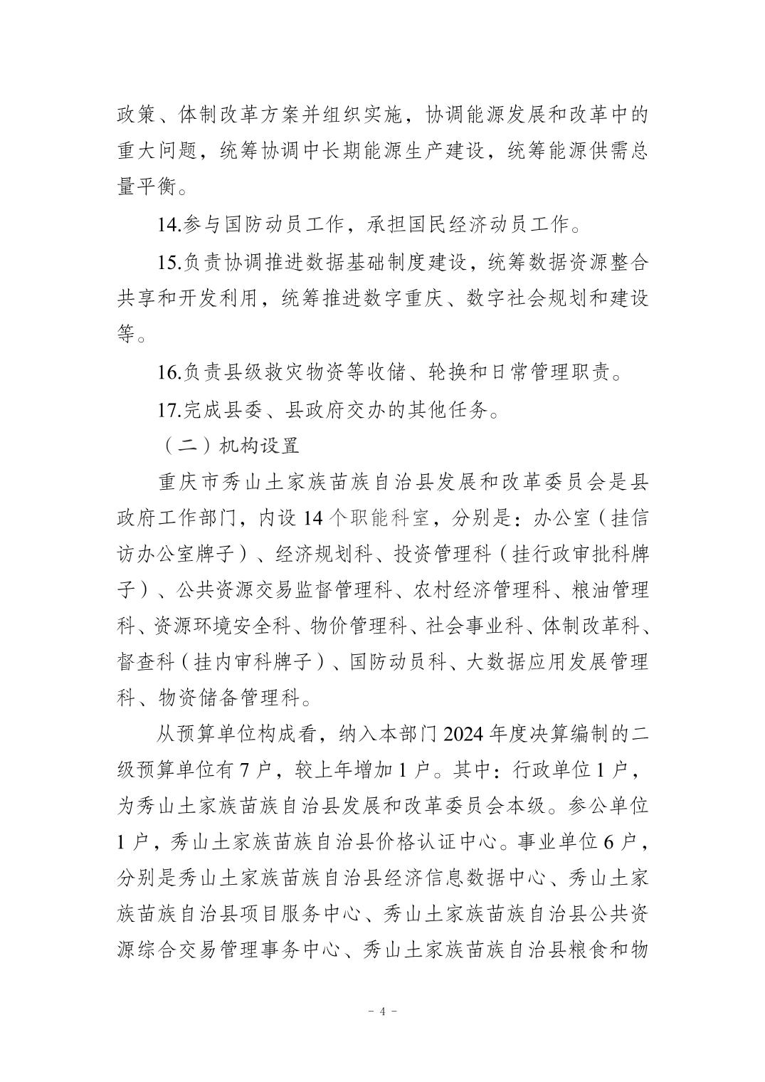 秀山土家族苗族自治县发展和改革委员会2024年度决算公开说明