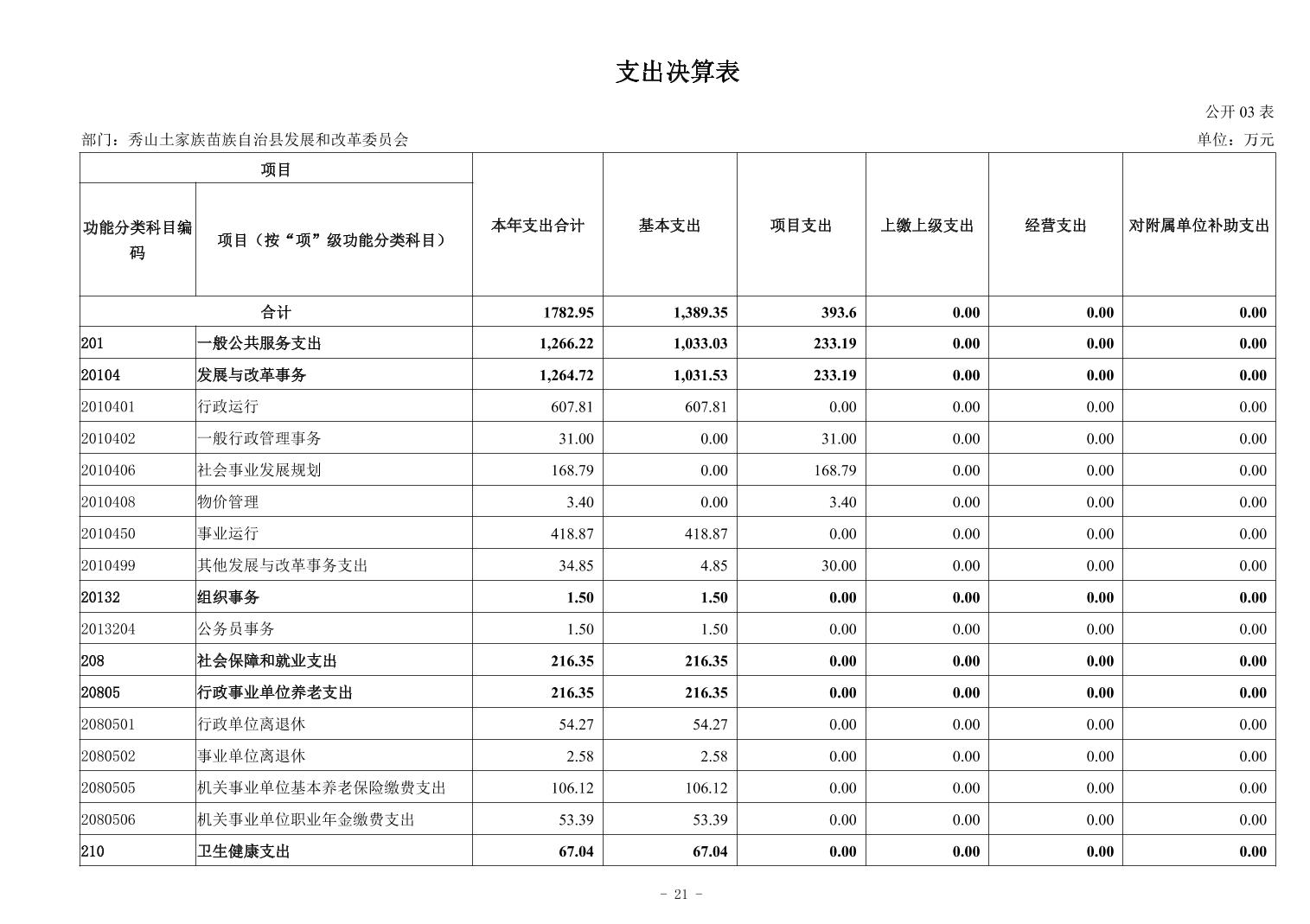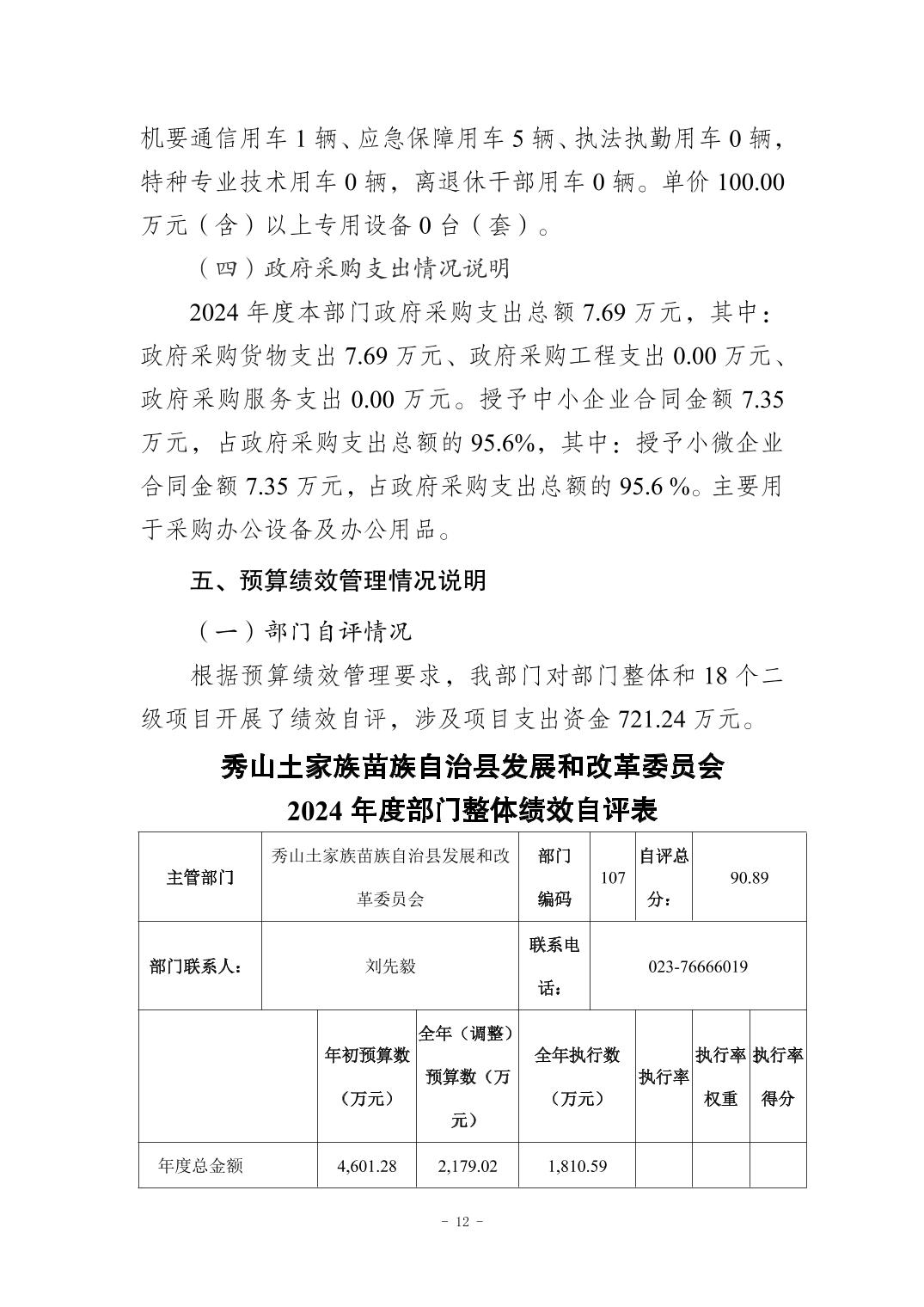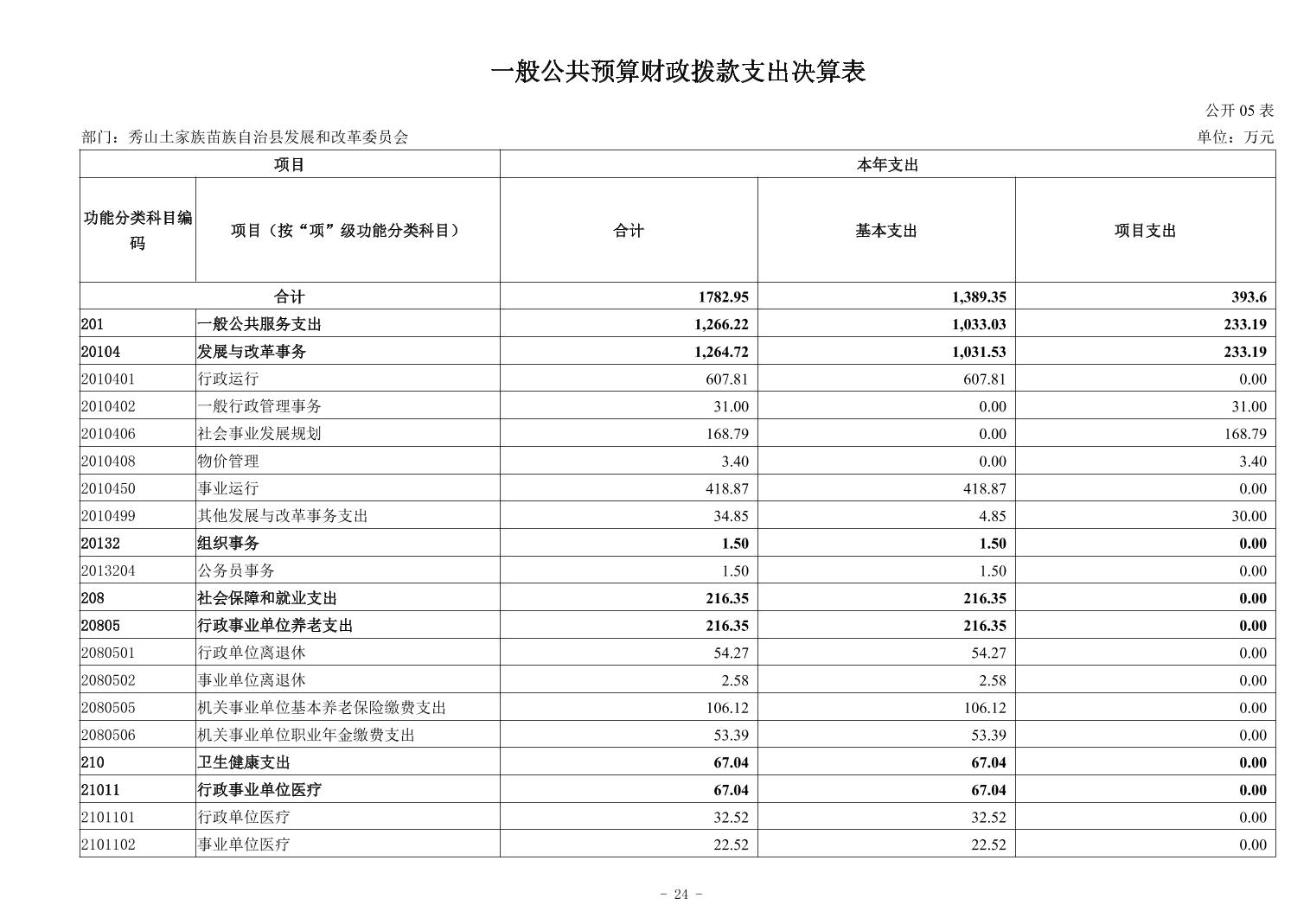 秀山土家族苗族自治县发展和改革委员会2024年度决算公开说明