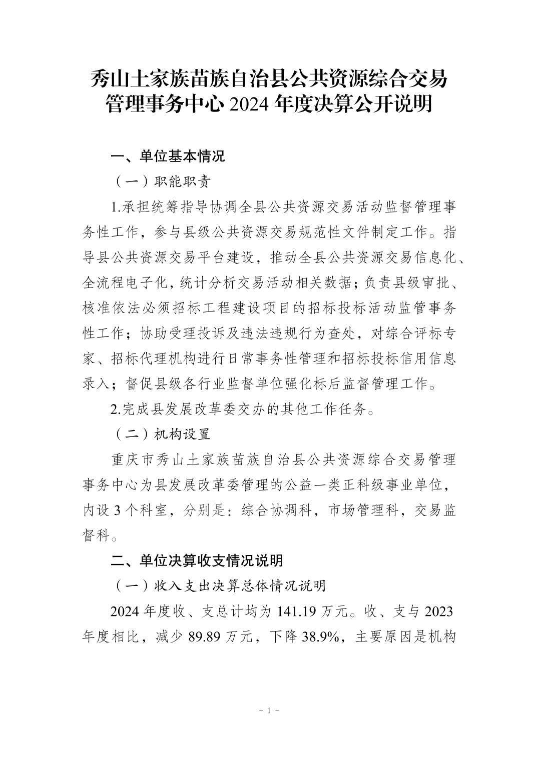 秀山土家族苗族自治县公共资源综合交易管理事务中心2024年度决算公开说明