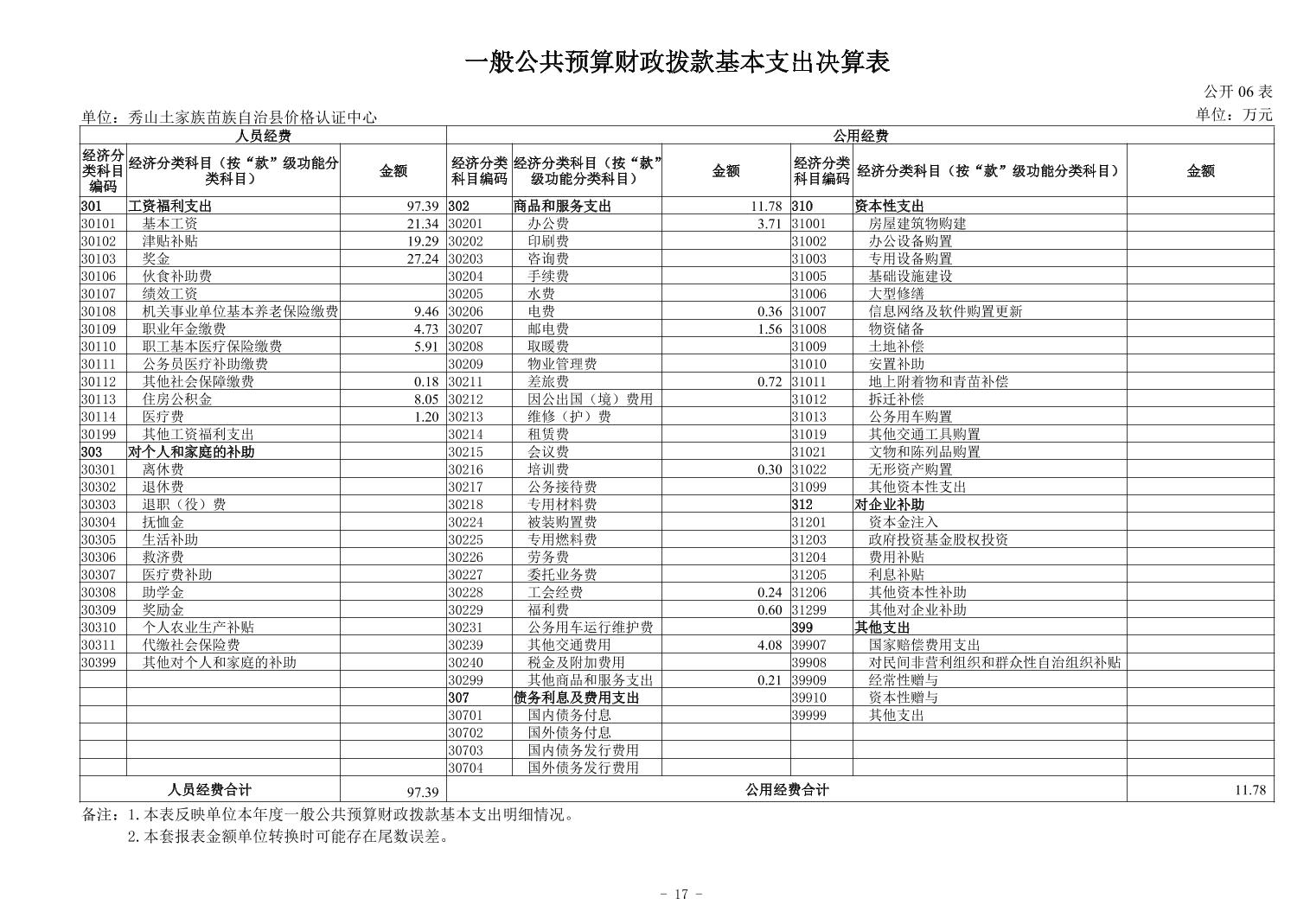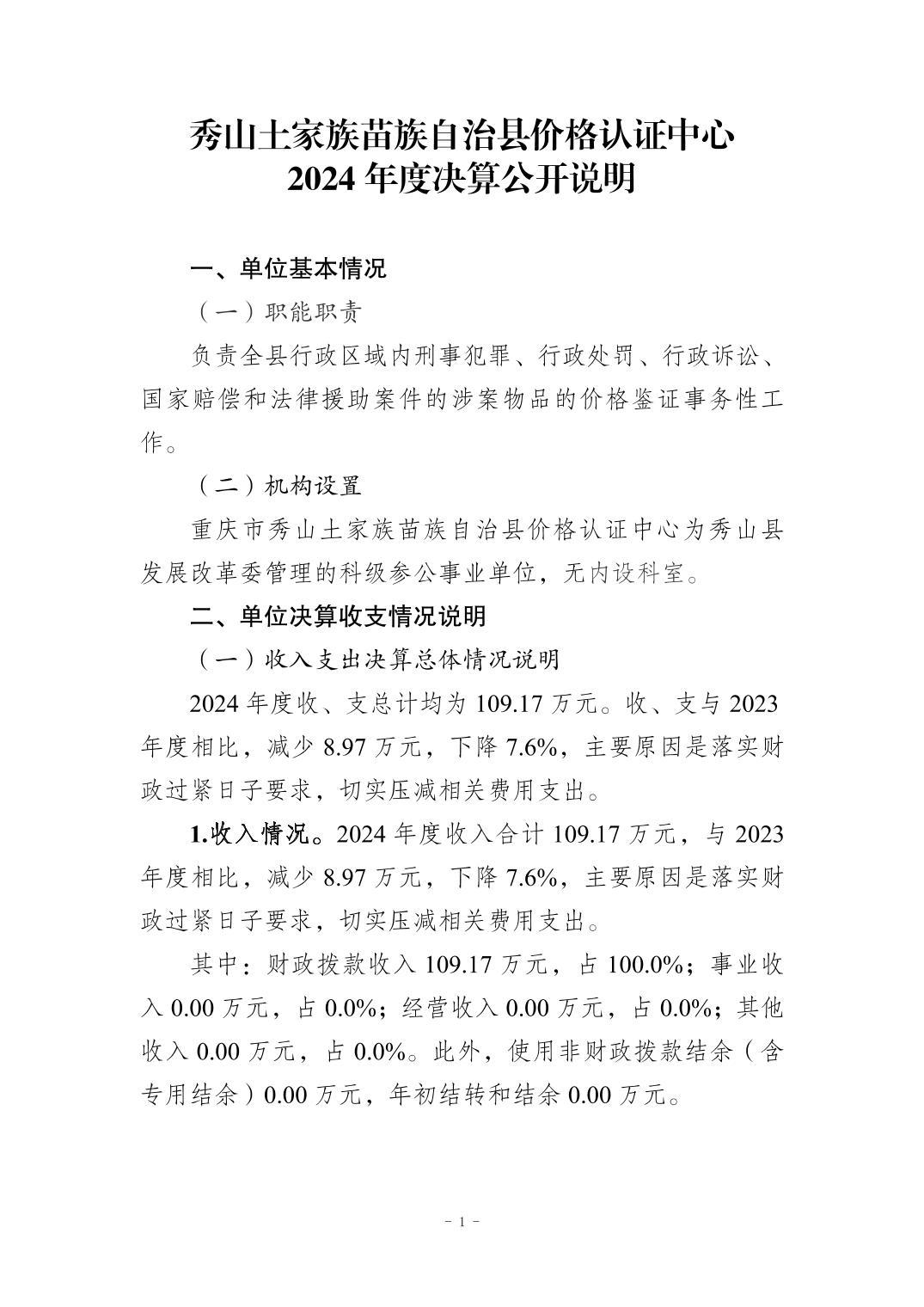 秀山土家族苗族自治县价格认证中心2024年度决算公开说明