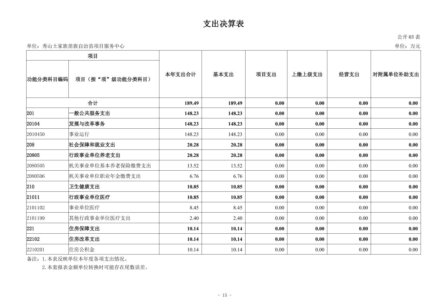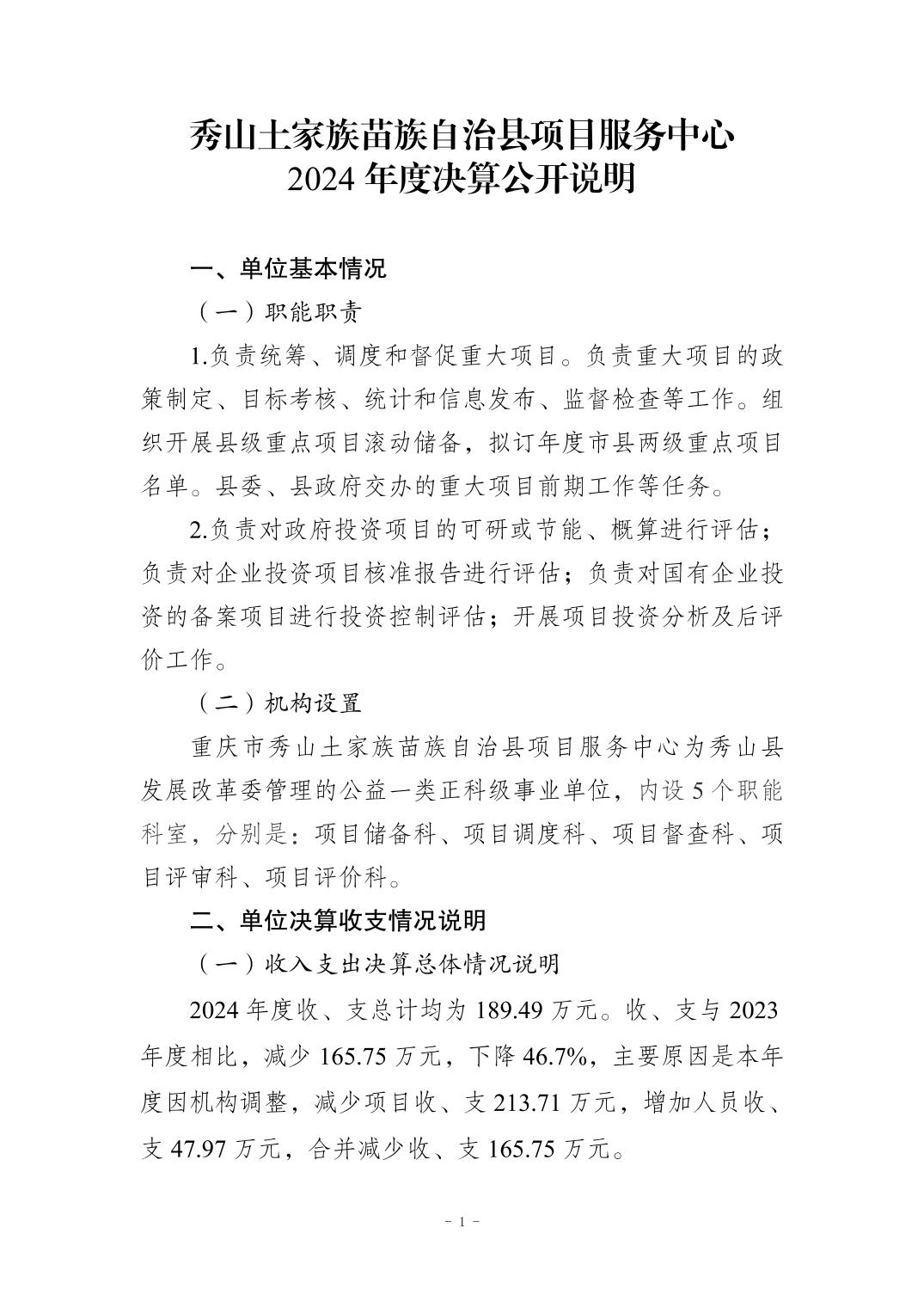 秀山土家族苗族自治县项目服务中心2024年度决算公开说明