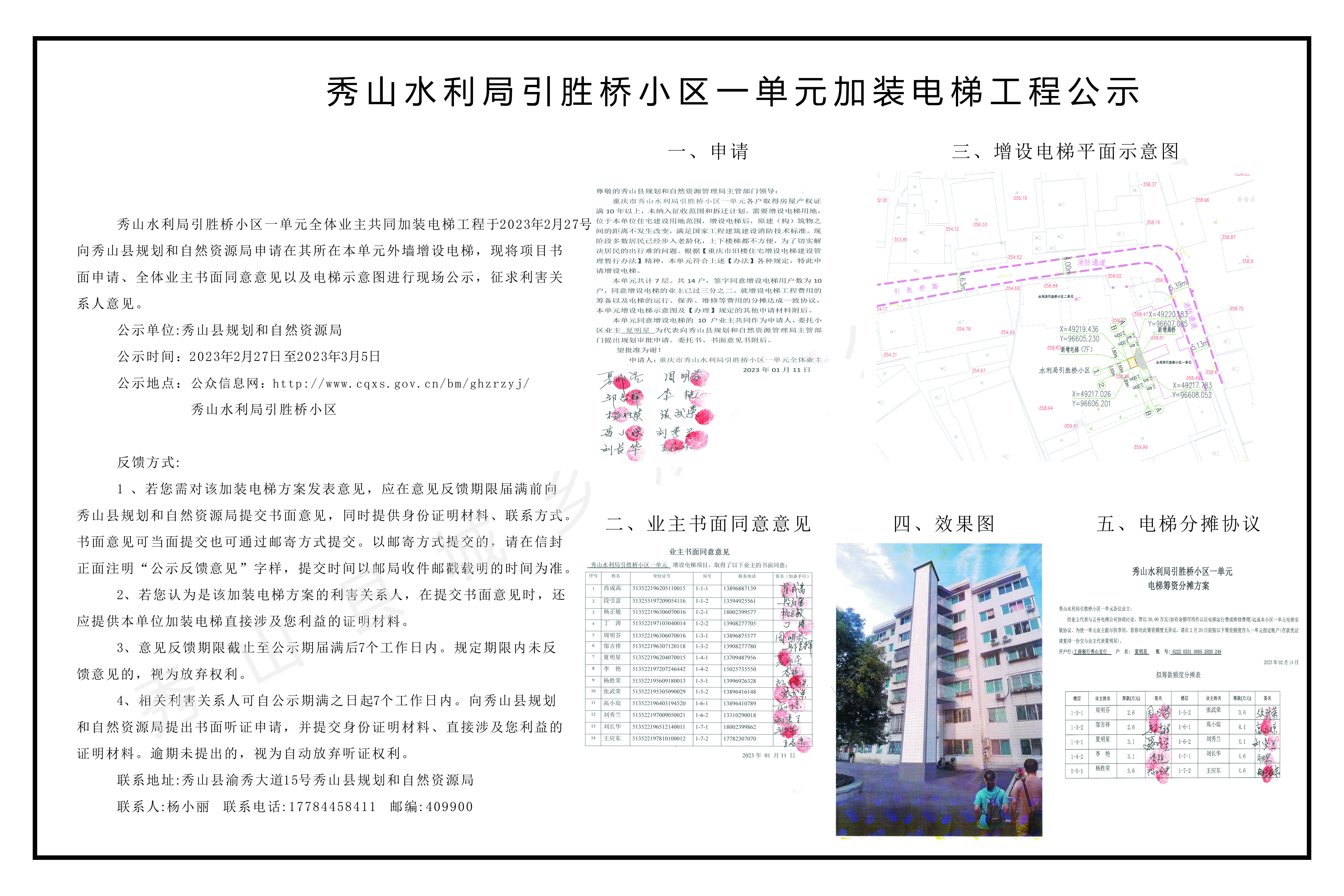 秀山水利局引胜桥小区一单元加装电梯工程公示