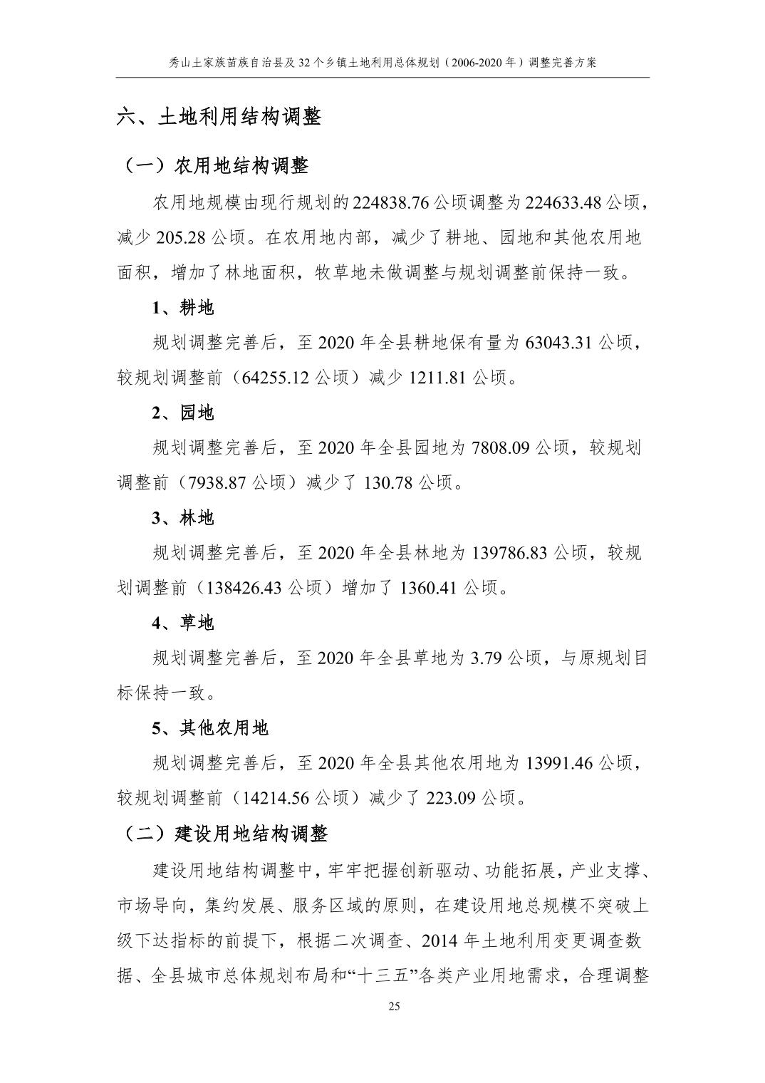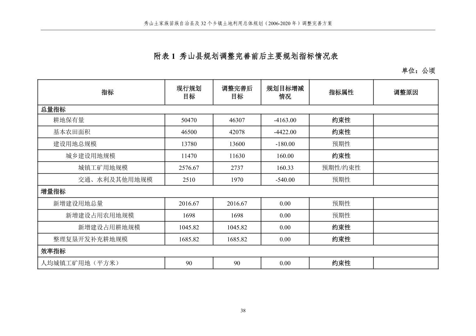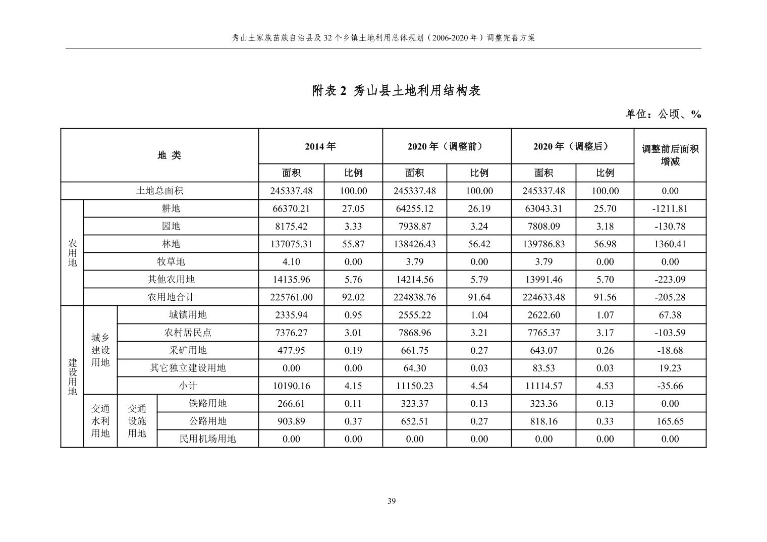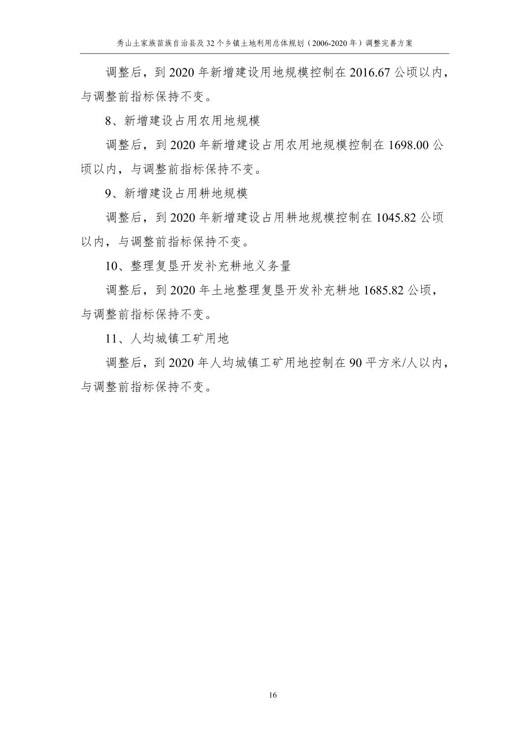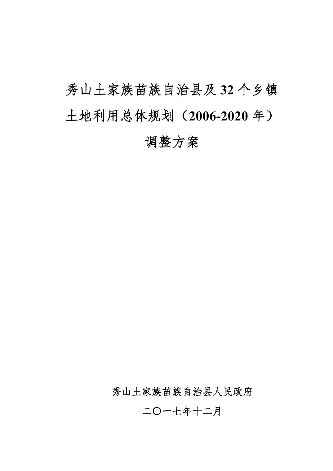 秀山县及32个乡镇土地利用总体规划(2006-2020年)调整方案
