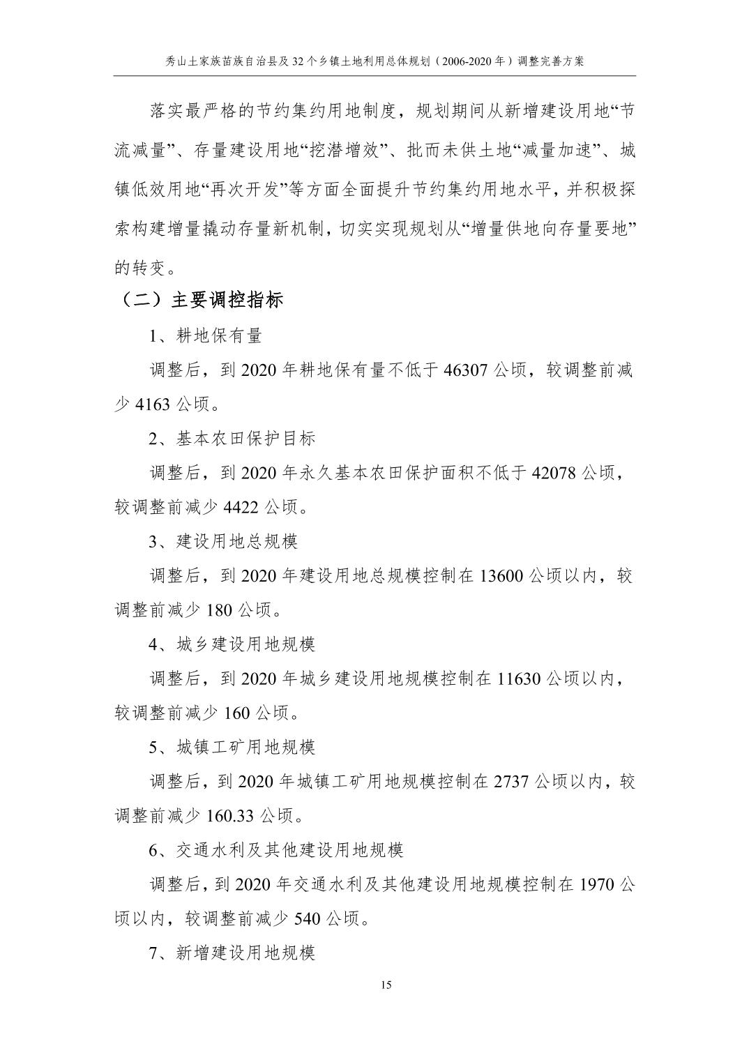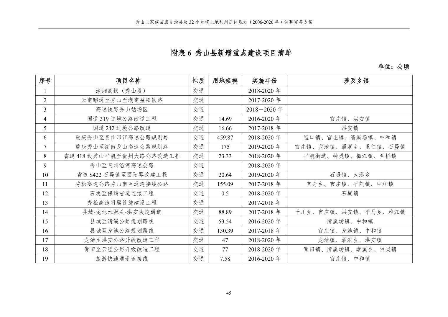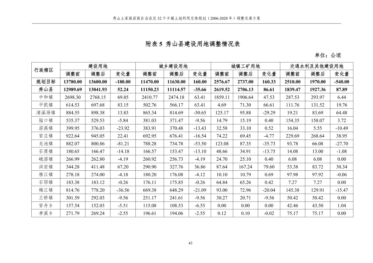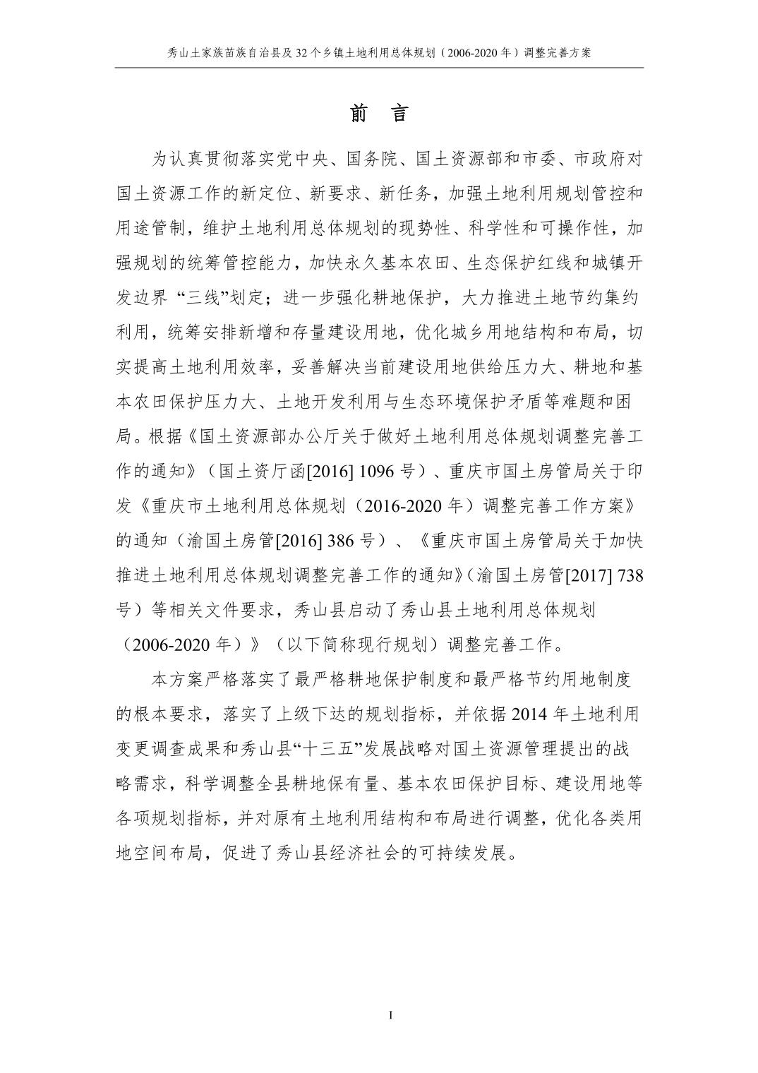 秀山县及32个乡镇土地利用总体规划(2006-2020年)调整方案