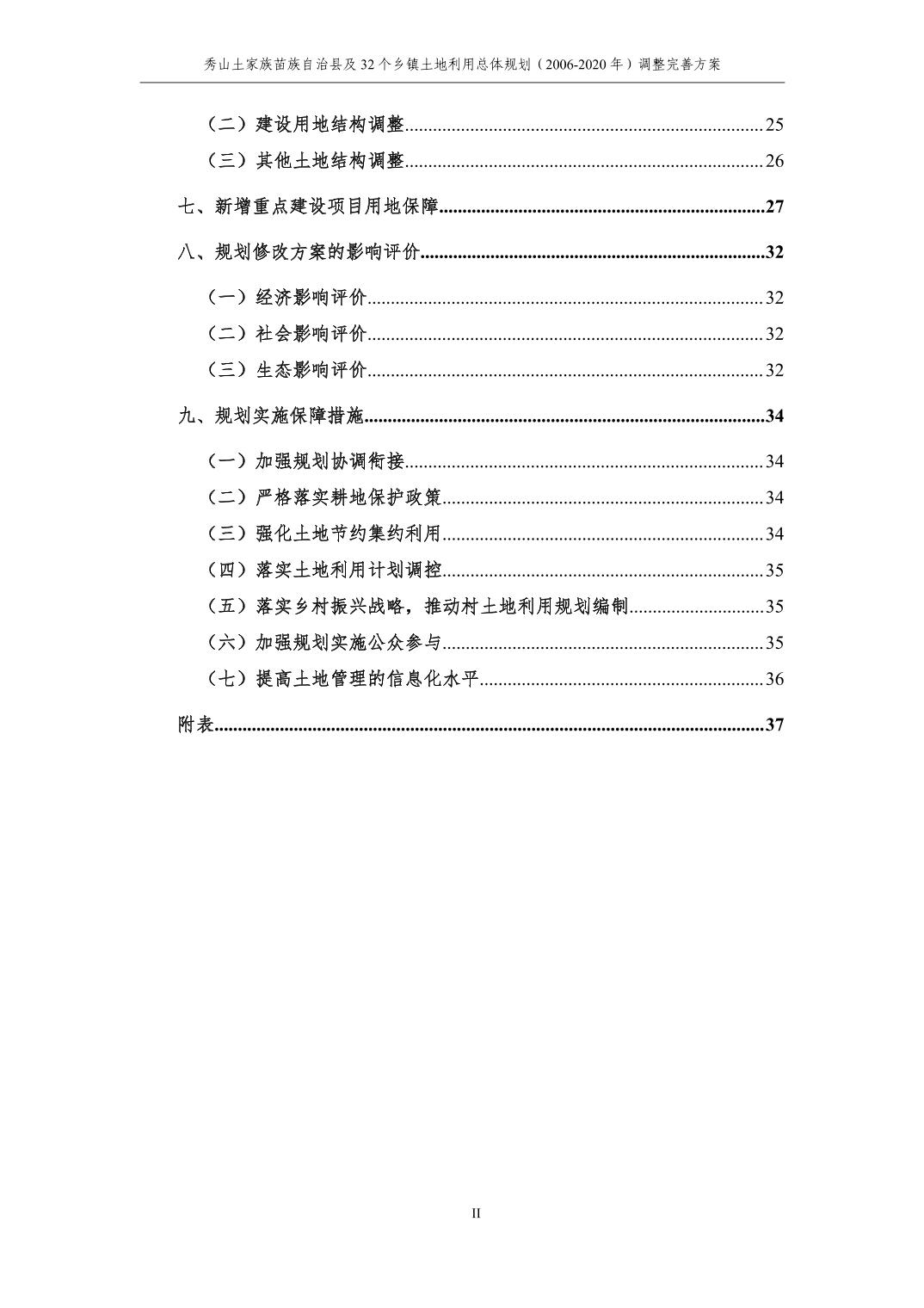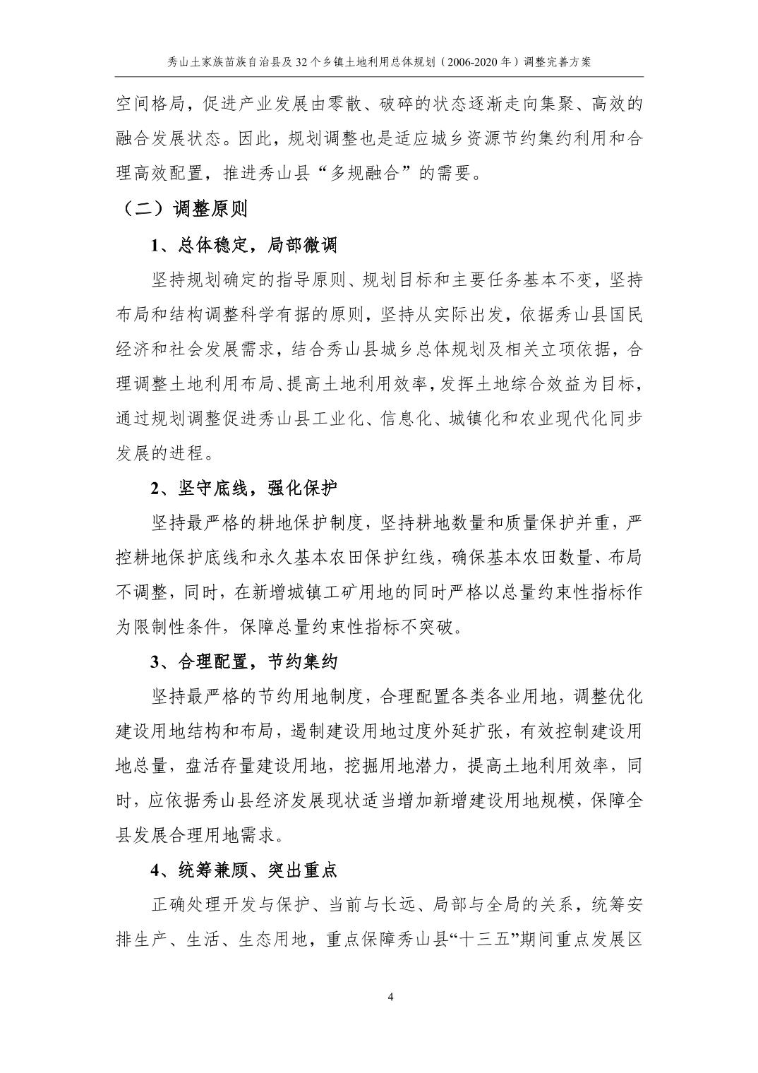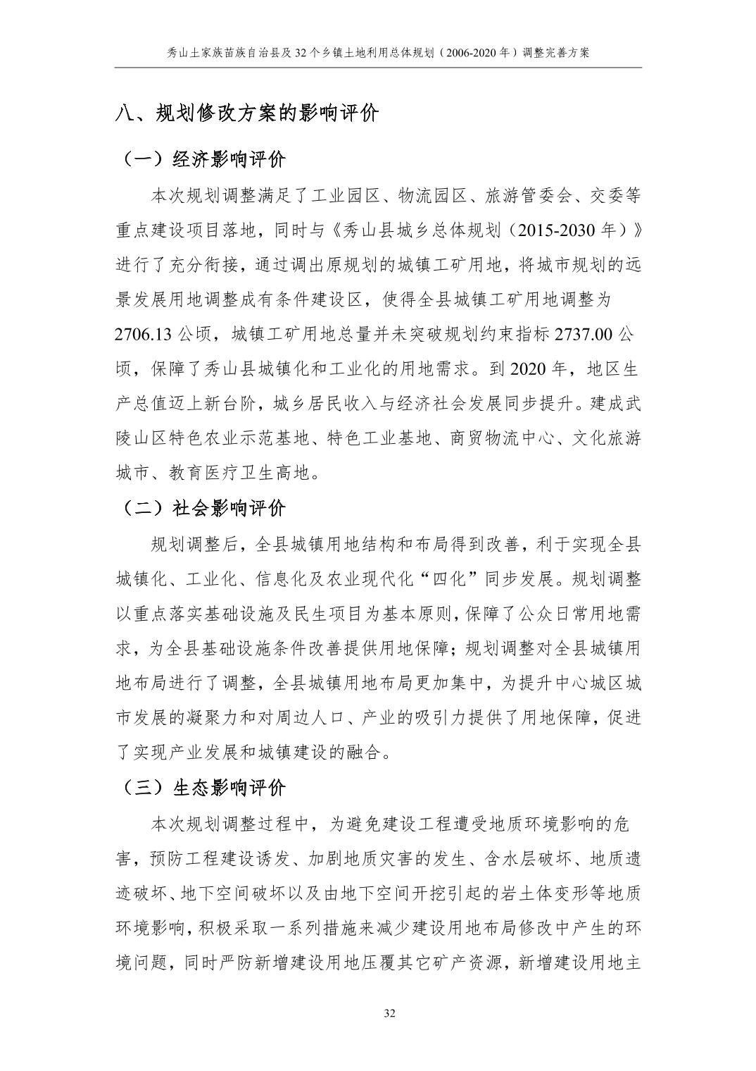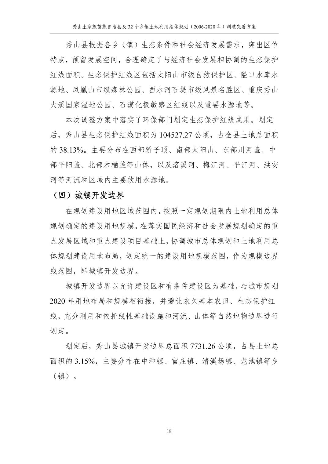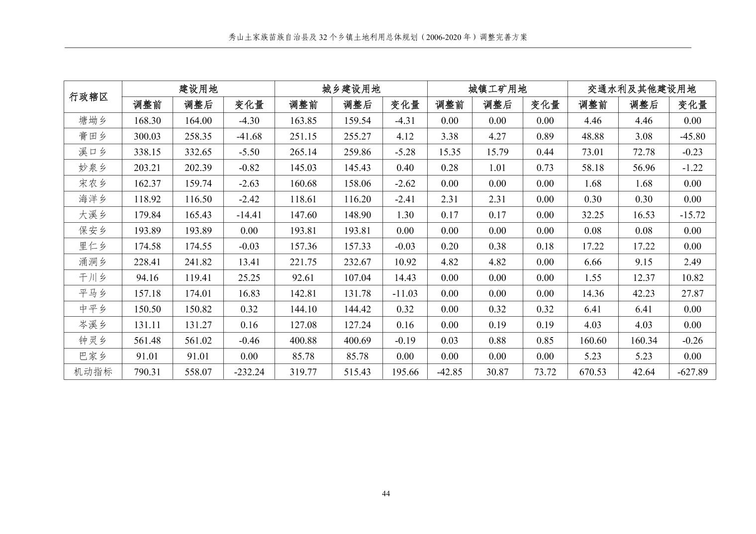 秀山县及32个乡镇土地利用总体规划(2006-2020年)调整方案