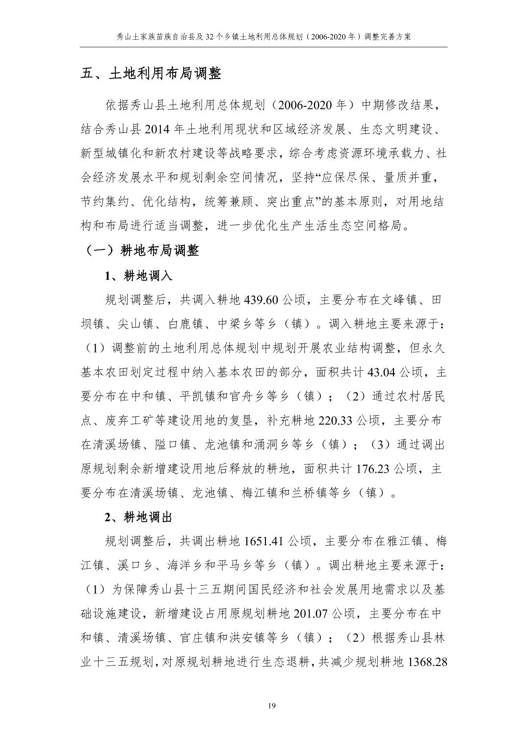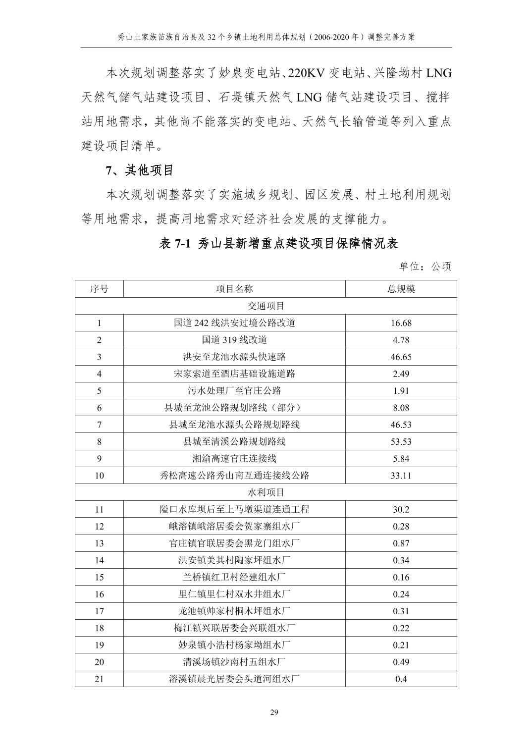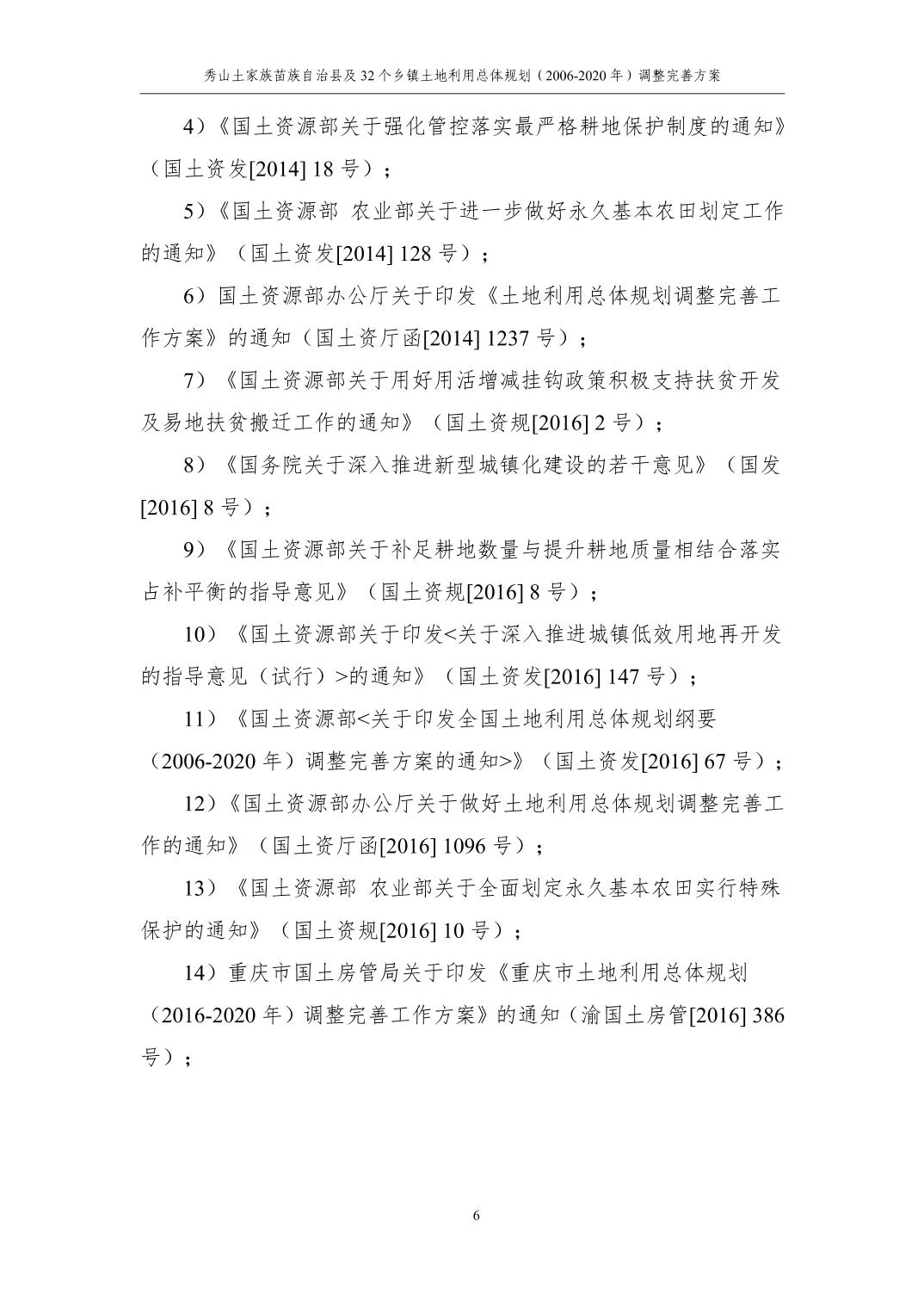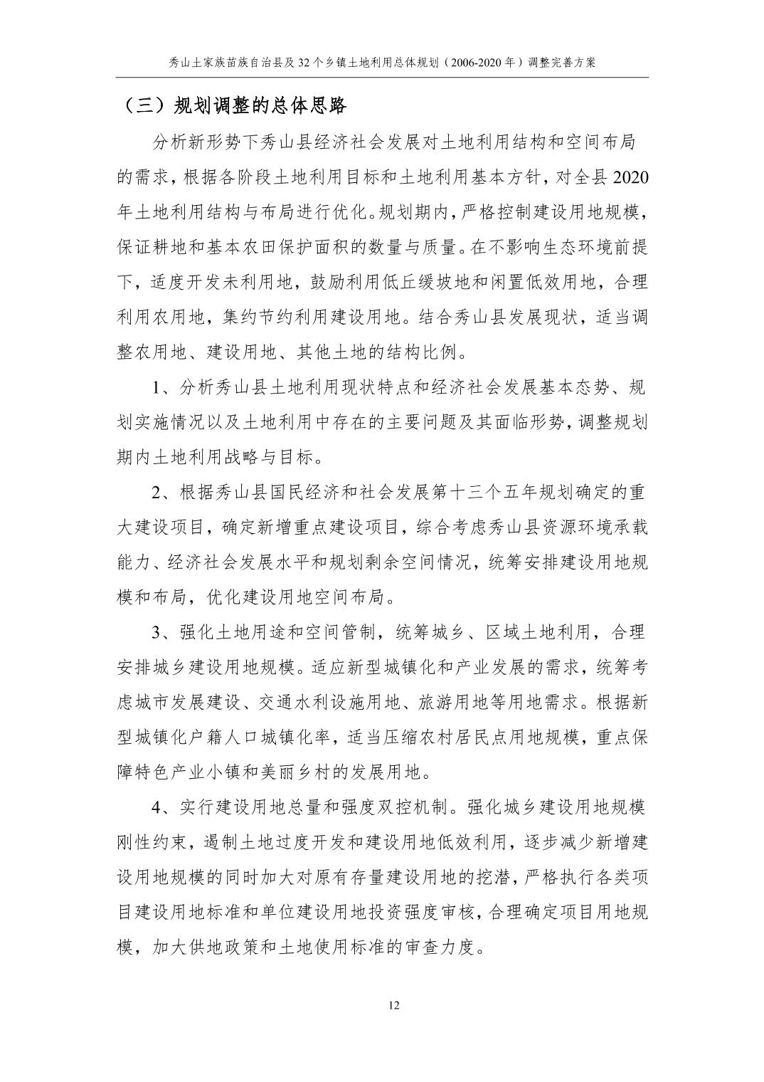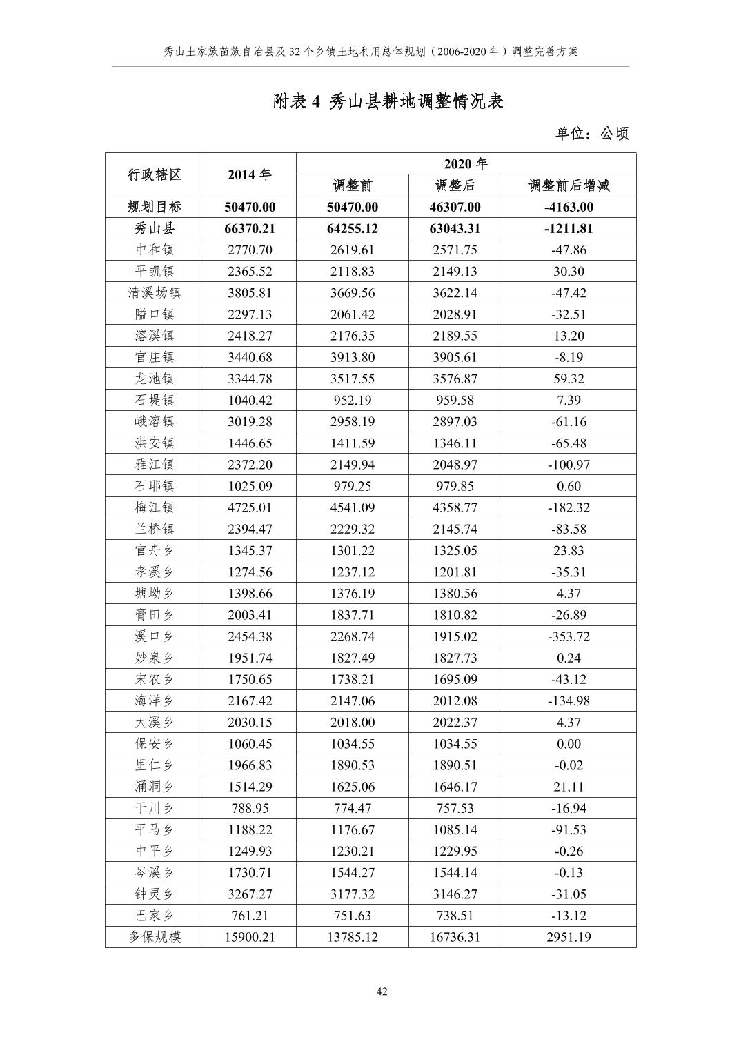秀山县及32个乡镇土地利用总体规划(2006-2020年)调整方案