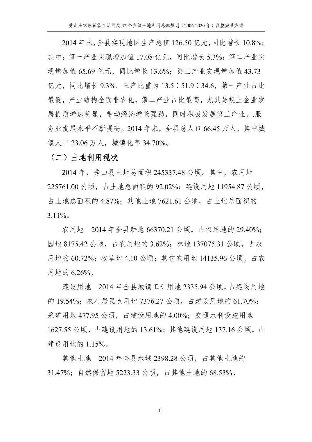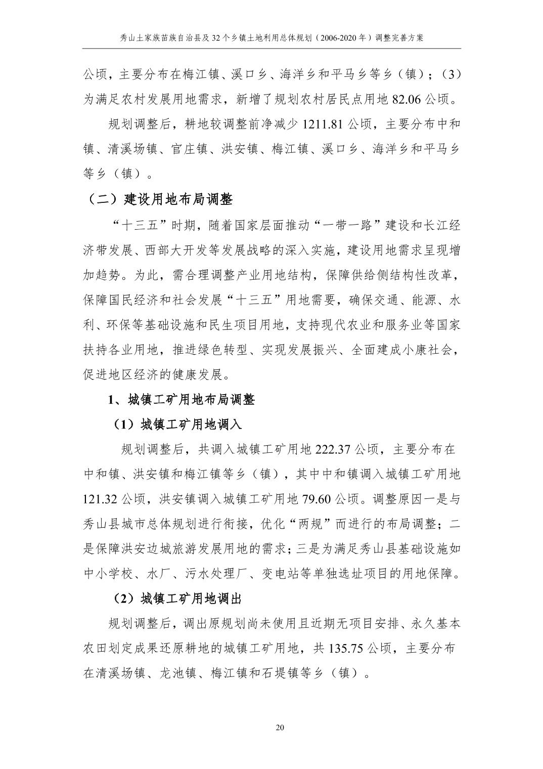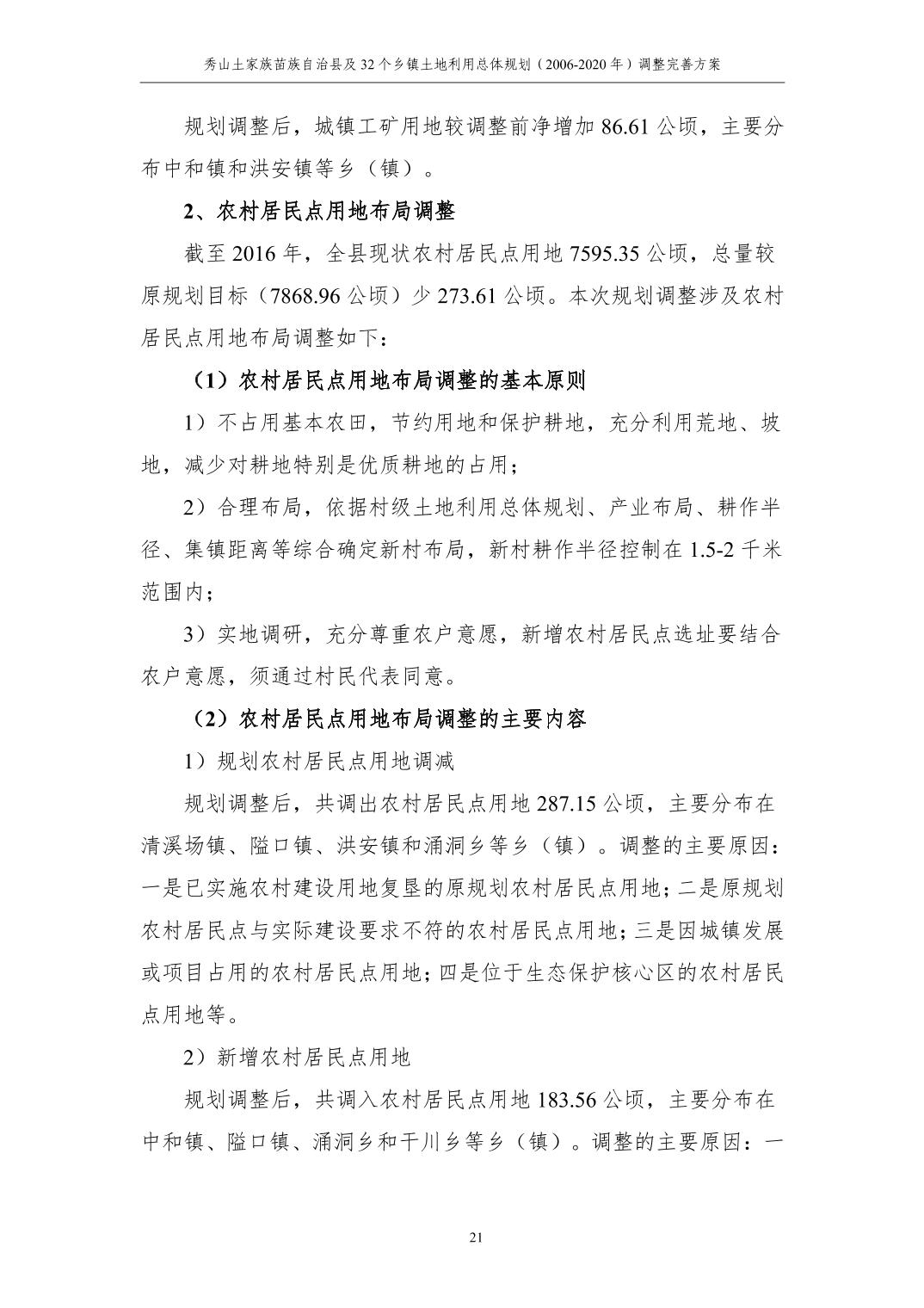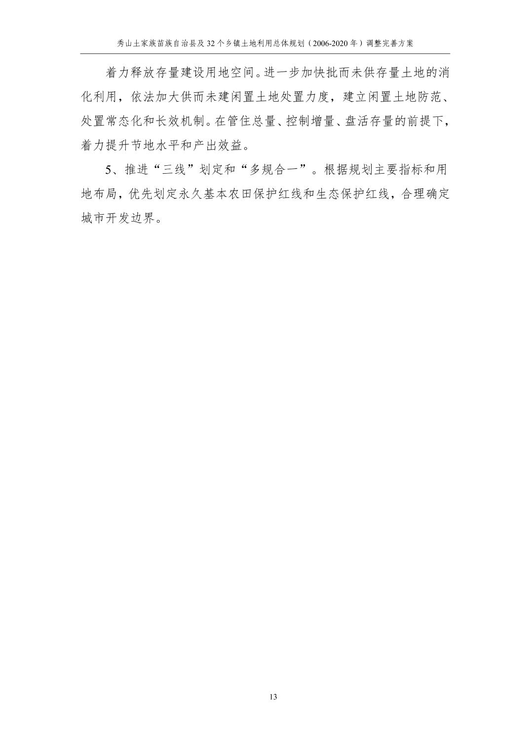 秀山县及32个乡镇土地利用总体规划(2006-2020年)调整方案