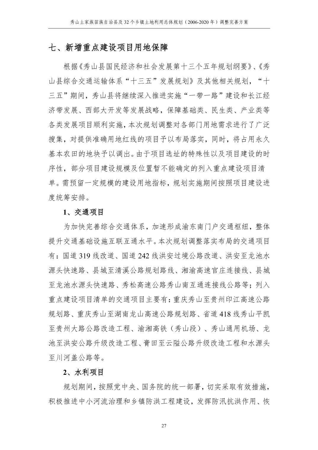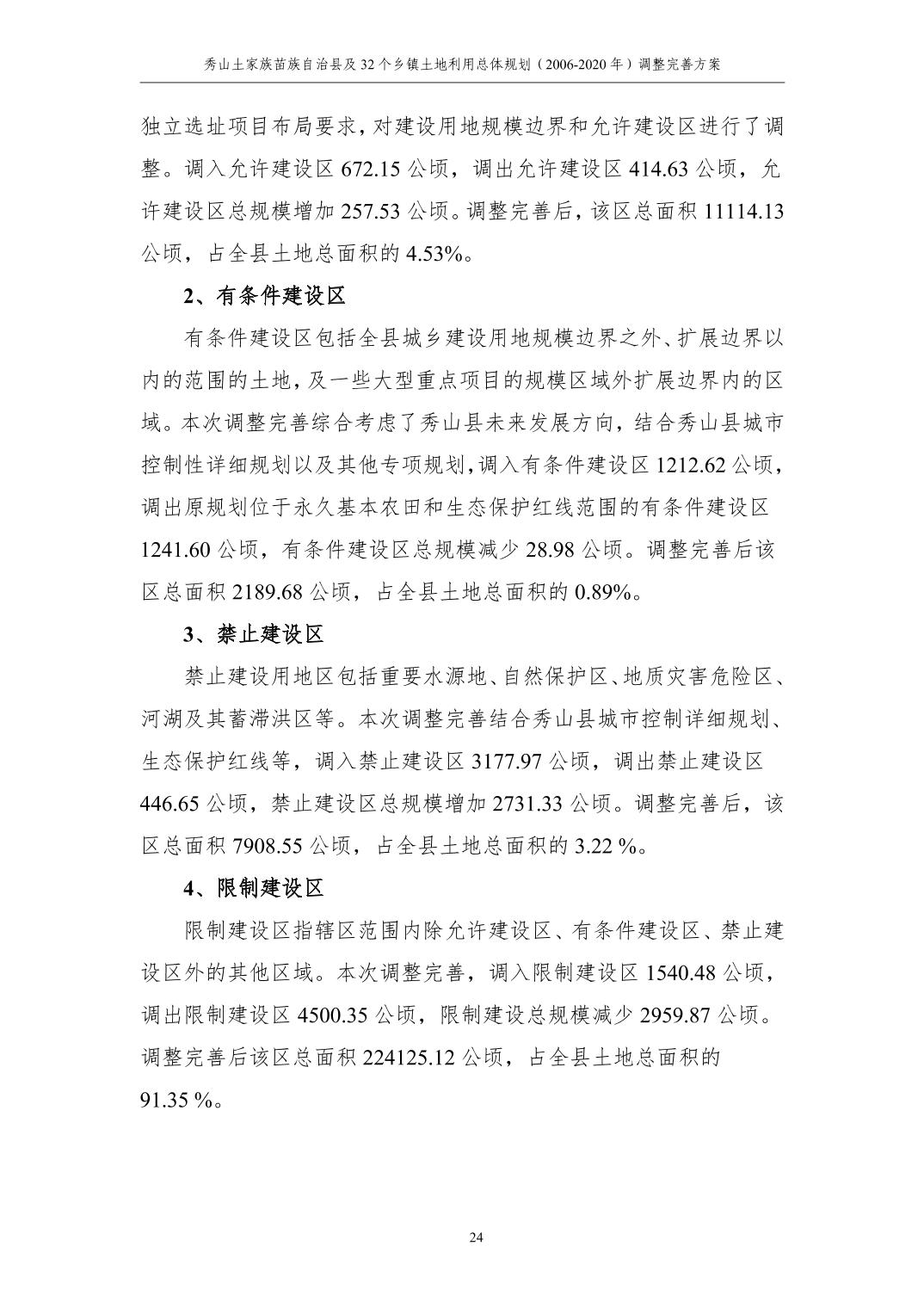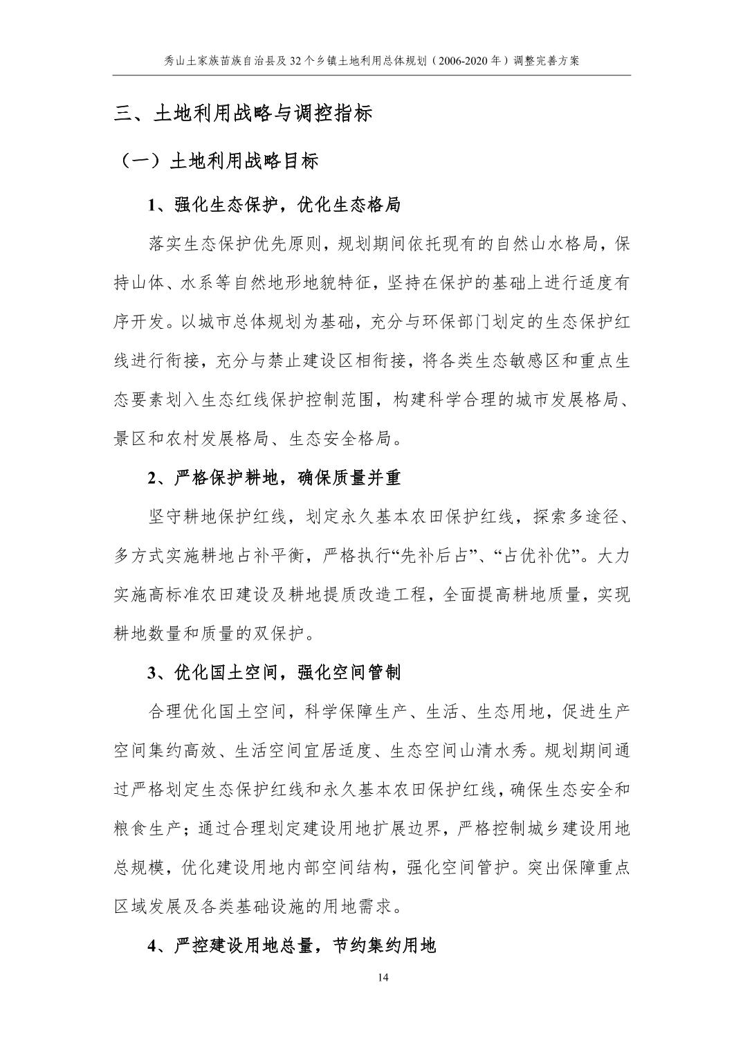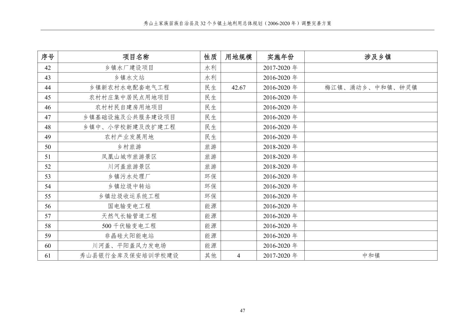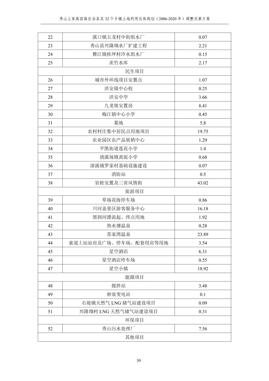 秀山县及32个乡镇土地利用总体规划(2006-2020年)调整方案