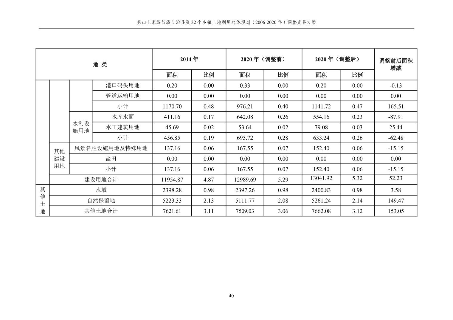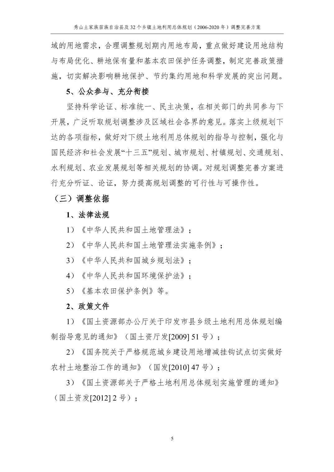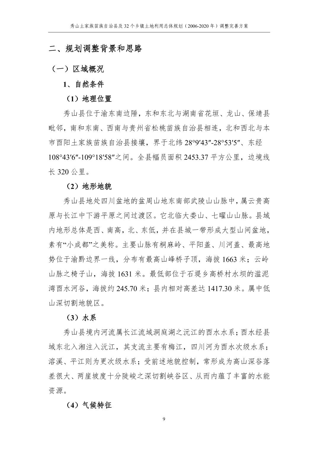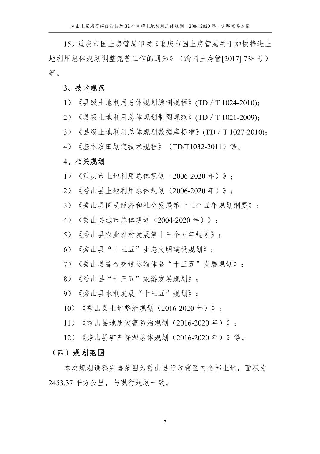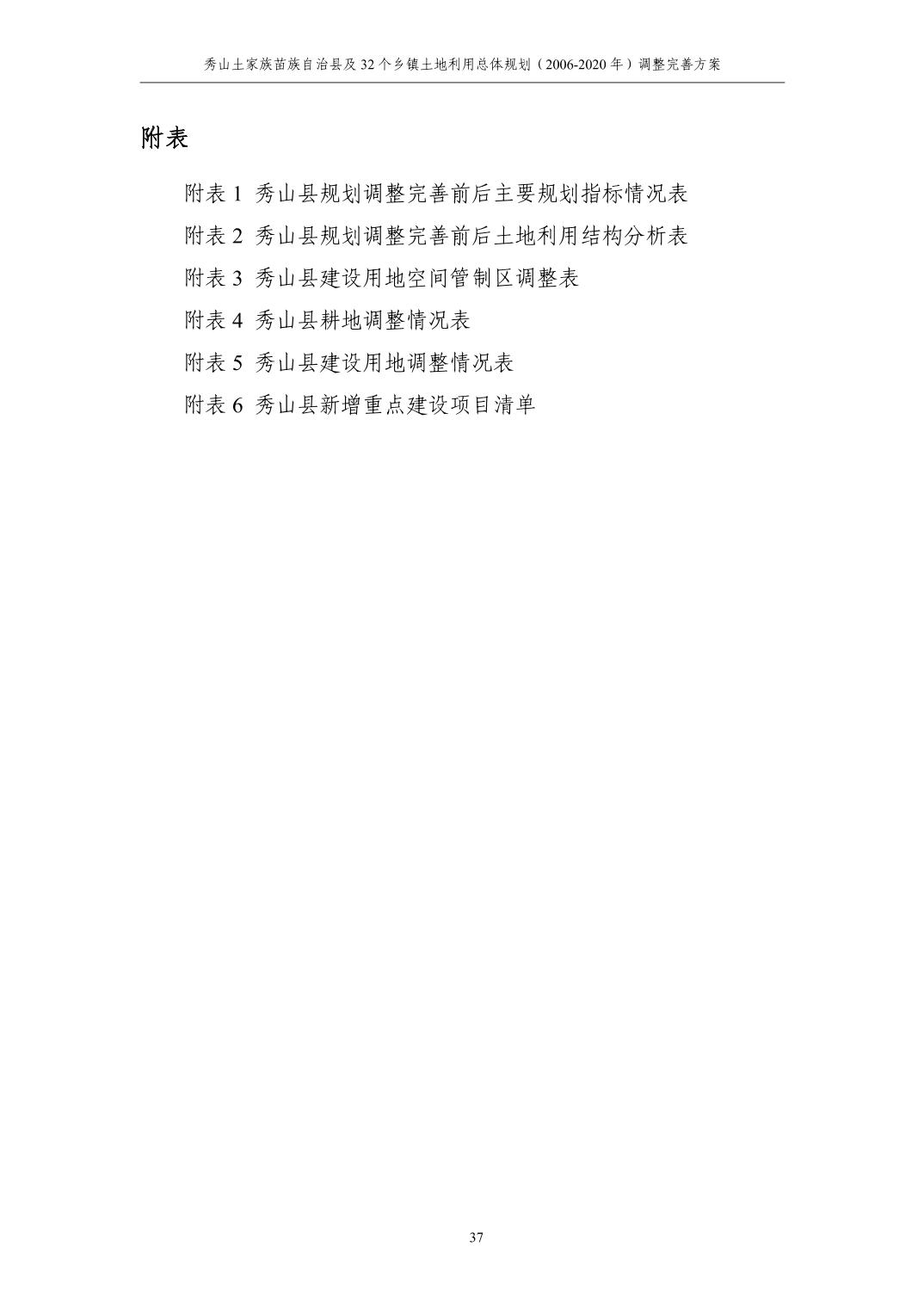 秀山县及32个乡镇土地利用总体规划(2006-2020年)调整方案