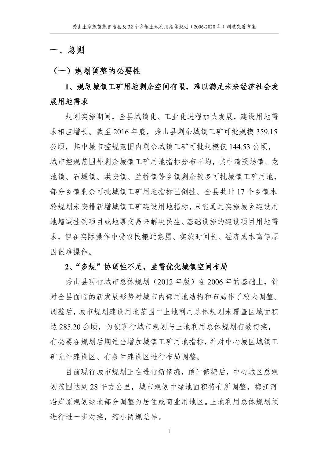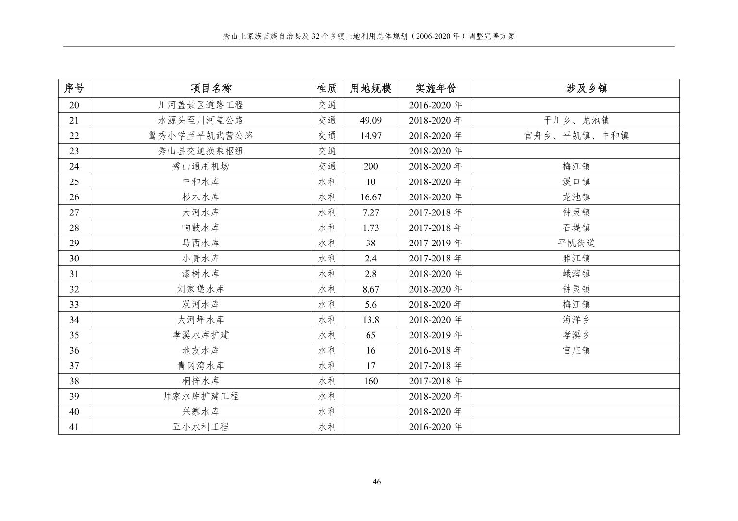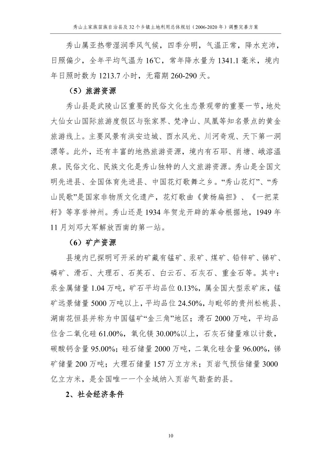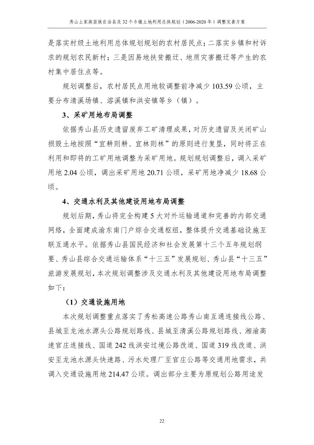 秀山县及32个乡镇土地利用总体规划(2006-2020年)调整方案