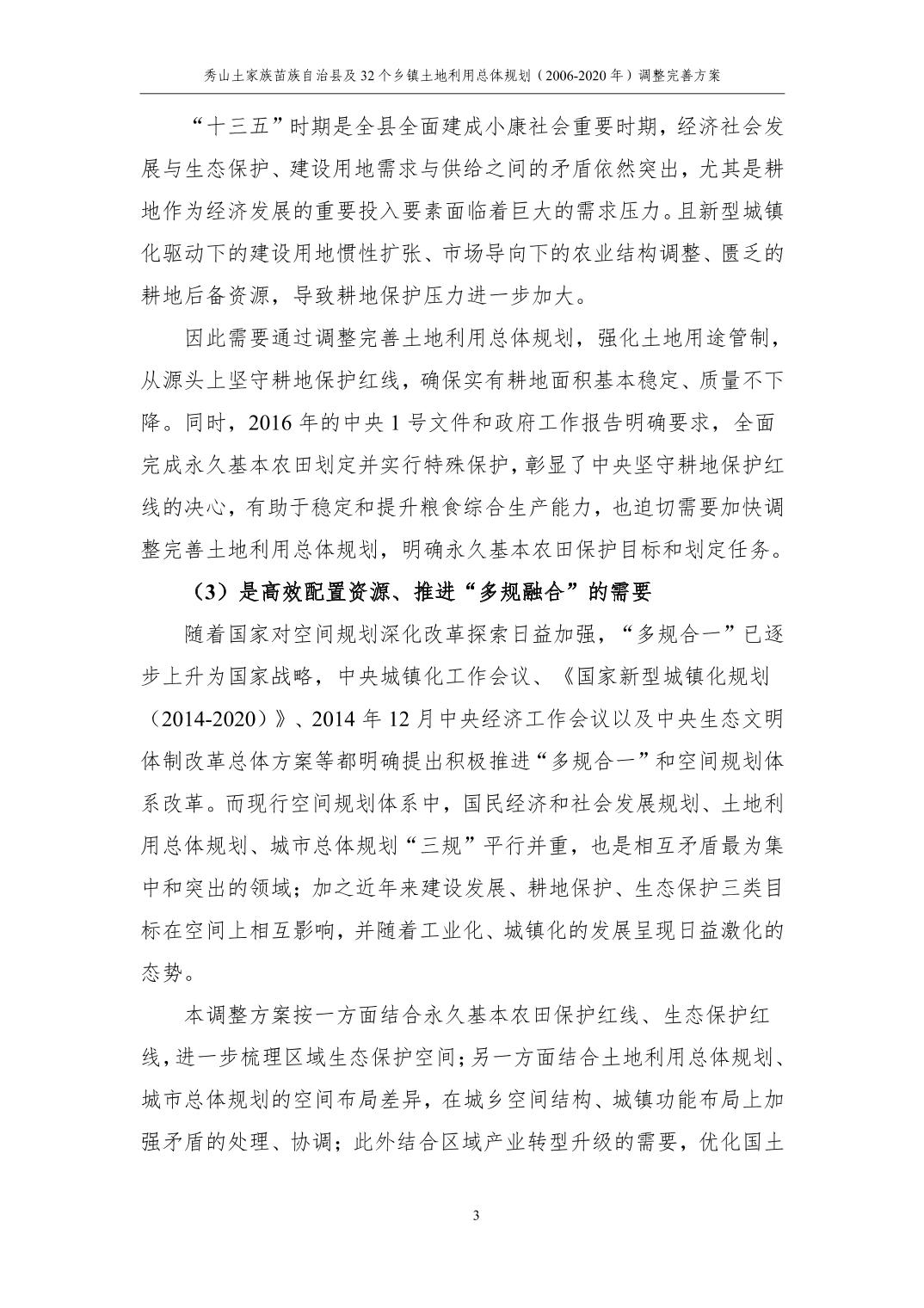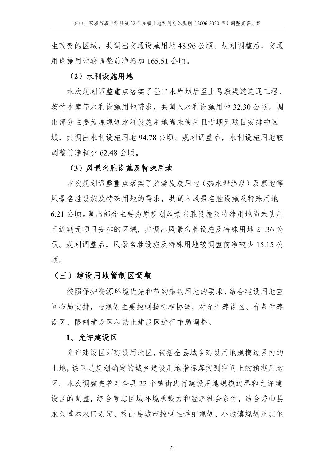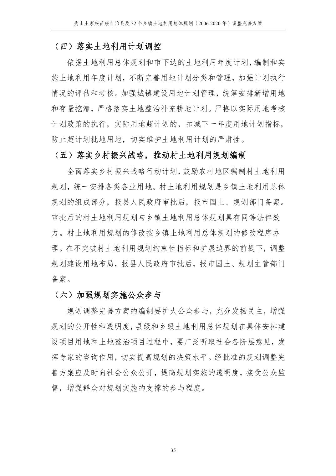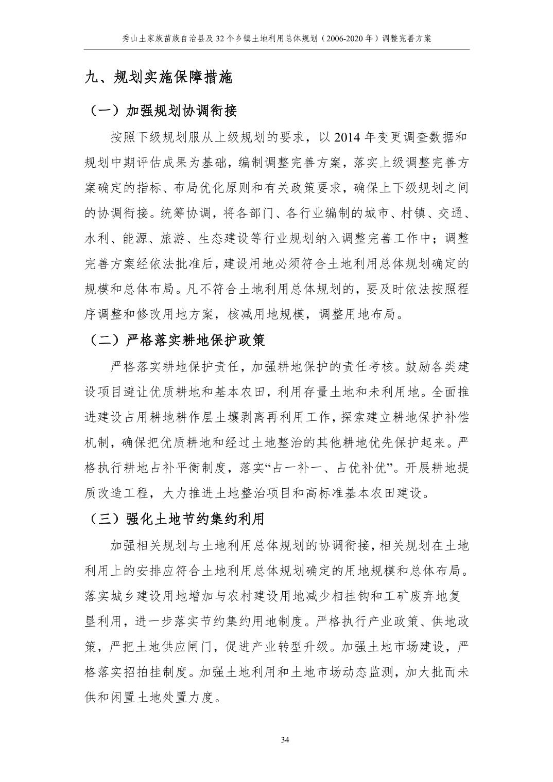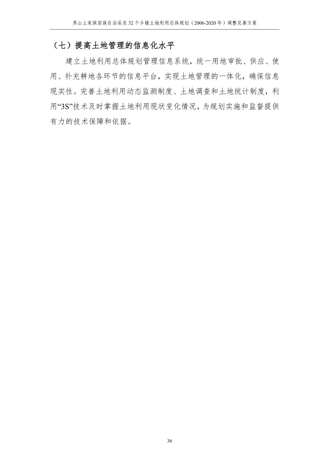 秀山县及32个乡镇土地利用总体规划(2006-2020年)调整方案
