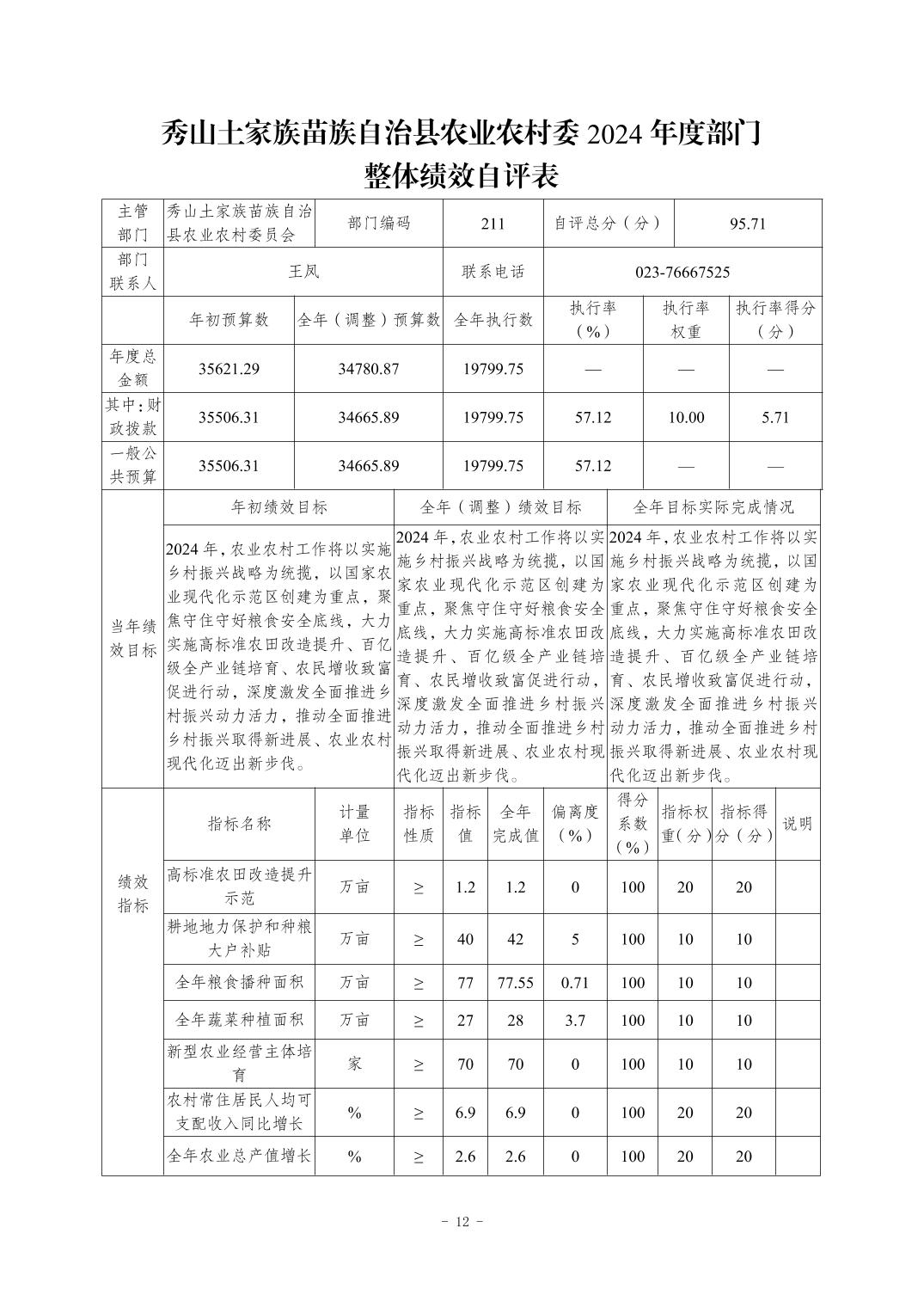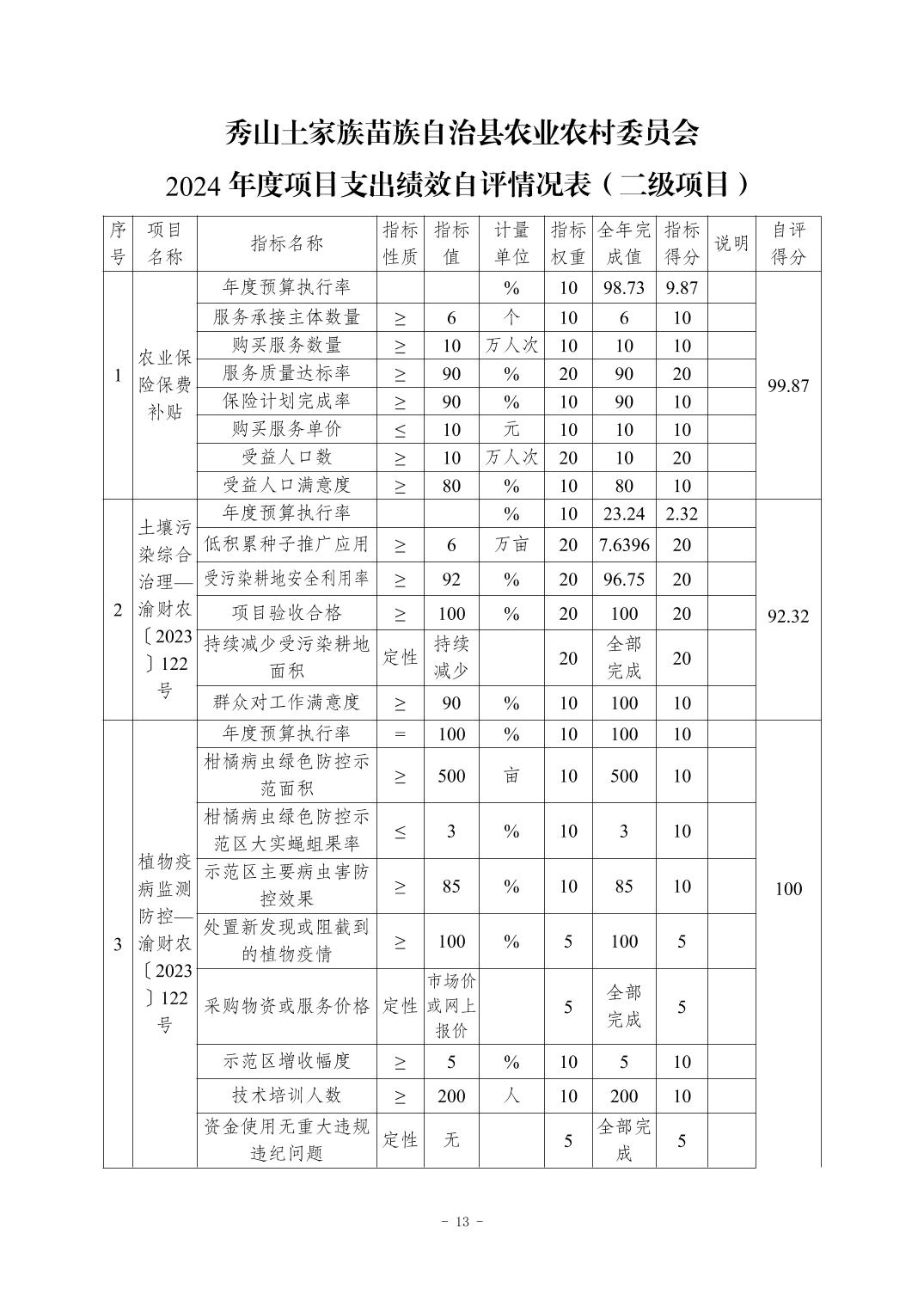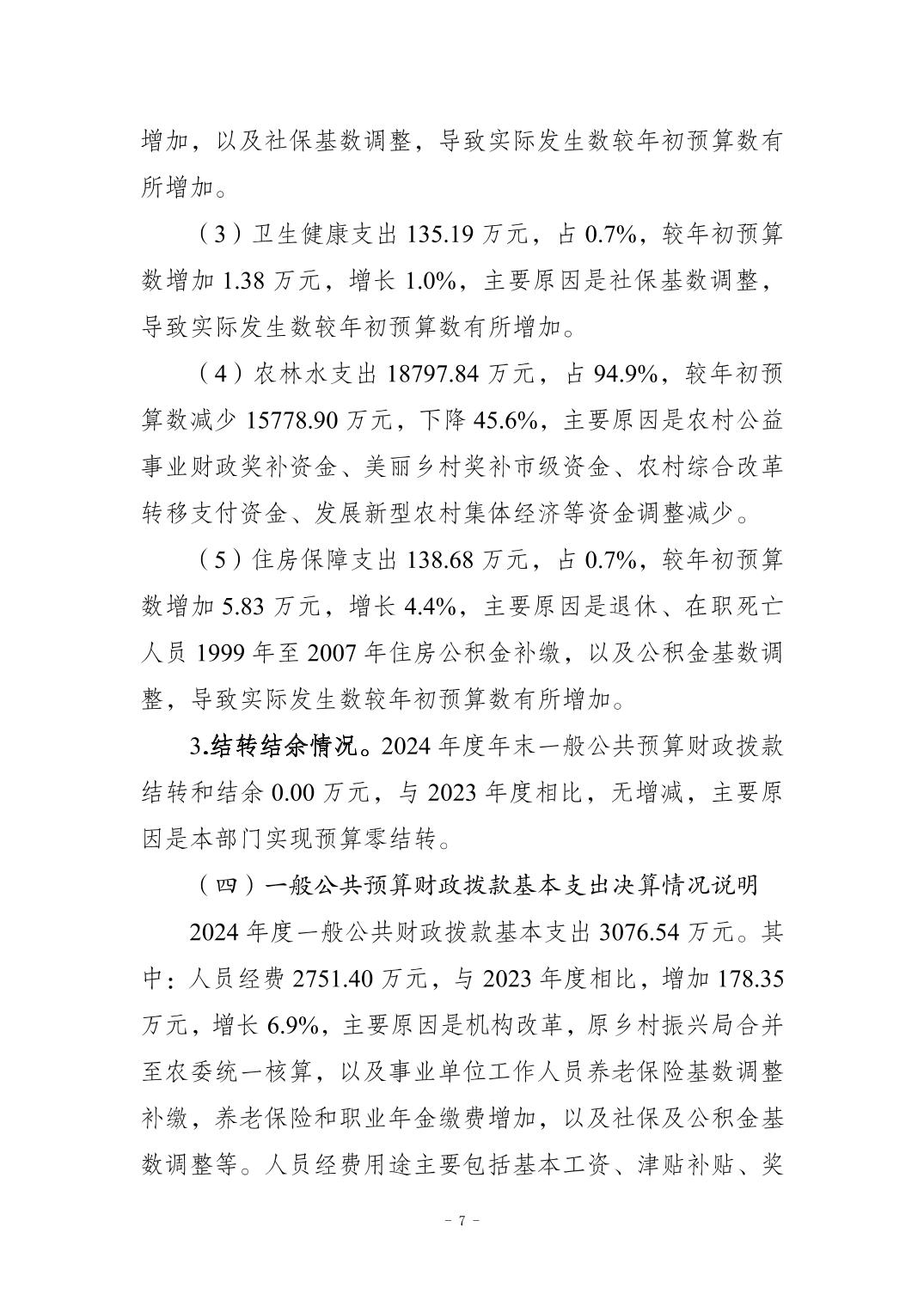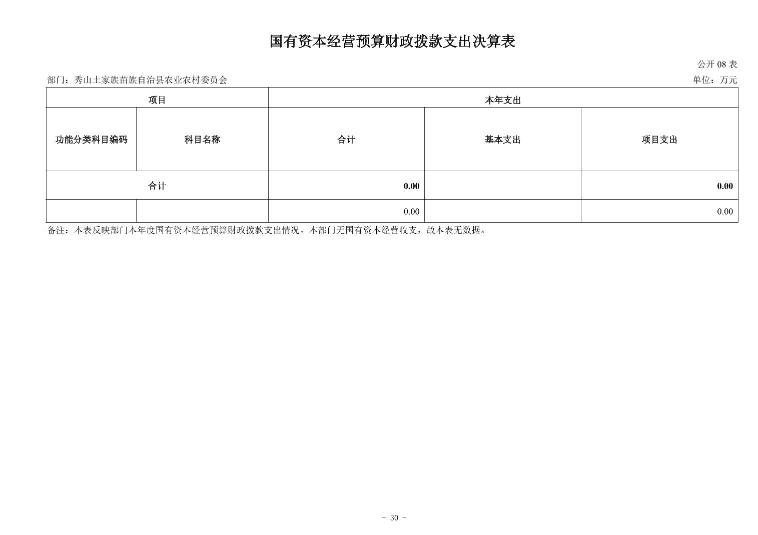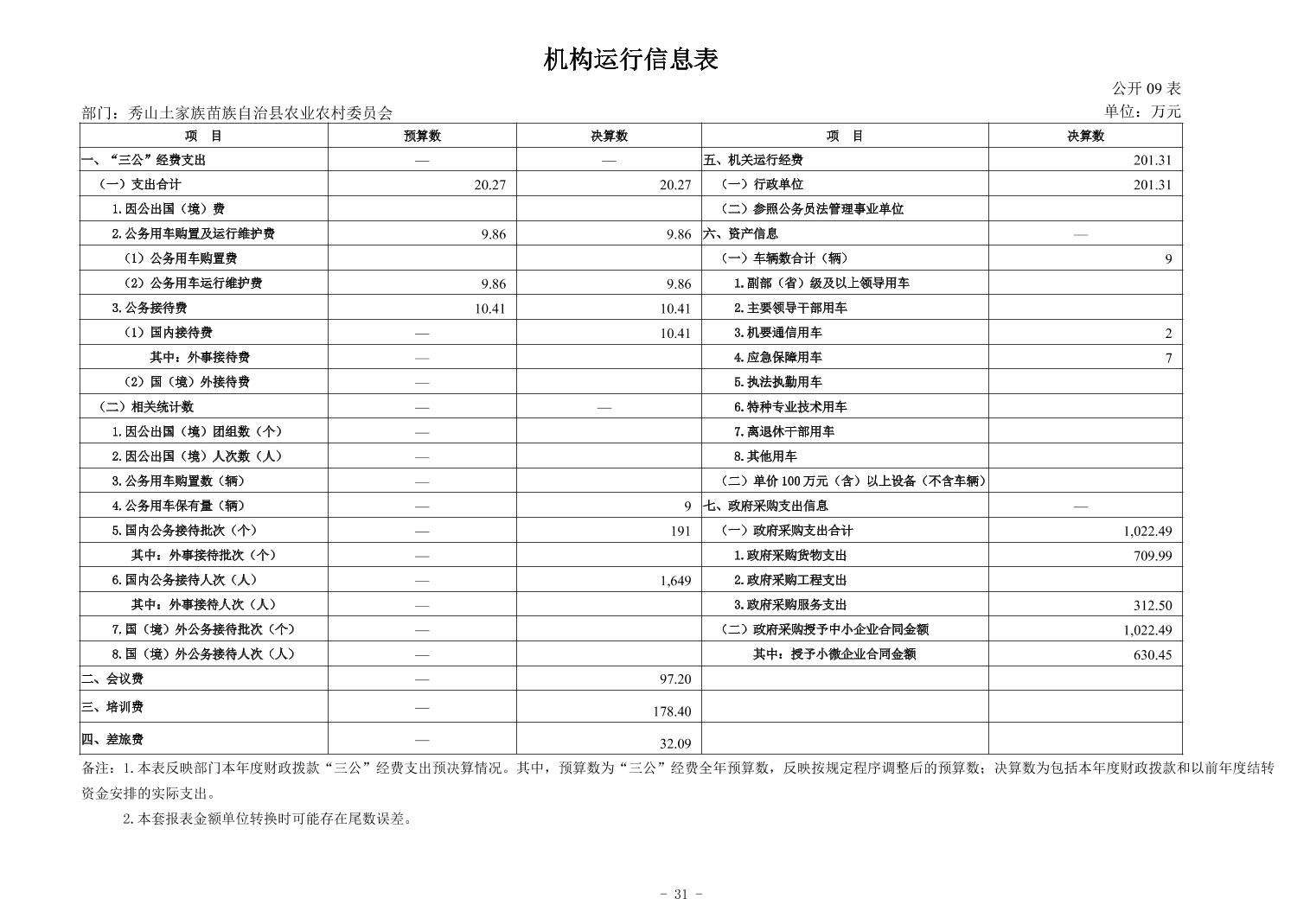 重庆市秀山土家族苗族自治县农业农村委员会2024年度决算公开说明