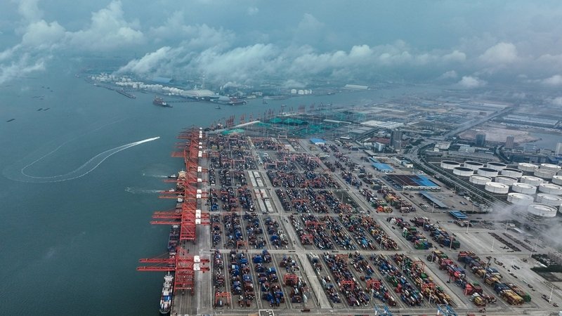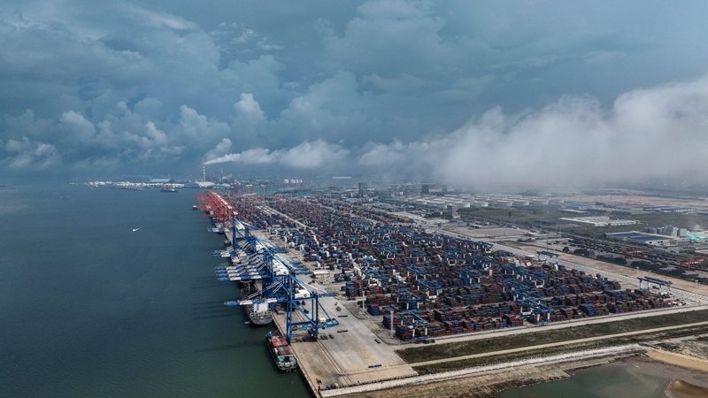 这是雨后的钦州港(5月18日摄,无人机照片)。