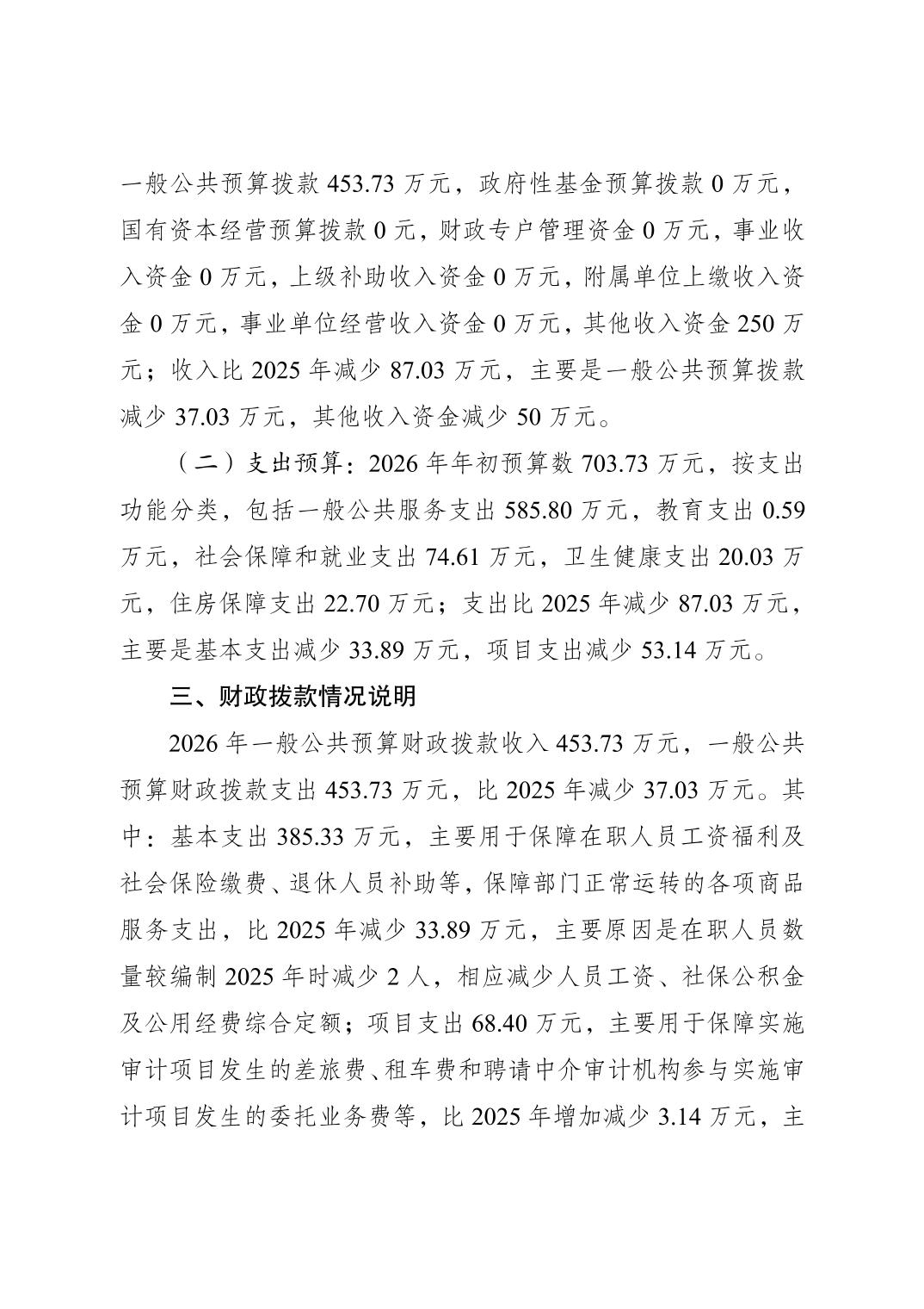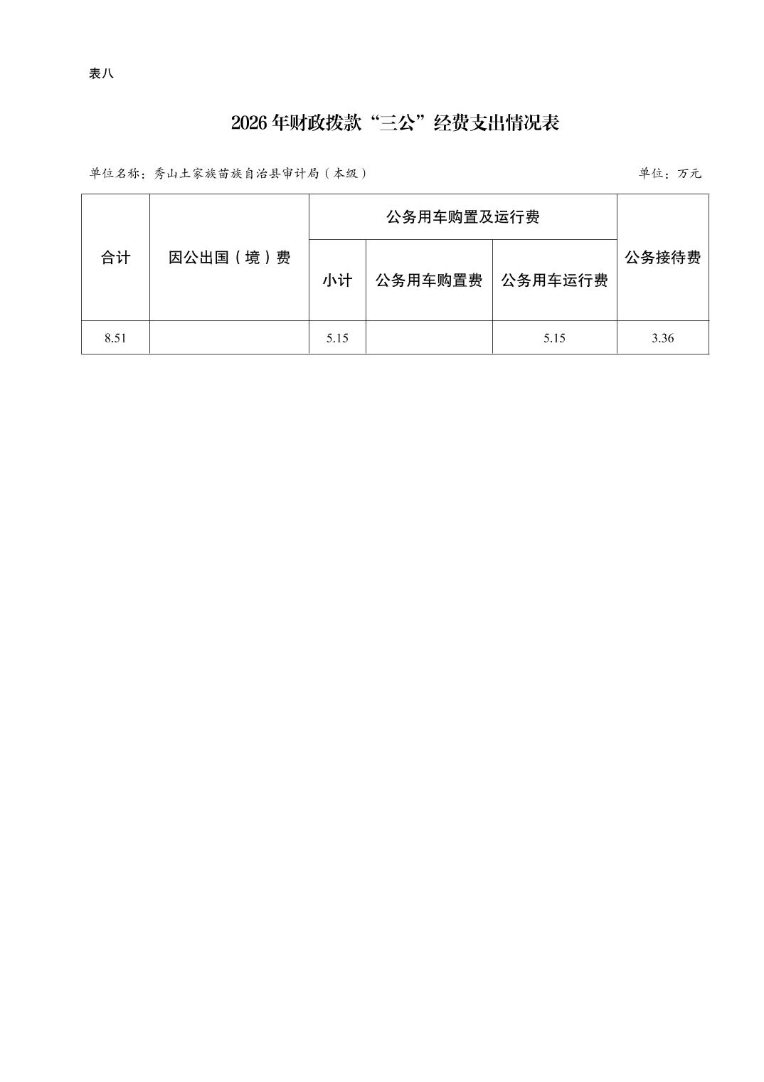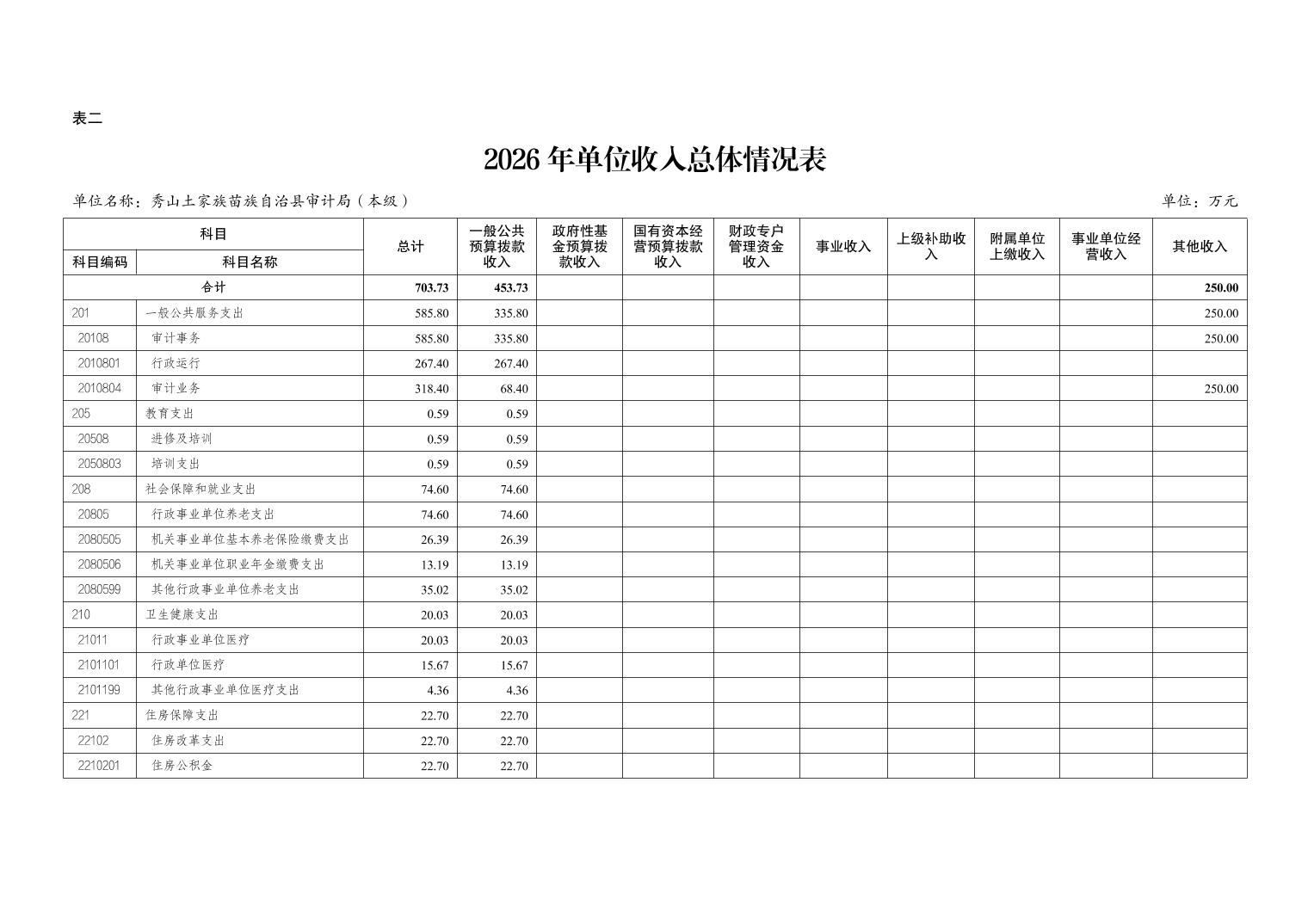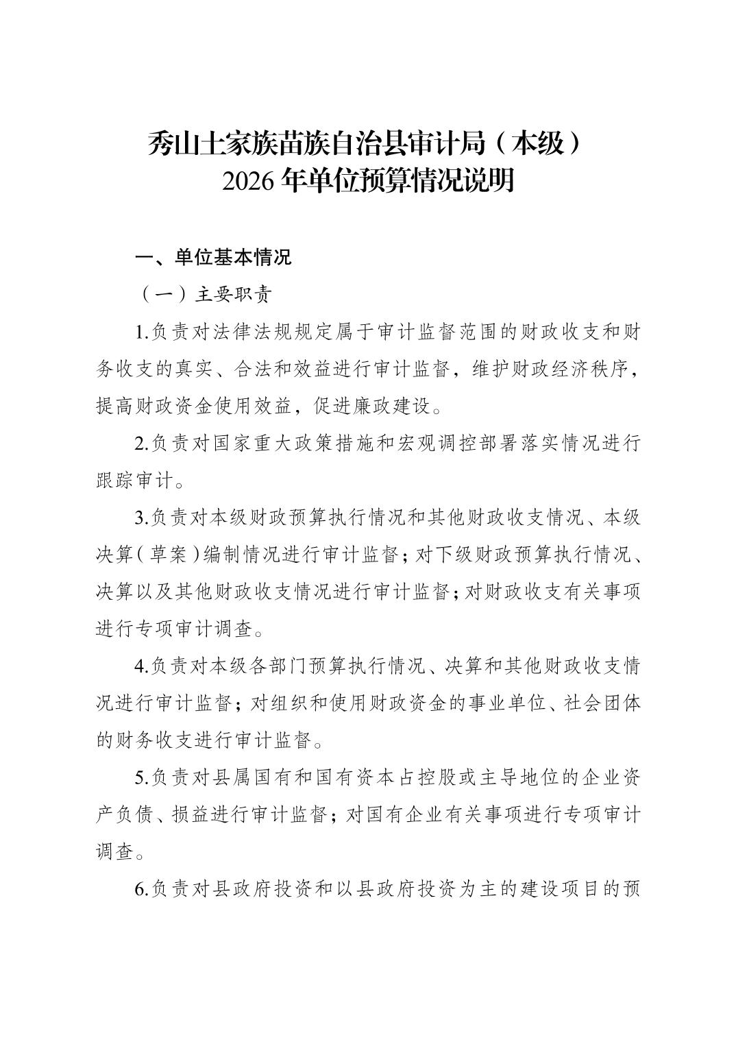 秀山土家族苗族自治县审计局(本级)2026年单位预算情况说明