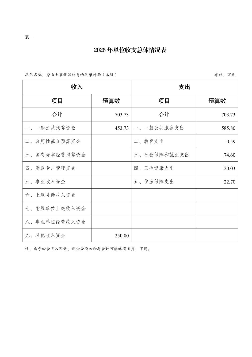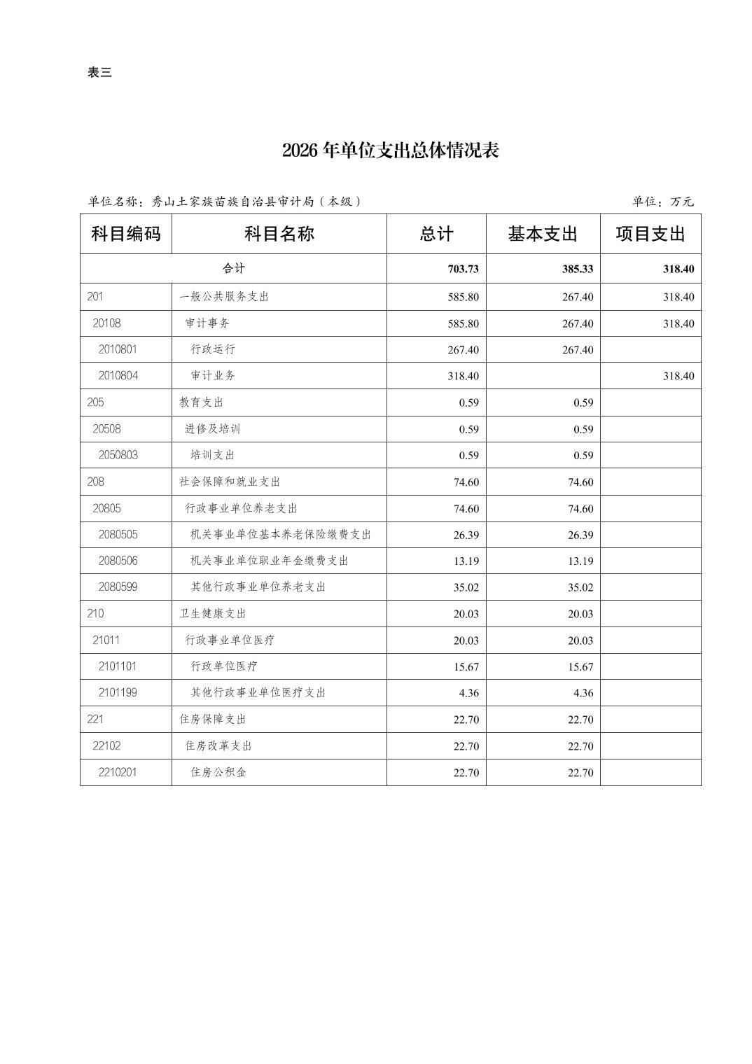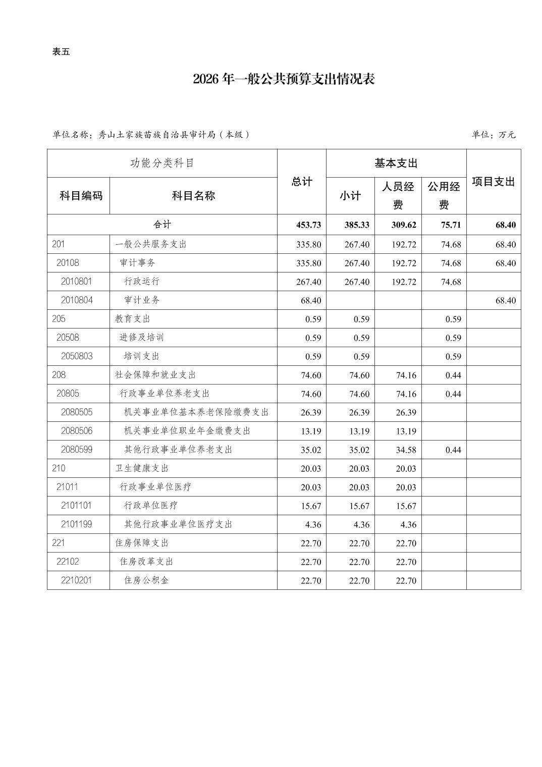 秀山土家族苗族自治县审计局(本级)2026年单位预算情况说明