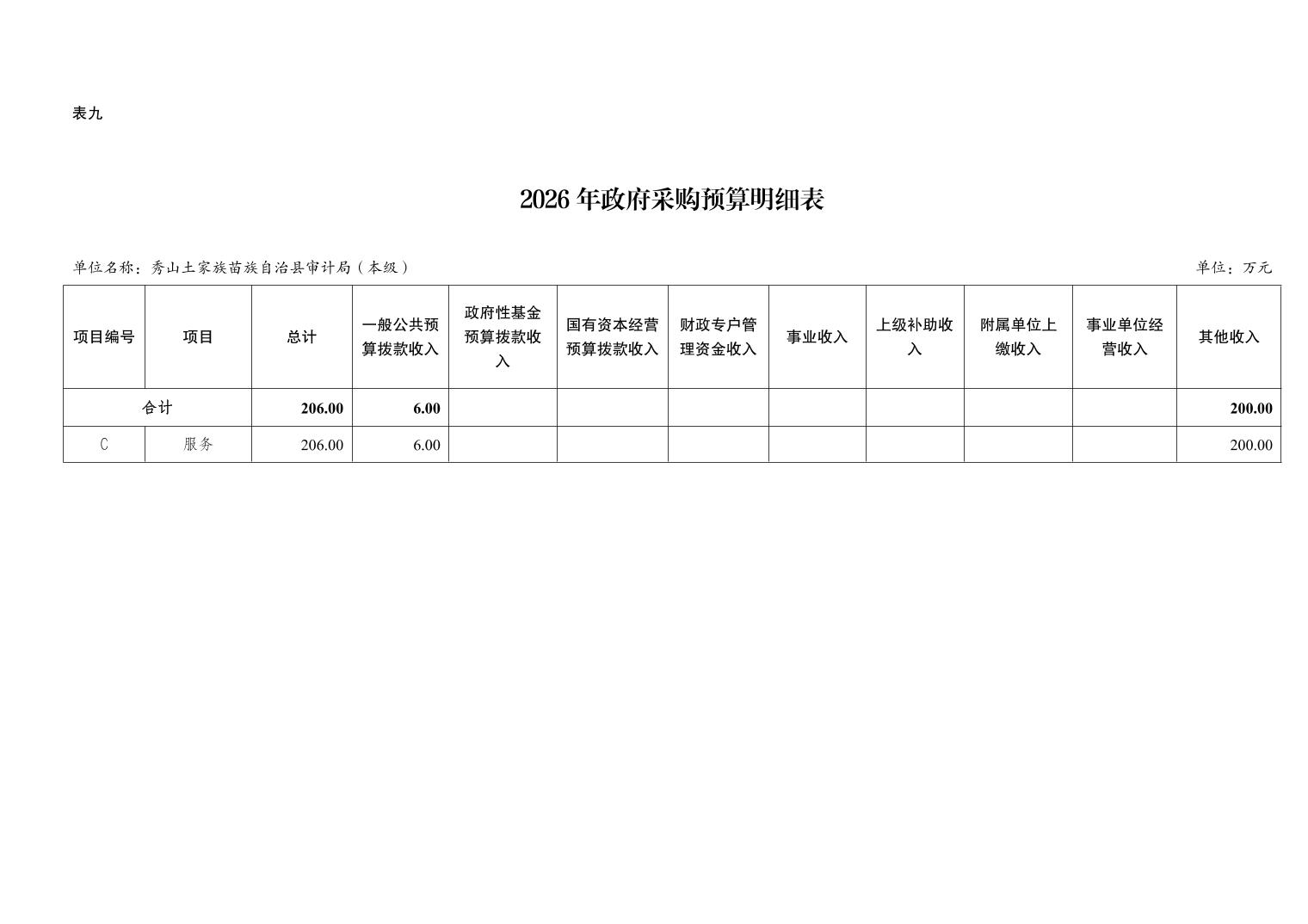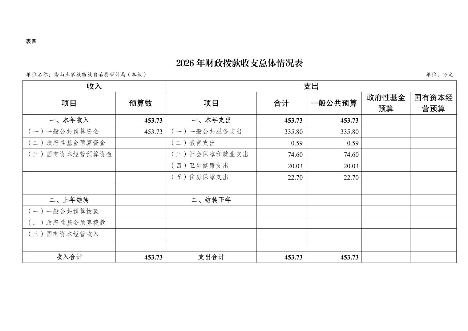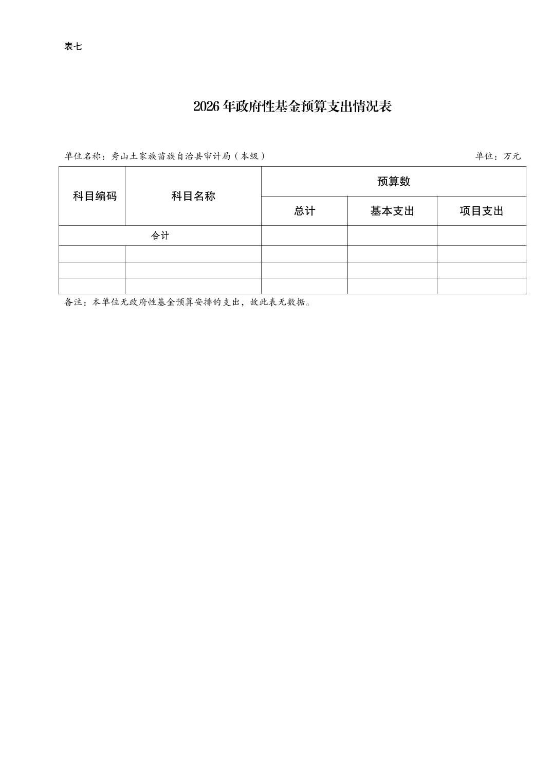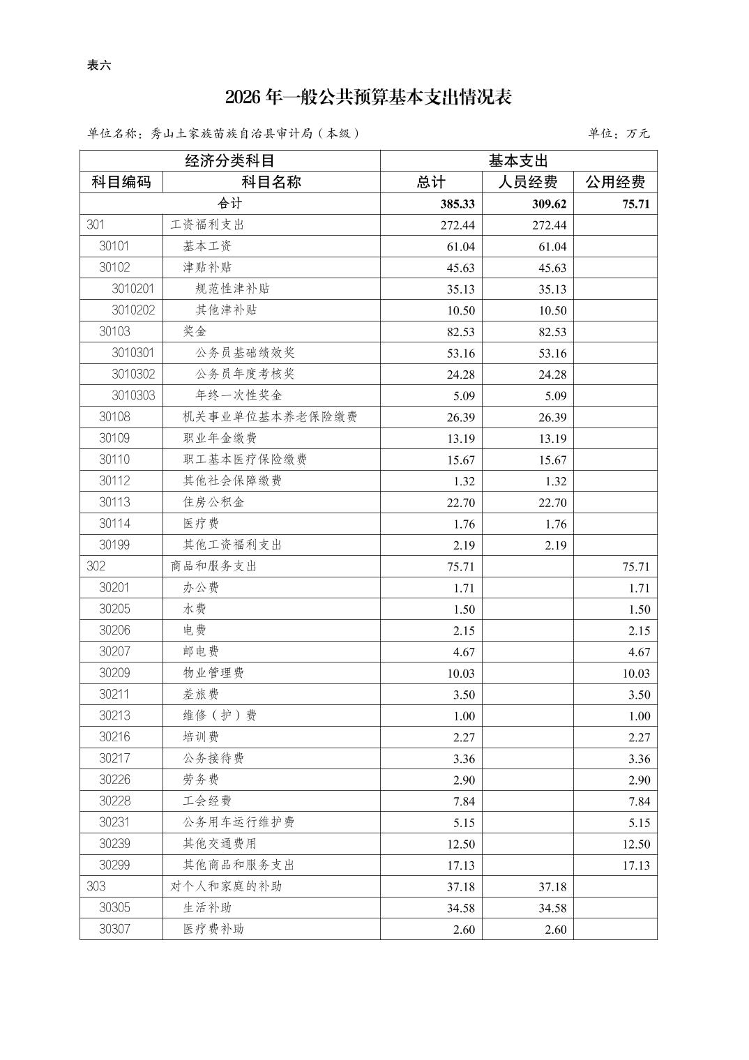 秀山土家族苗族自治县审计局(本级)2026年单位预算情况说明