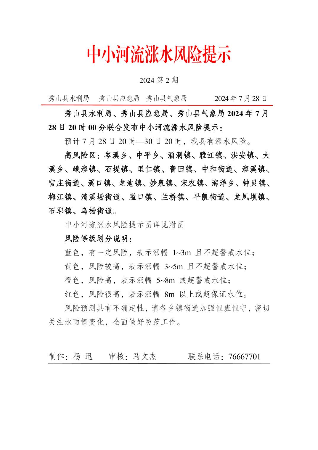 秀山县中小河流涨水风险提示2024年第2期