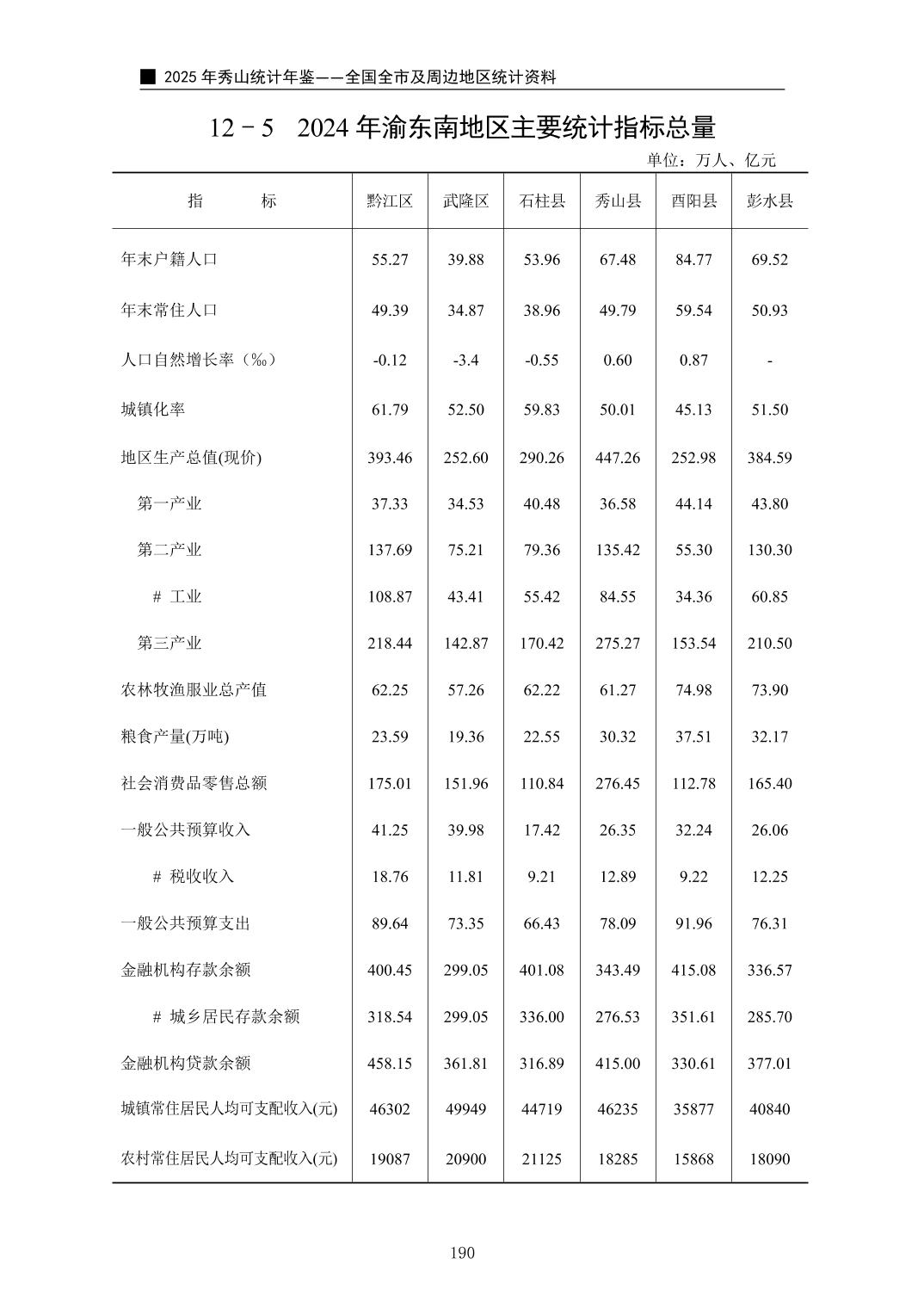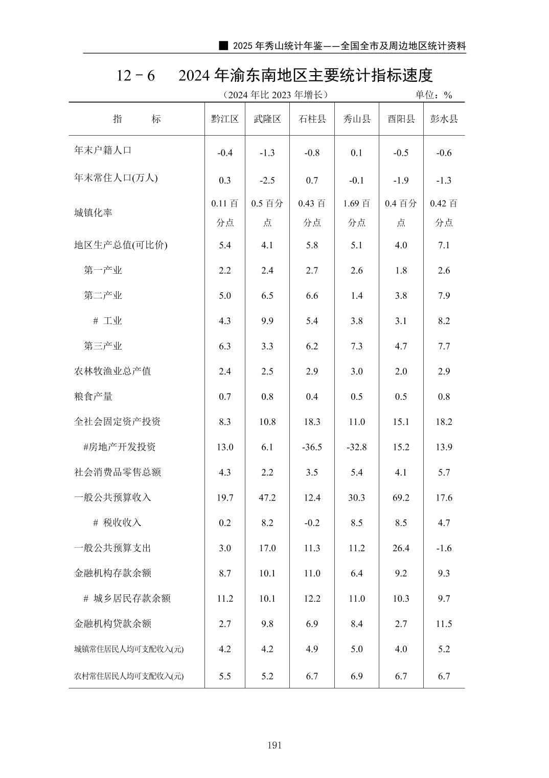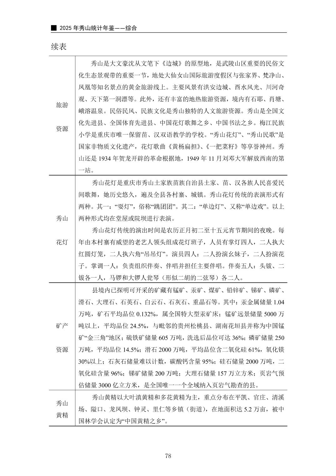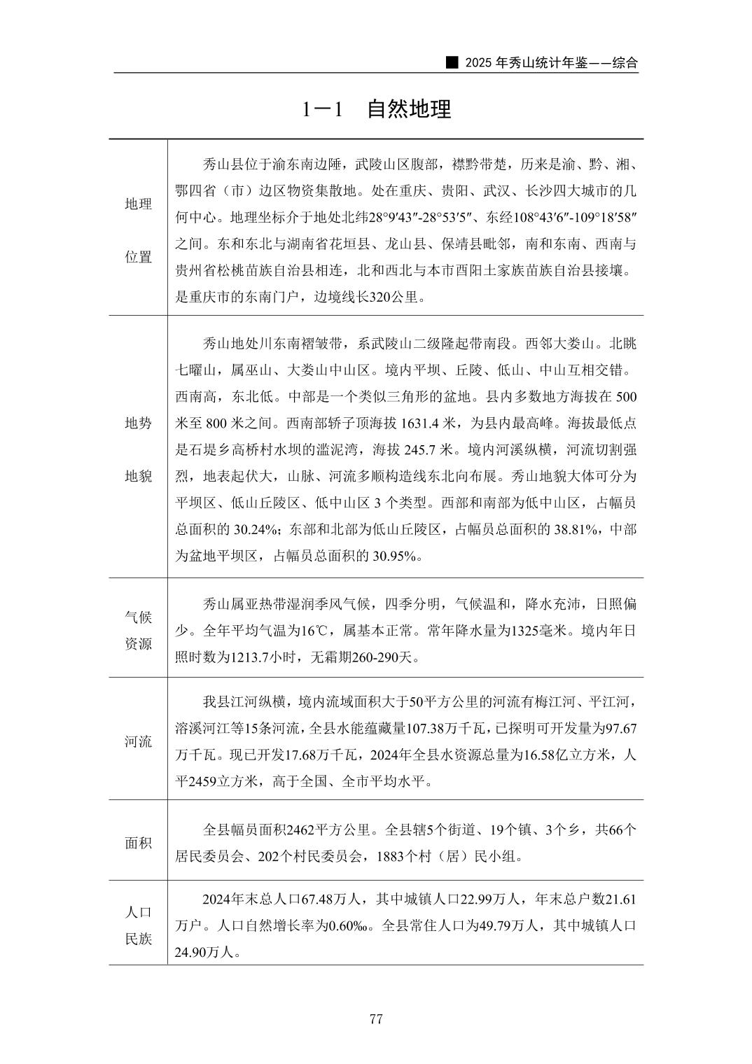 2025年秀山统计年鉴
