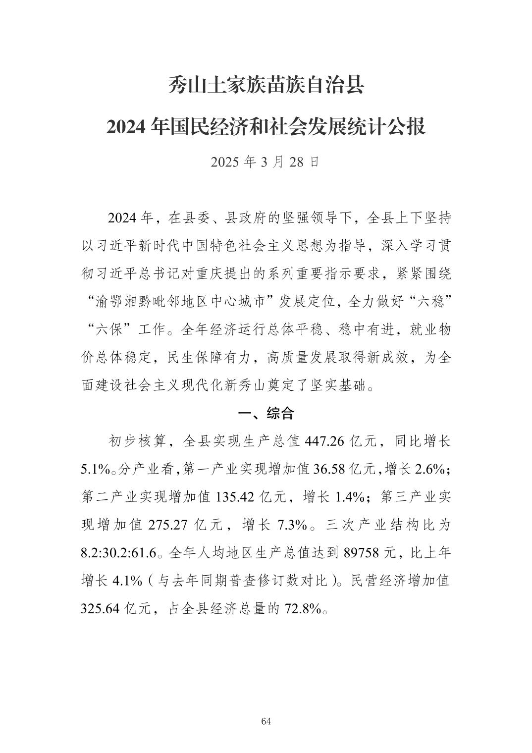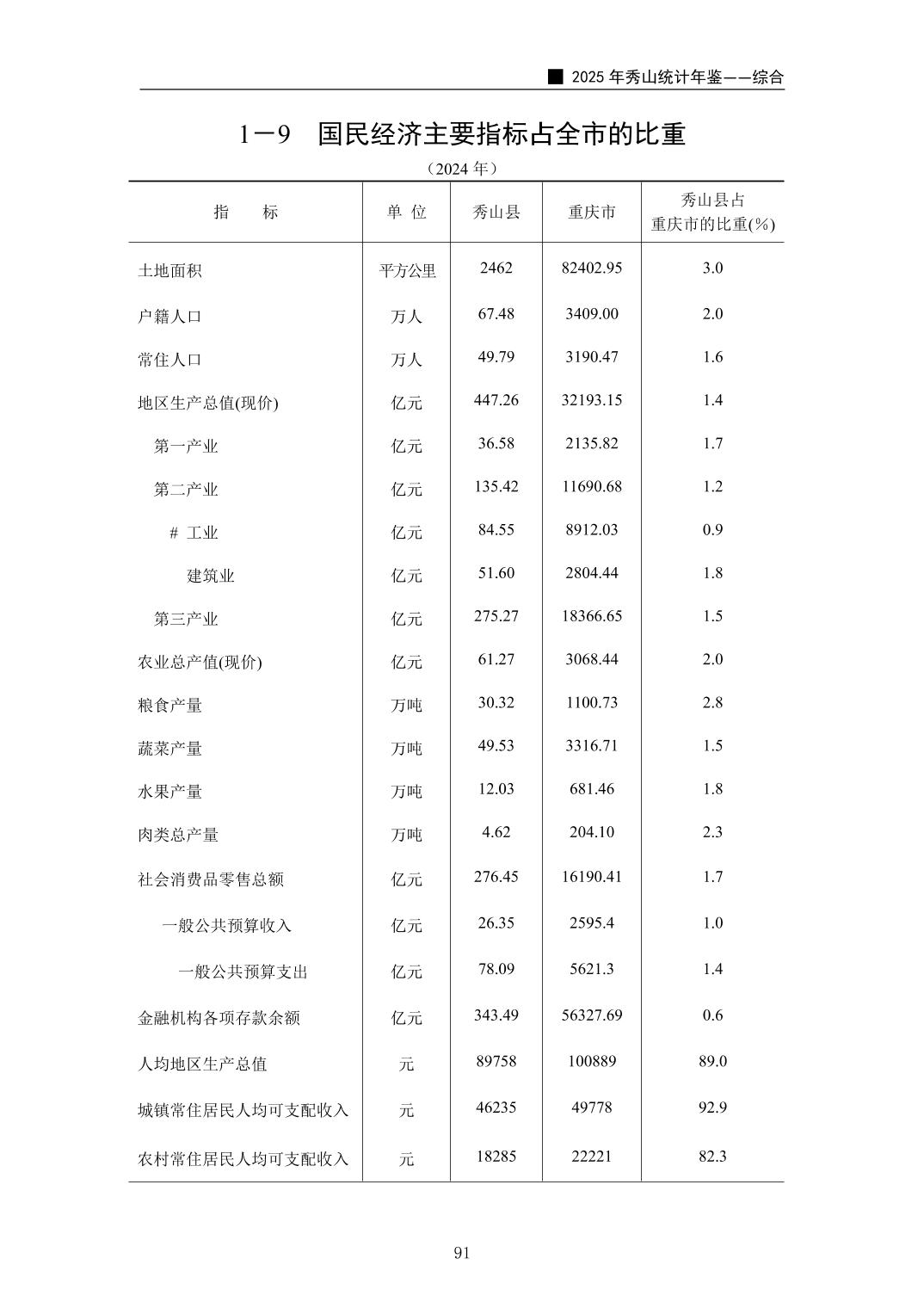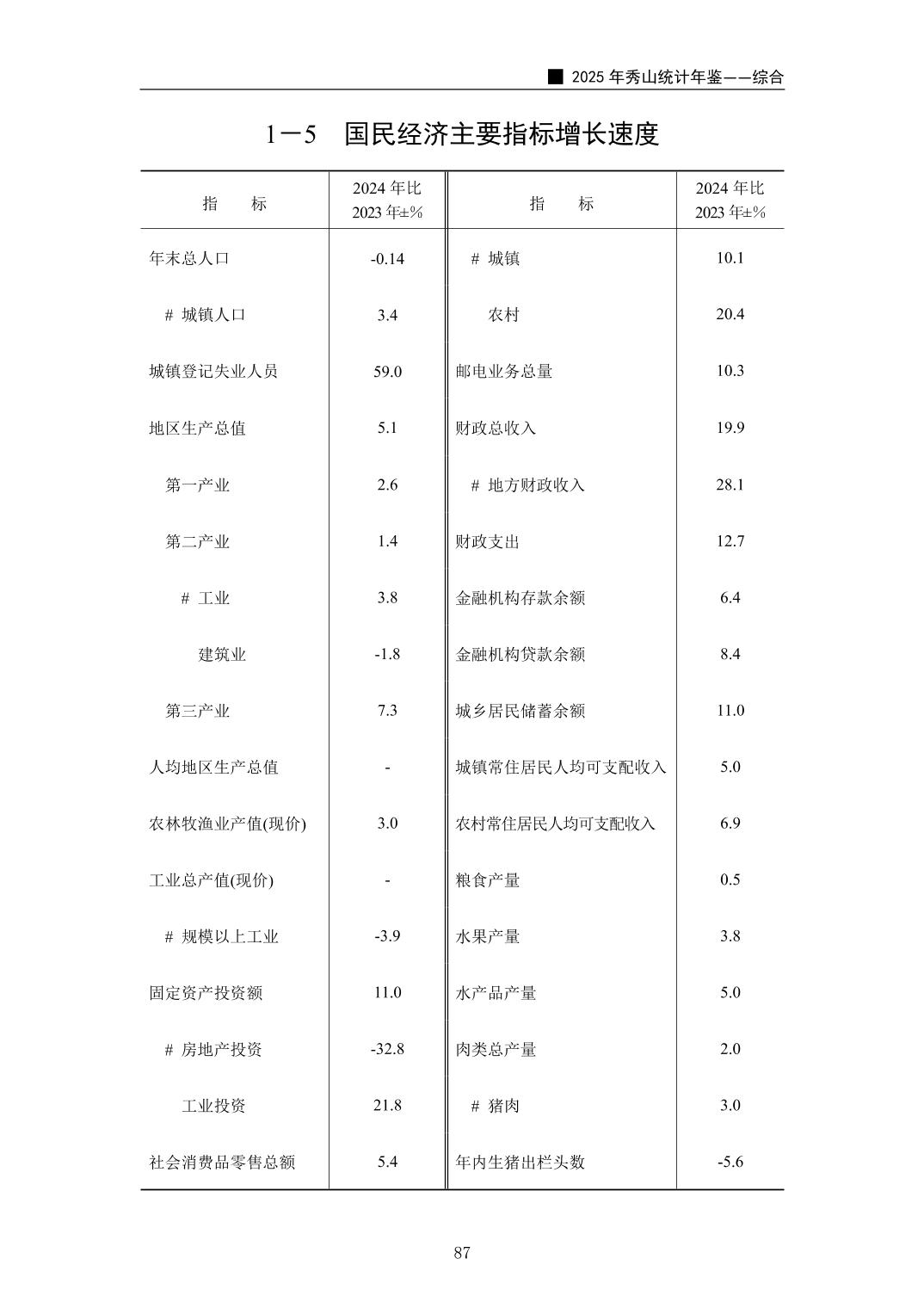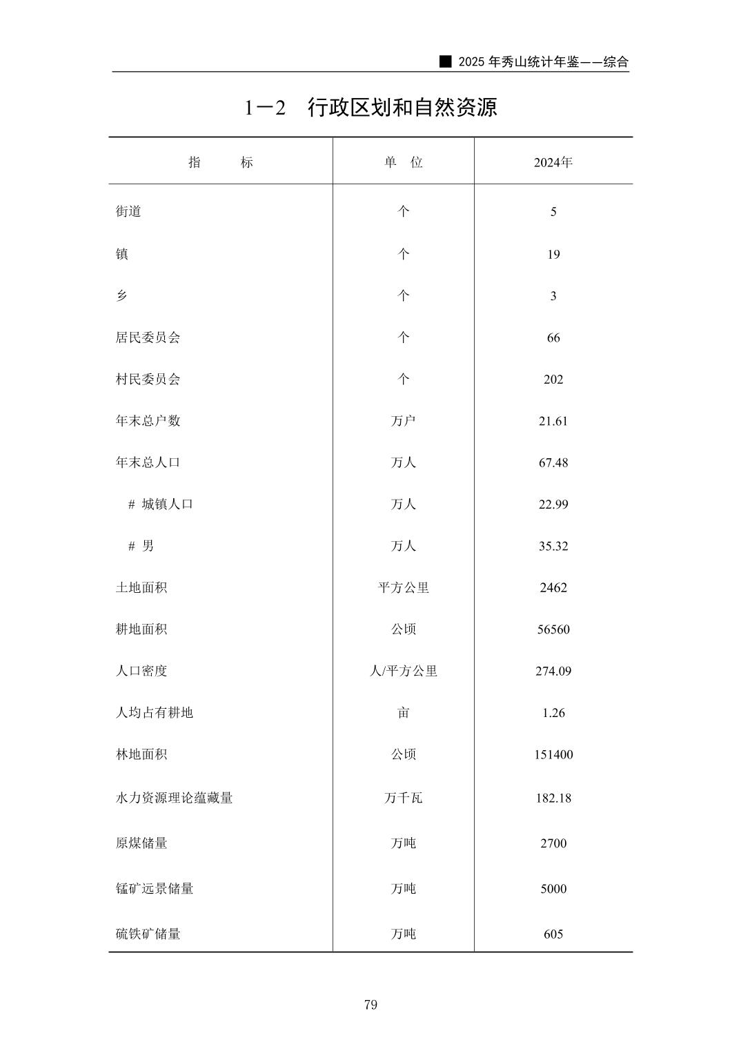 2025年秀山统计年鉴