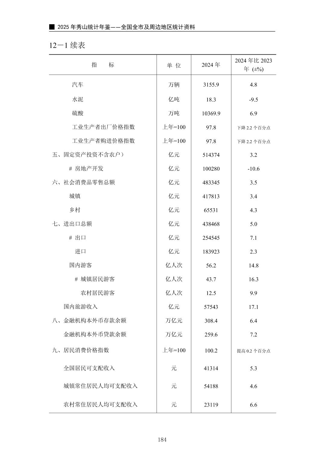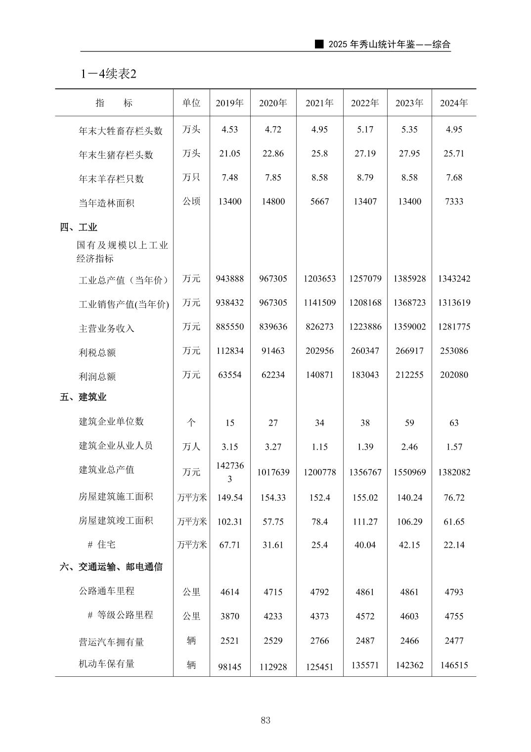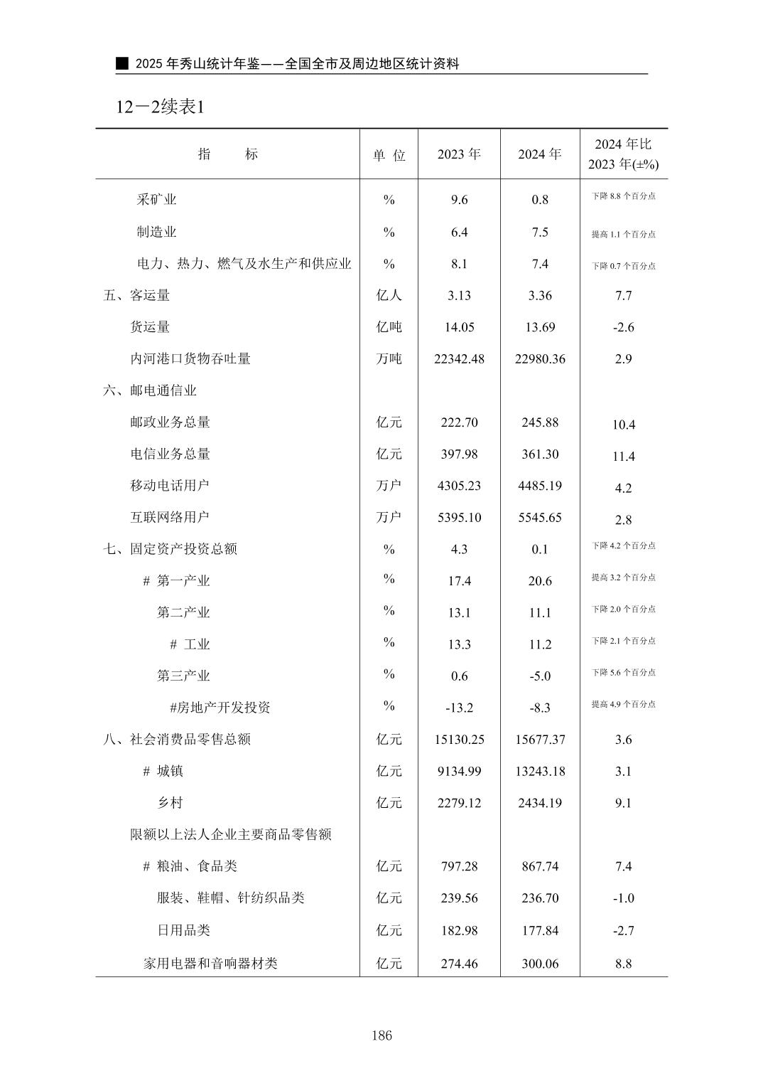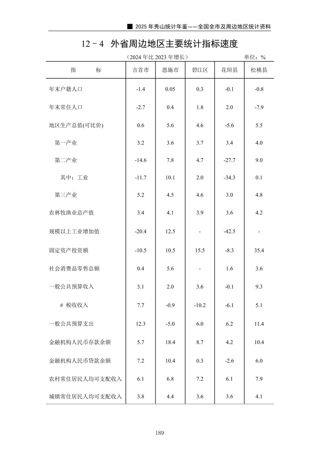 2025年秀山统计年鉴