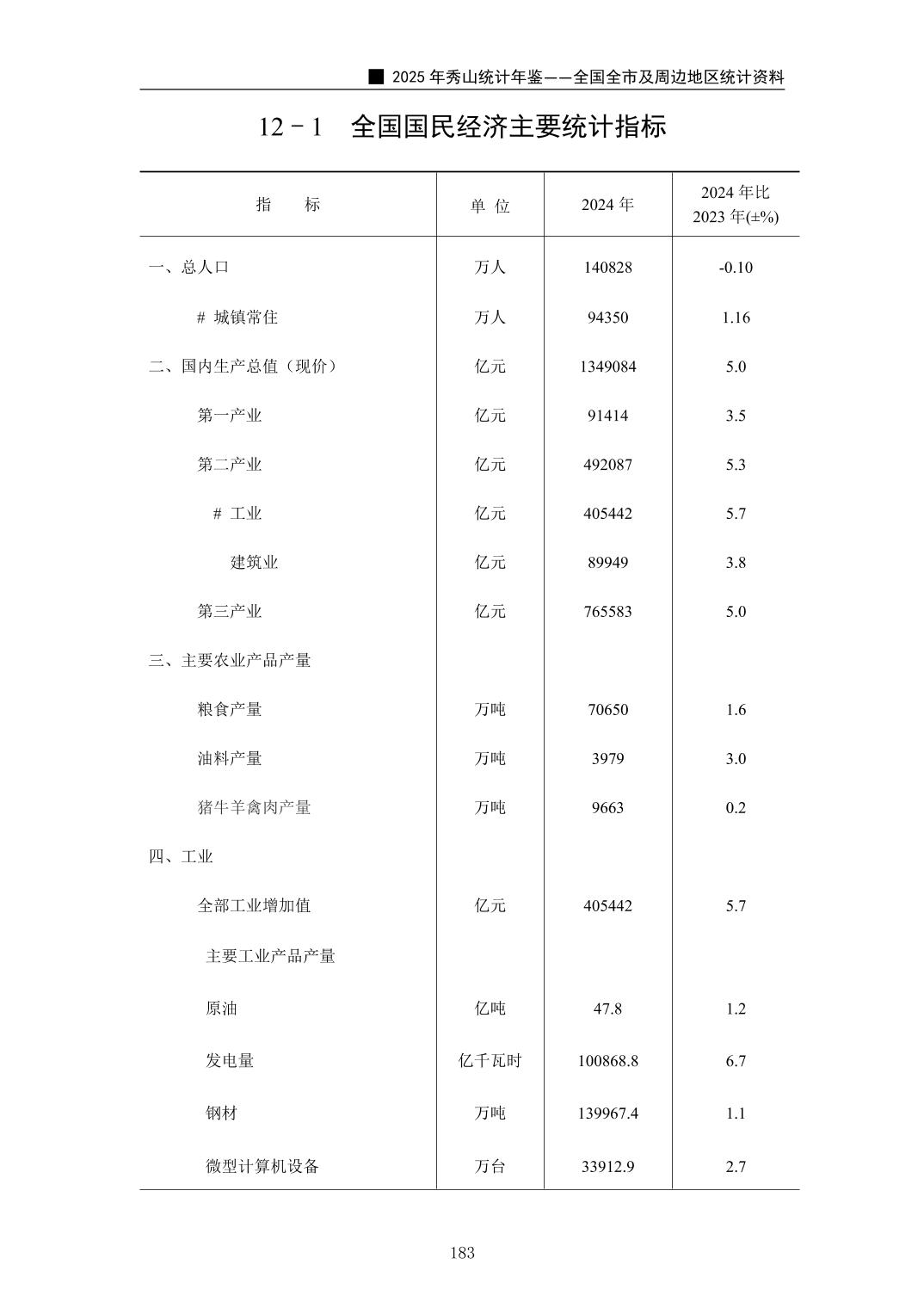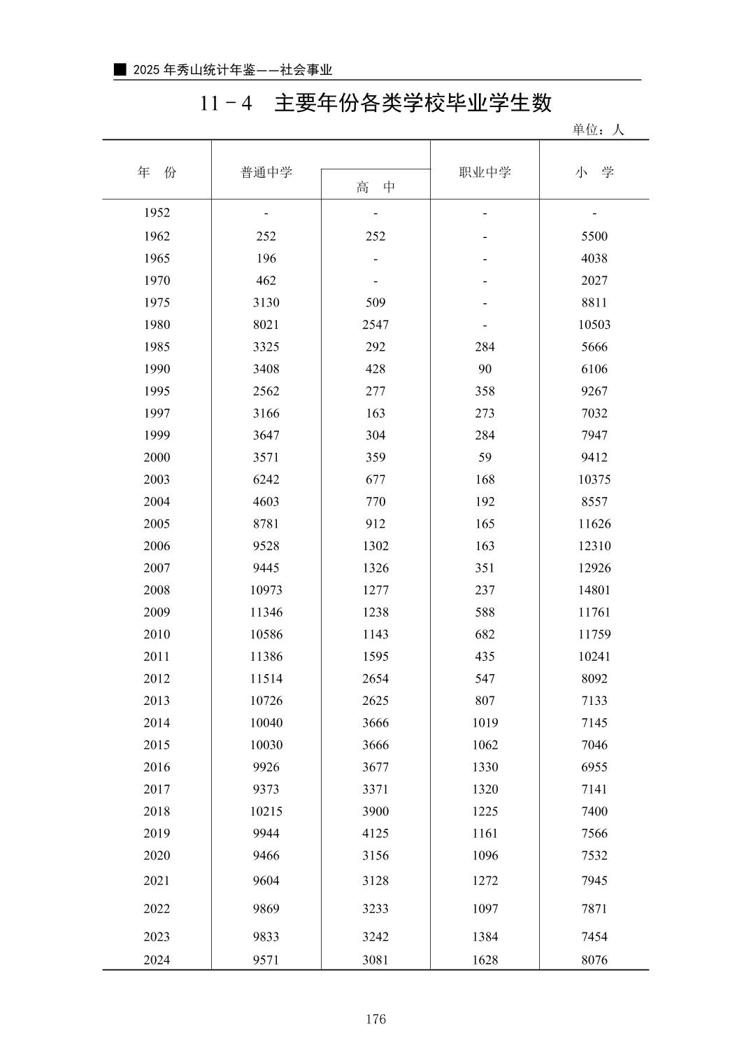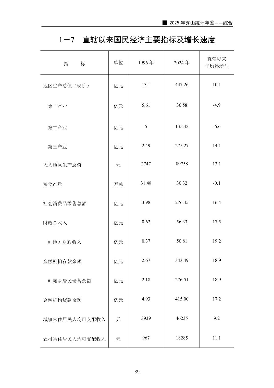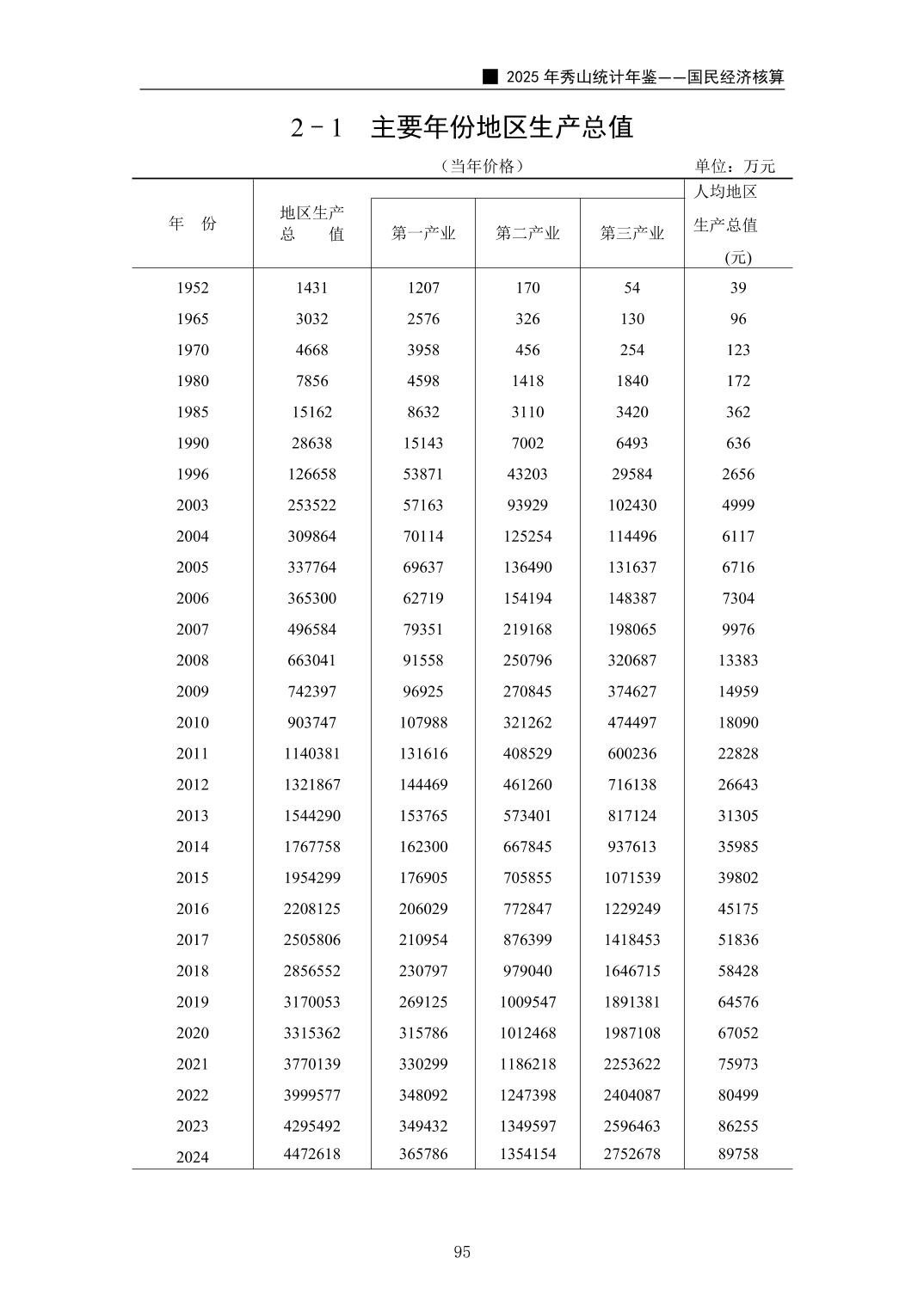 2025年秀山统计年鉴