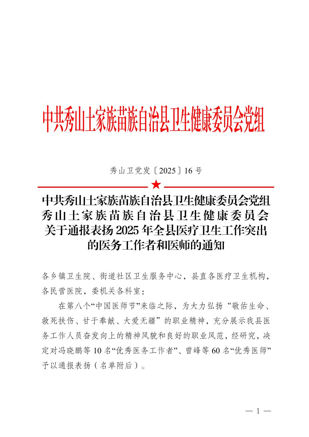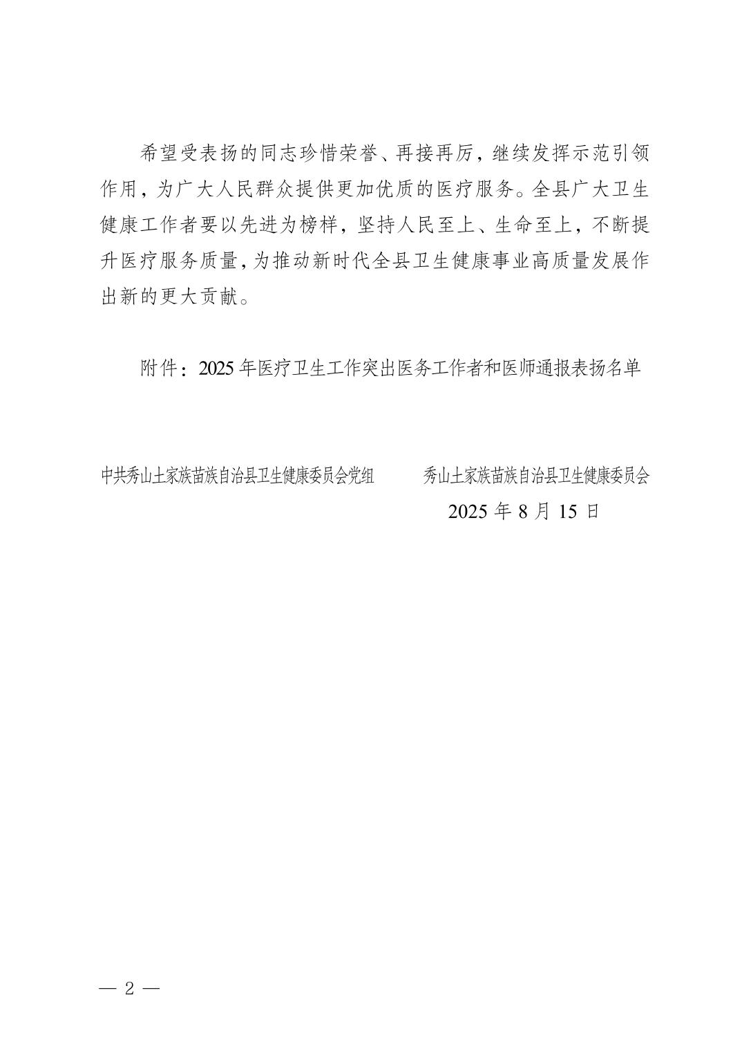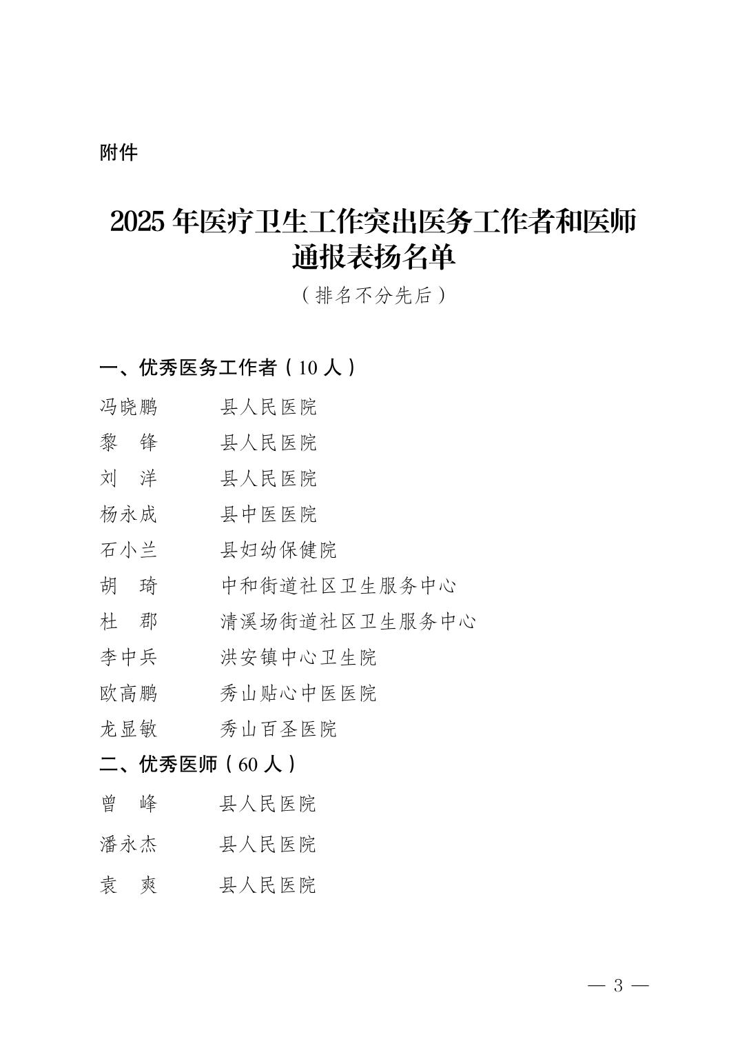 关于通报表扬2025年全县医疗卫生工作突出医务工作者和医师的通知