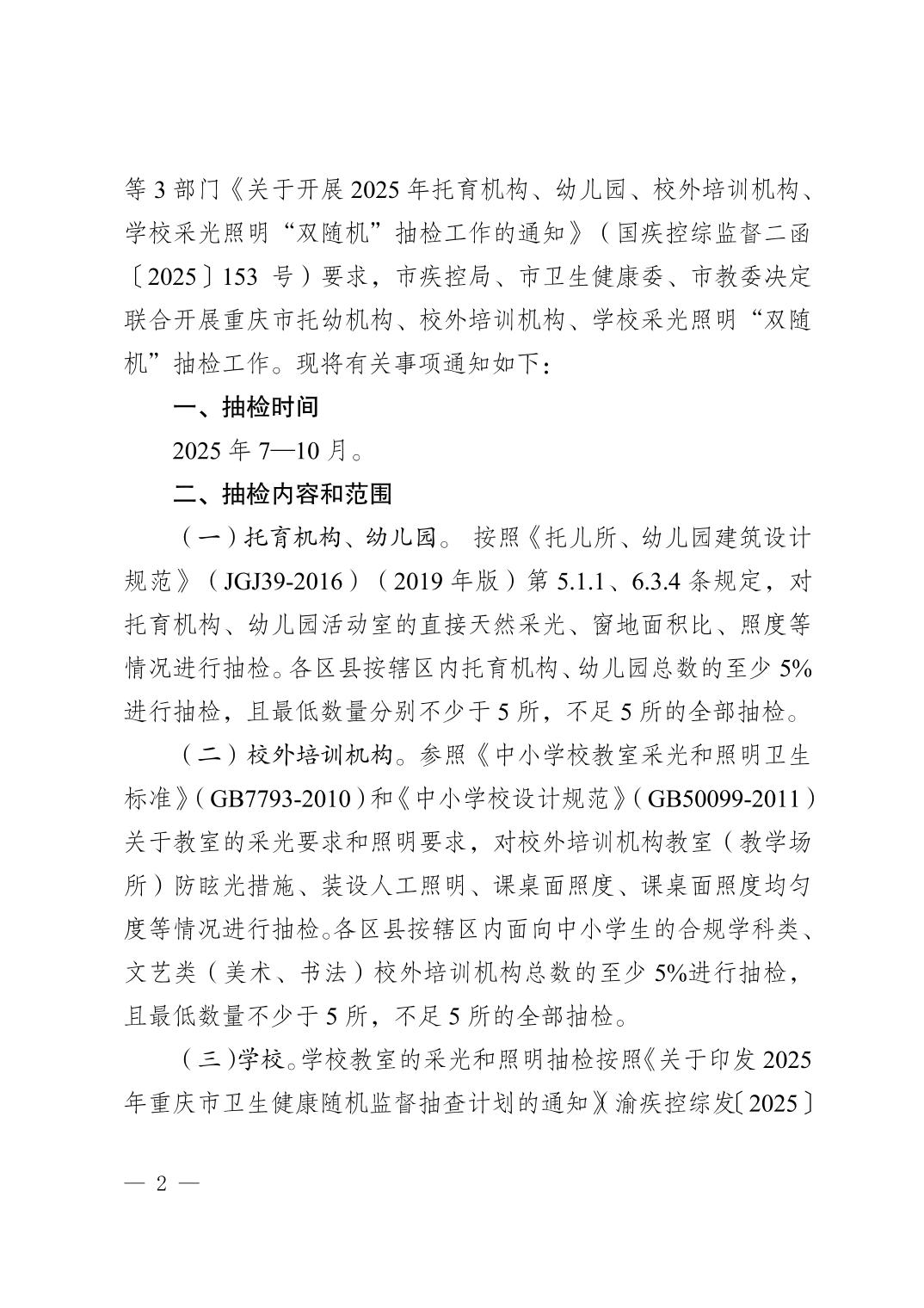 关于开展2025 年托育机构、幼儿园、校外培训机构、学校采光照明“双随机”抽检工作的通知