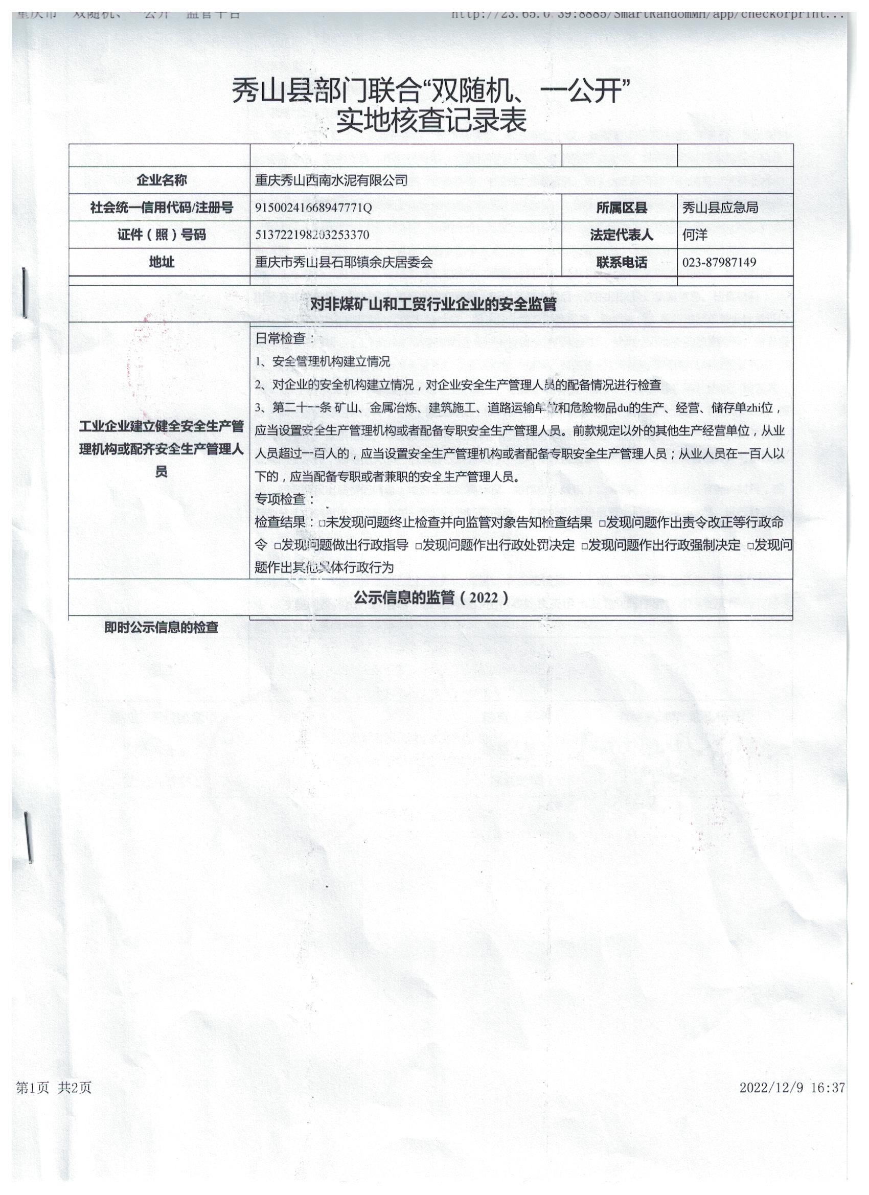2022年秀山县部门联合“双随机、一公开”实地核查