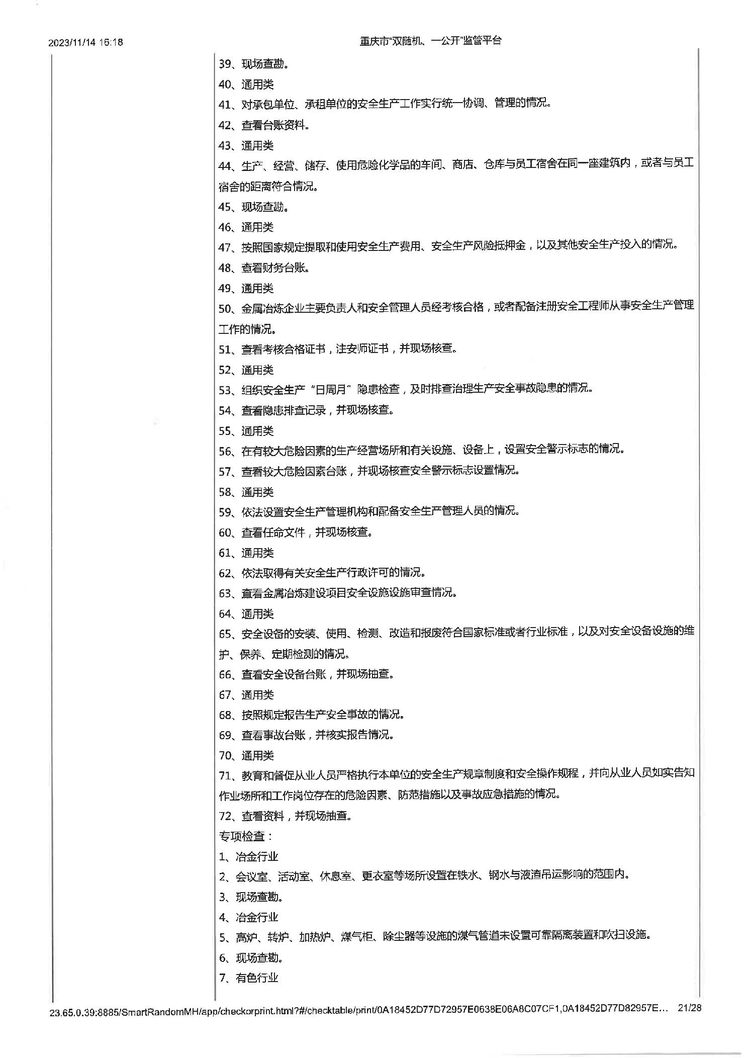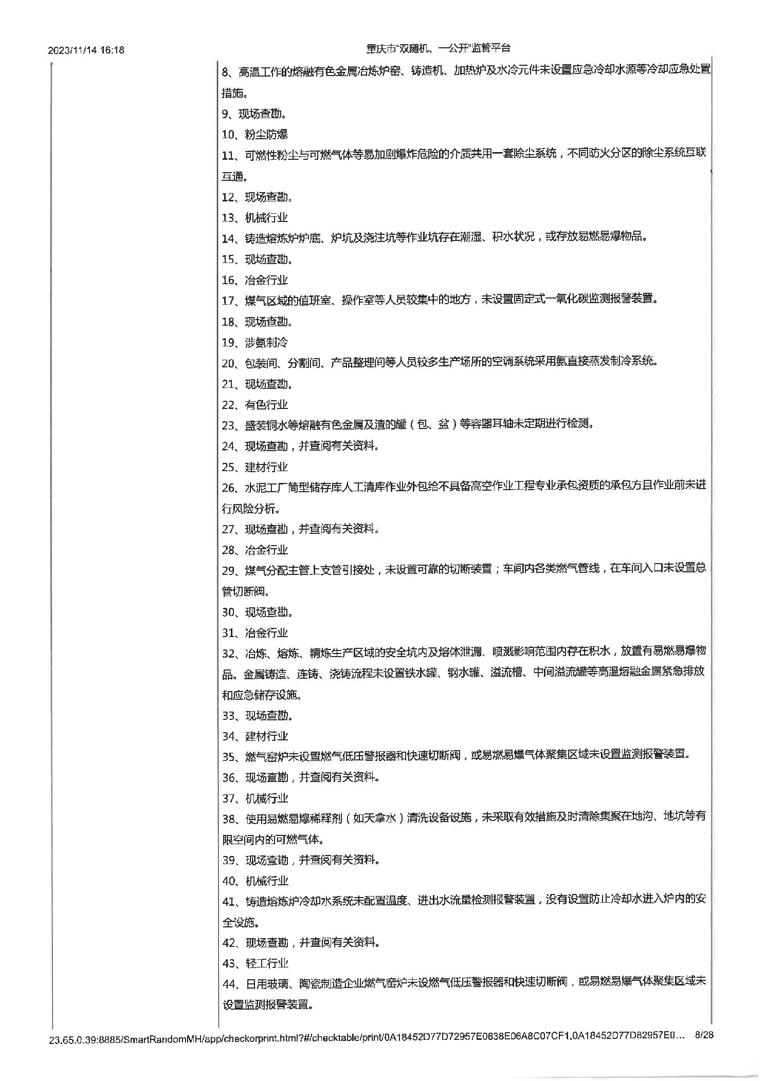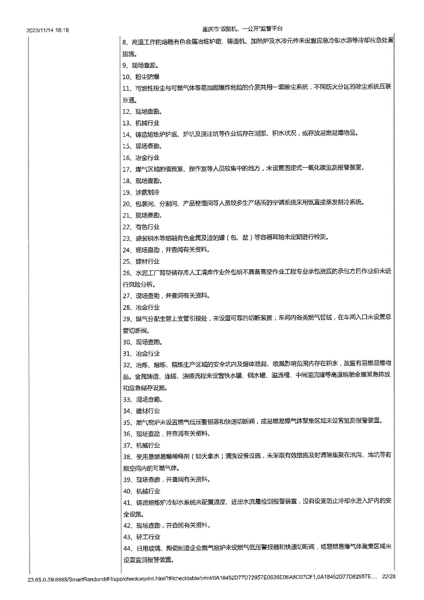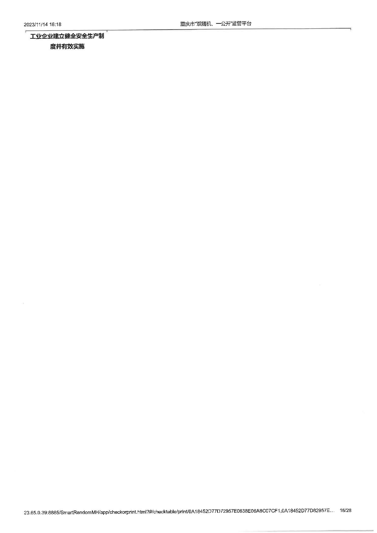 工业企业建立健全安全生茶制度并有效实施,工业企业建立健全安全生产管理机构或配齐安全生产管理人员,即使公示信息的检查,年度报告公示信息的检查 |