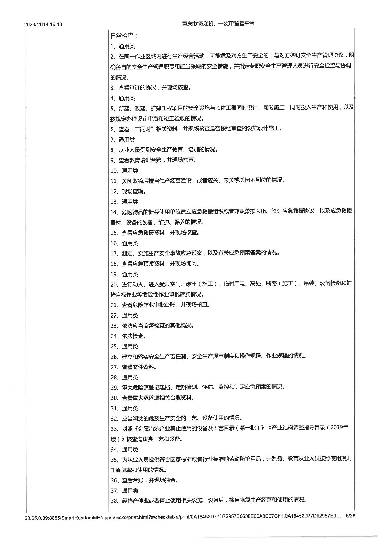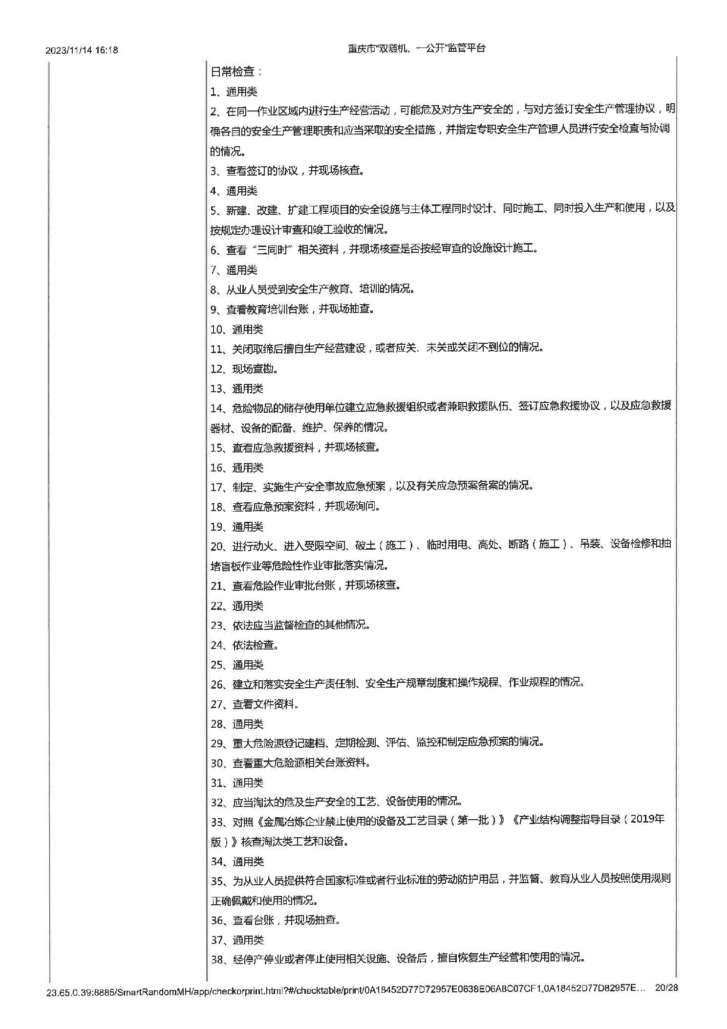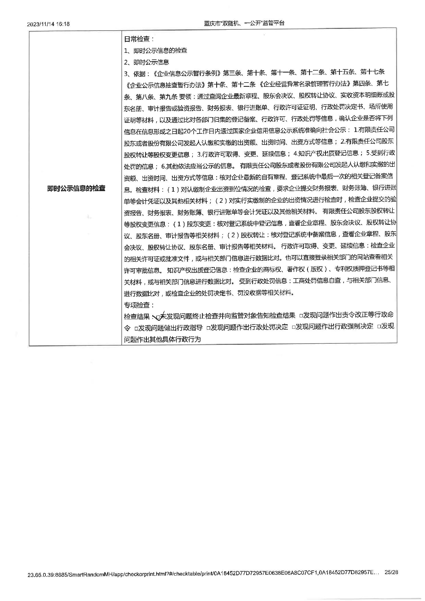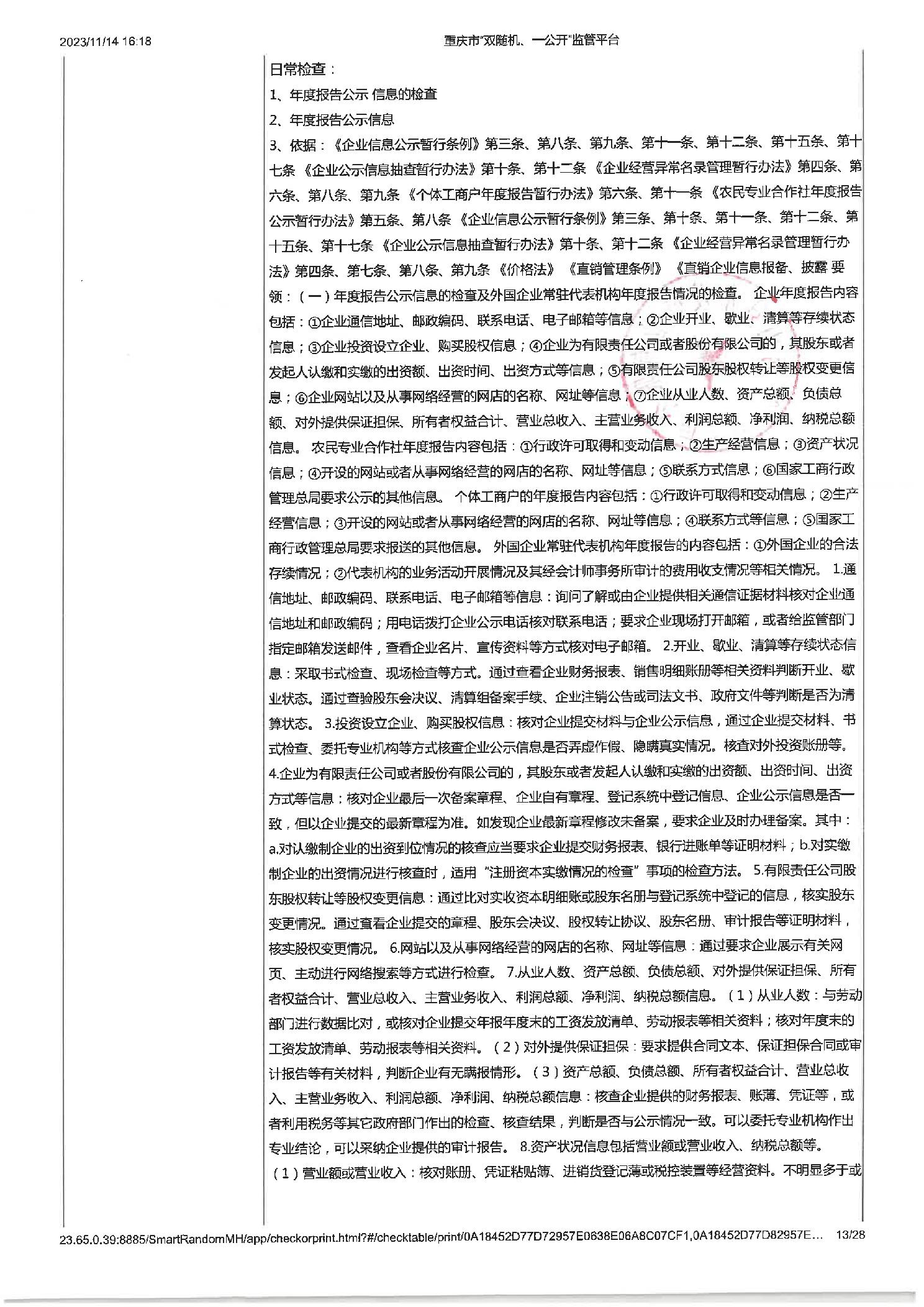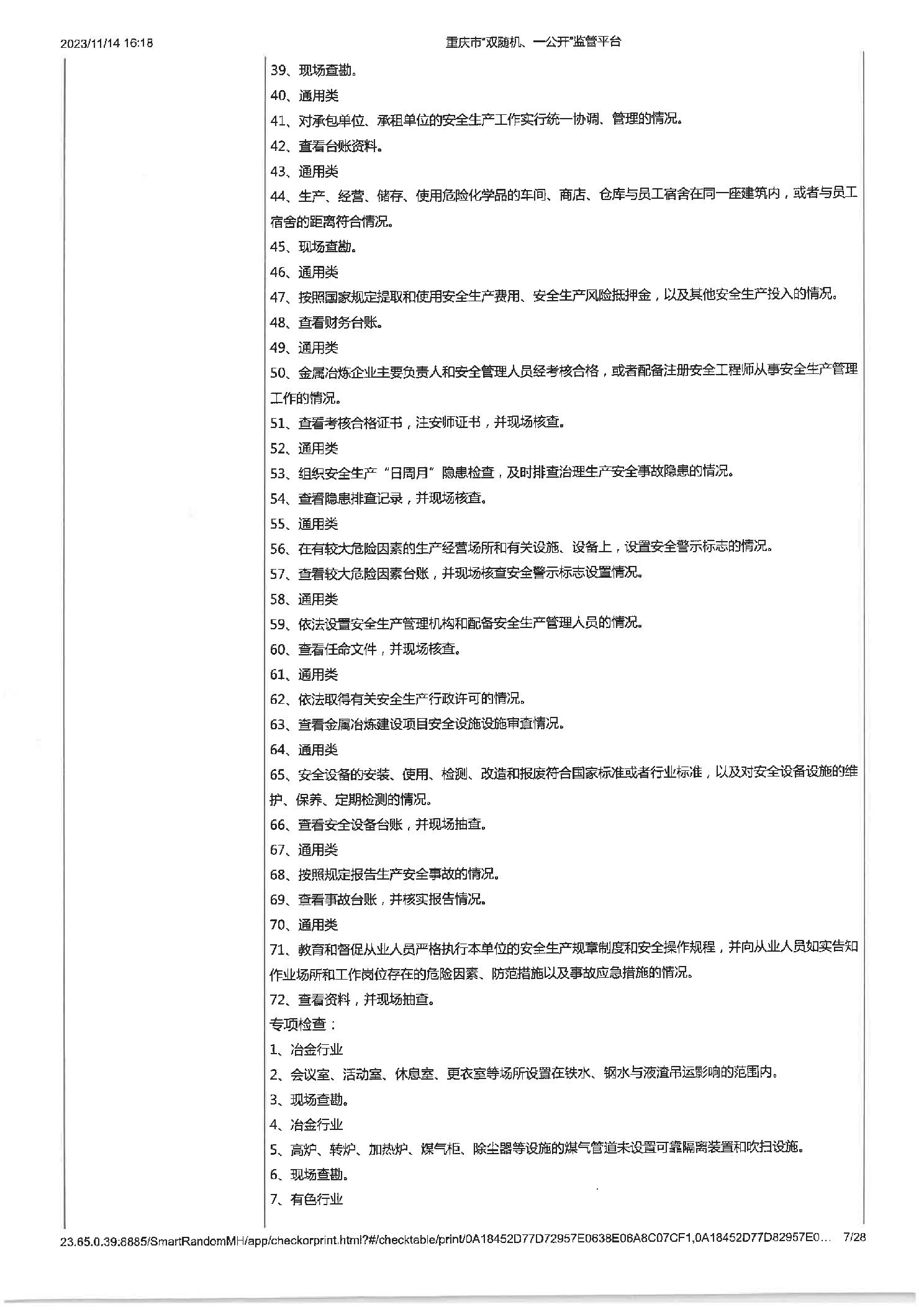 工业企业建立健全安全生茶制度并有效实施,工业企业建立健全安全生产管理机构或配齐安全生产管理人员,即使公示信息的检查,年度报告公示信息的检查 |