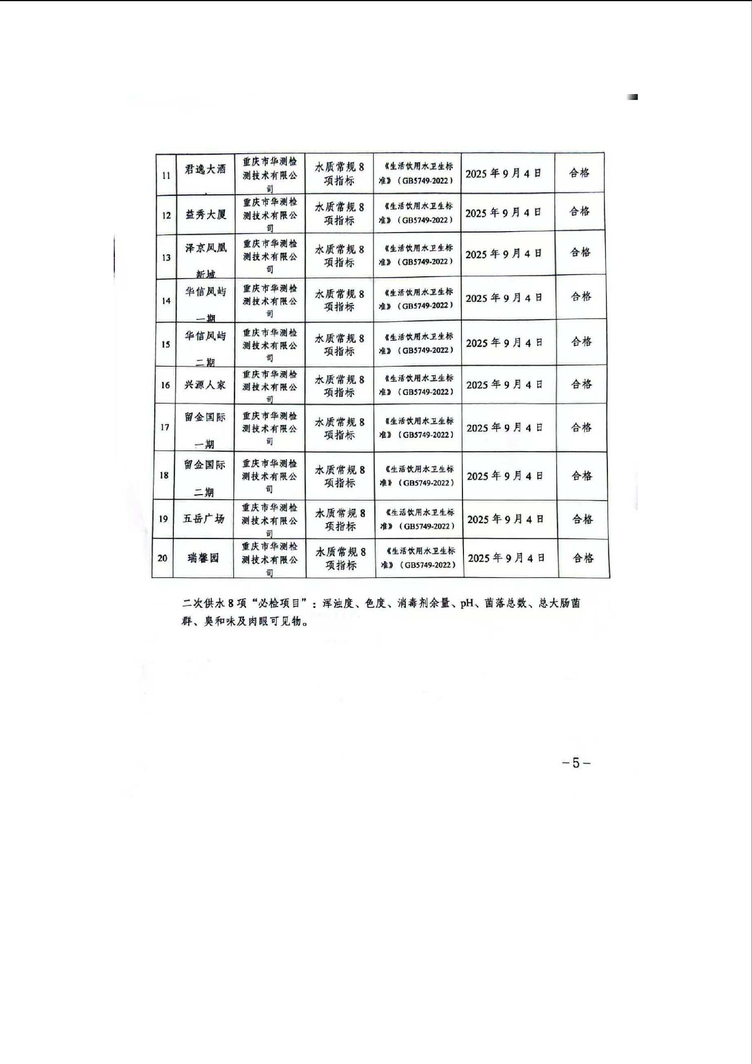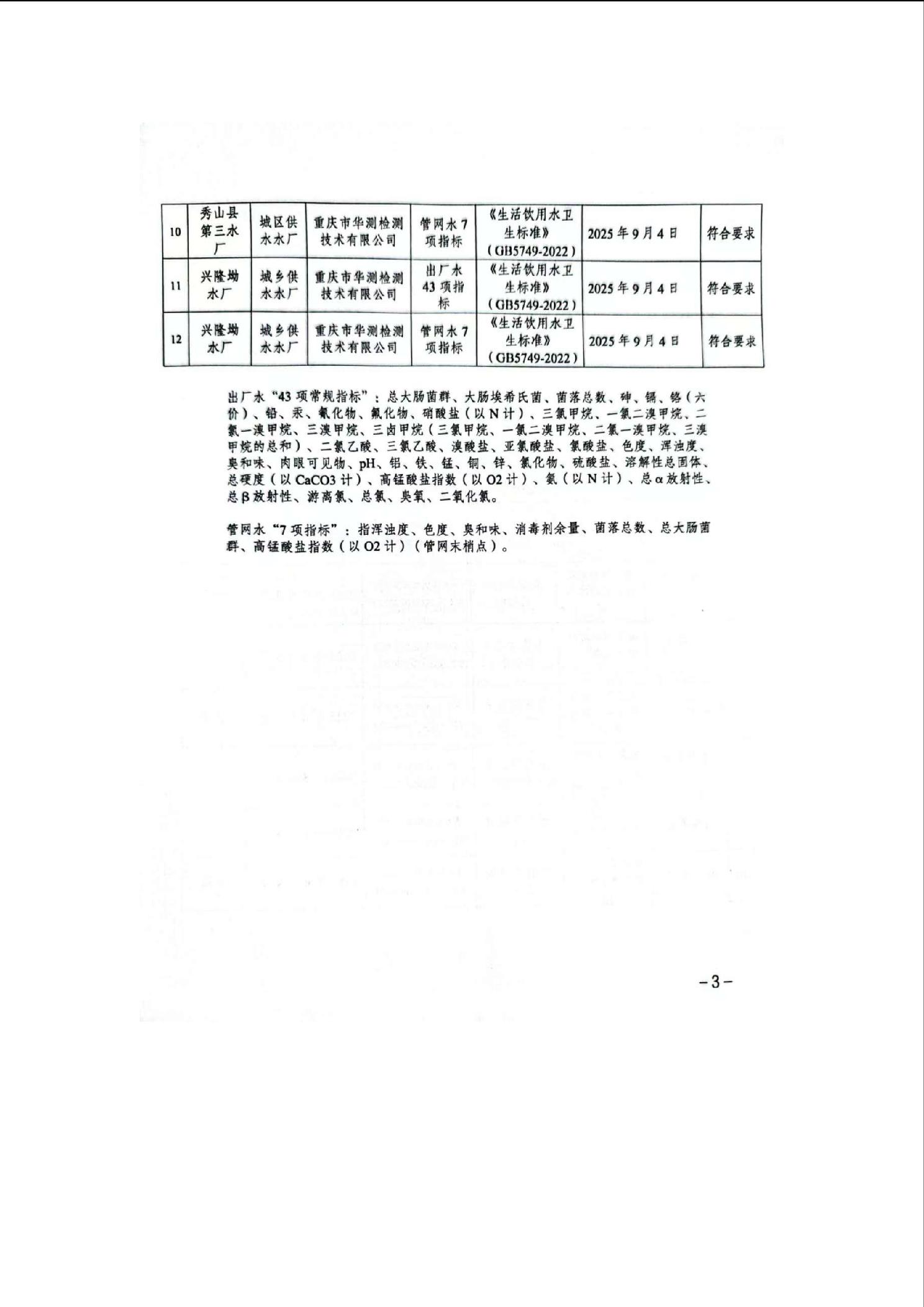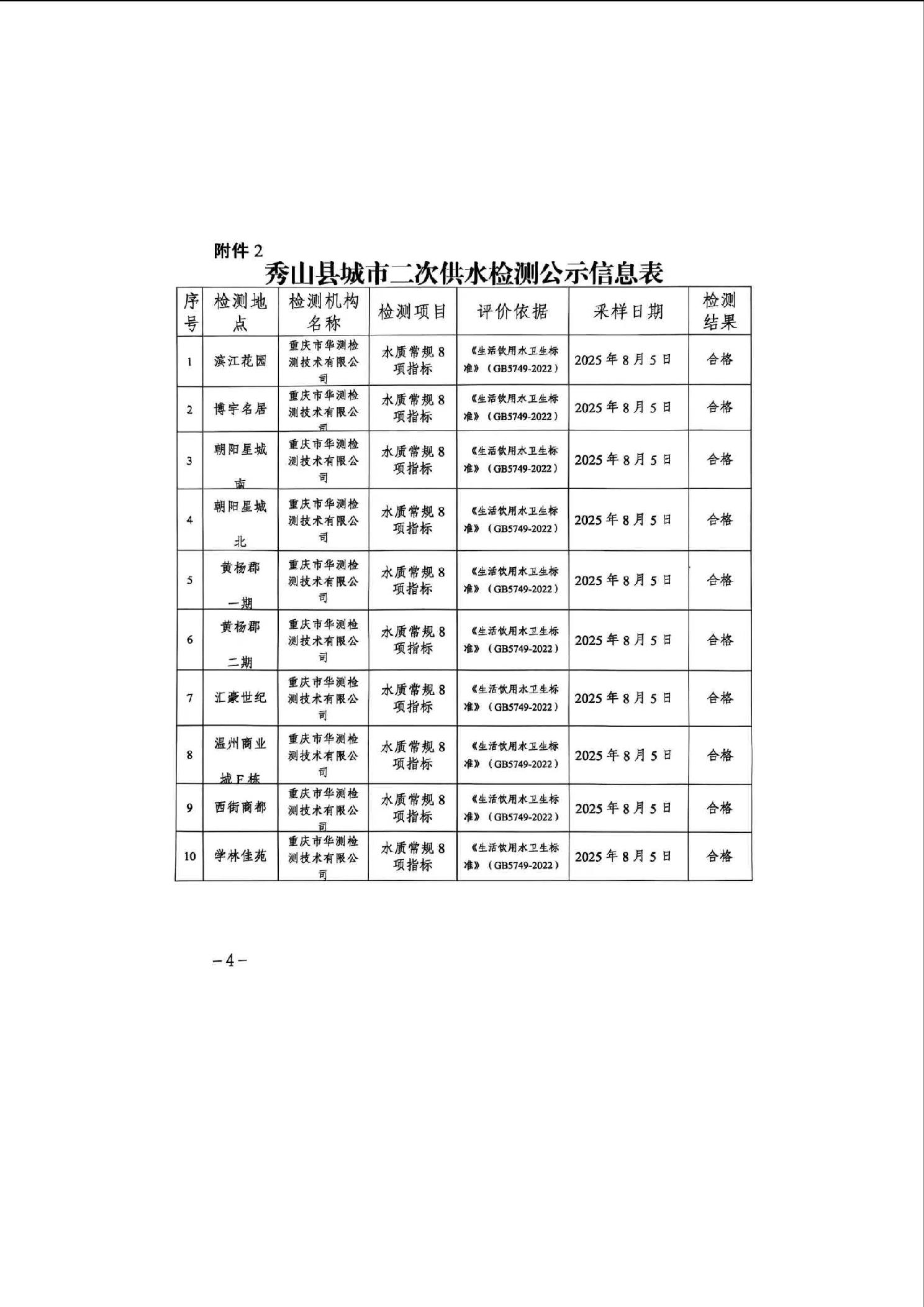 秀山县2025年8-9月份城市供水厂、出厂水、管网水二次供水及公共直饮水检测信息的公示
