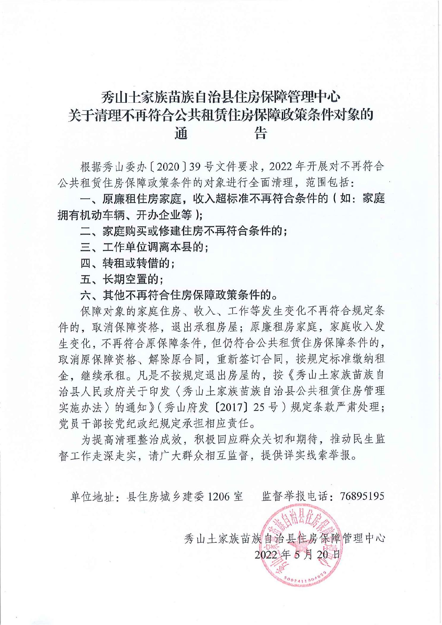关于清理不再符合公共租赁住房保障政策条件对象的通告