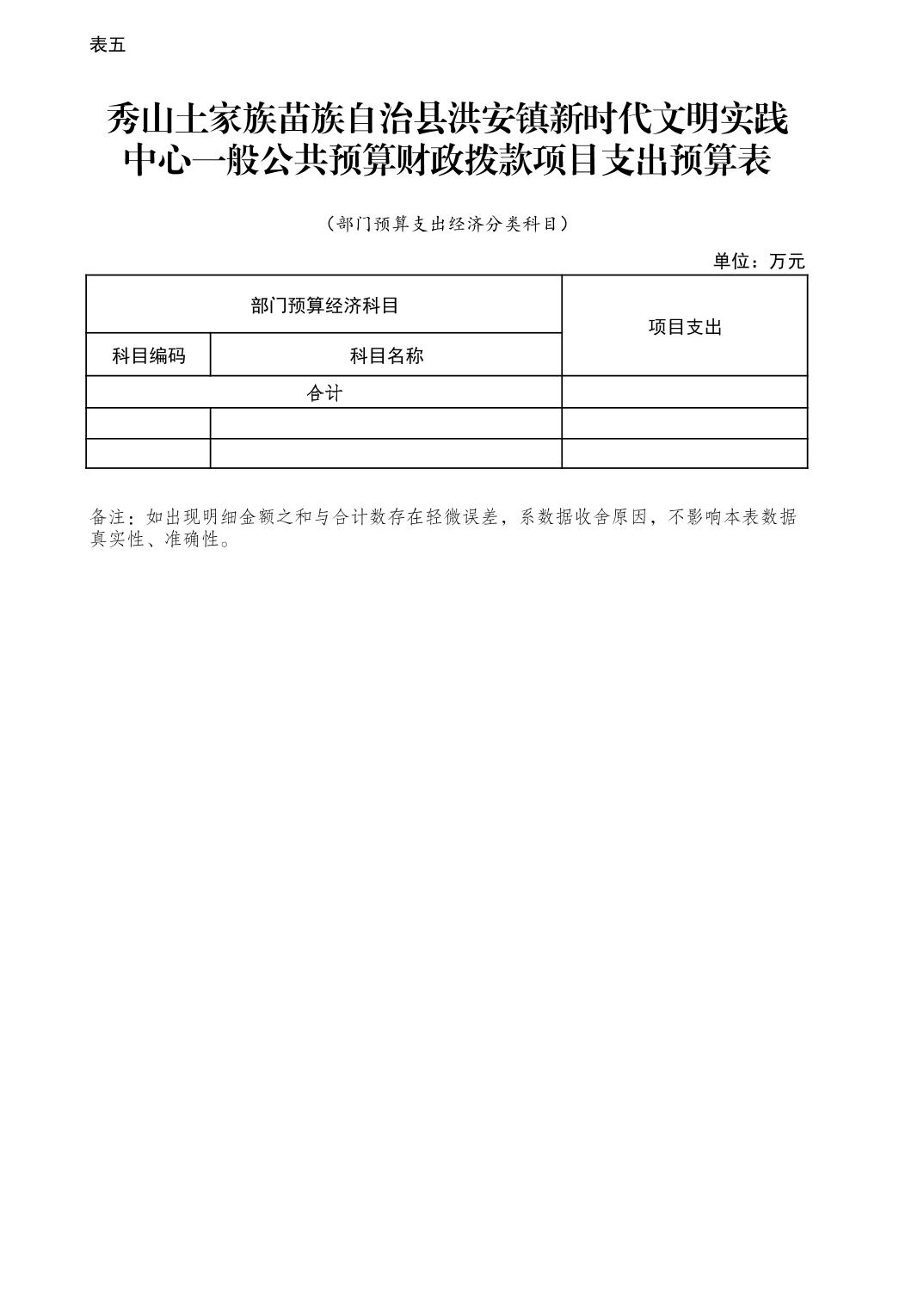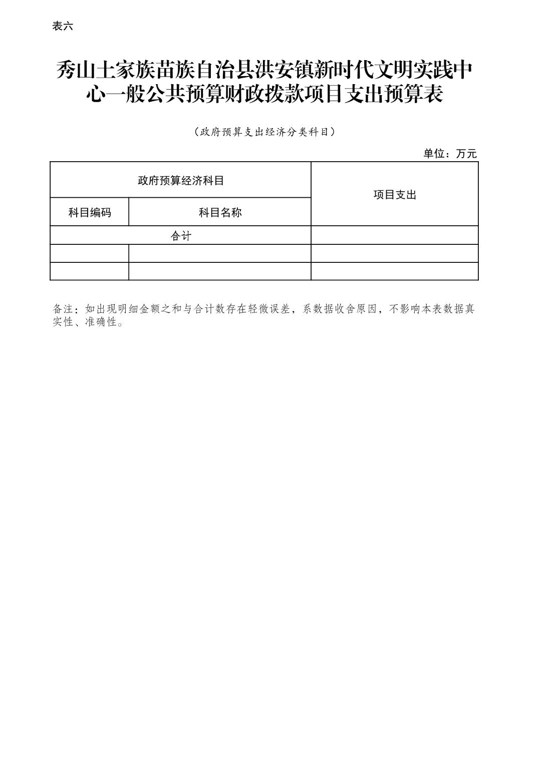 | 秀山土家族苗族自治县洪安镇新时代文明实践中心一般公共预算财政拨款项目支出预算表 | ||