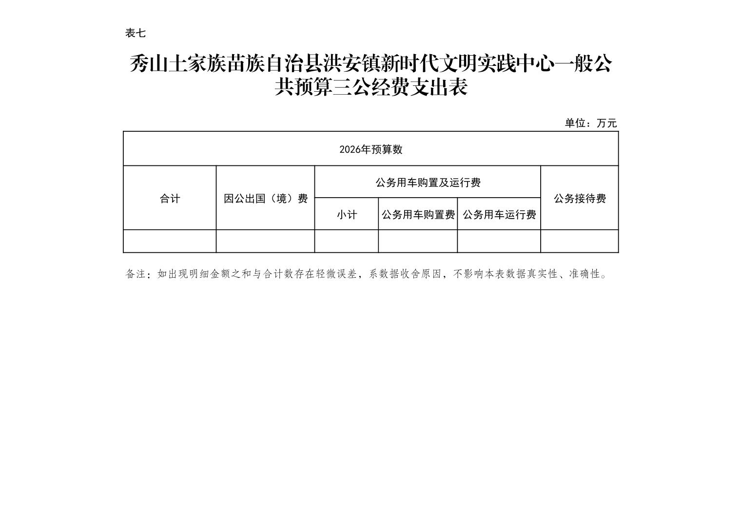 | 秀山土家族苗族自治县洪安镇新时代文明实践中心一般公共预算三公经费支出表 | |||||