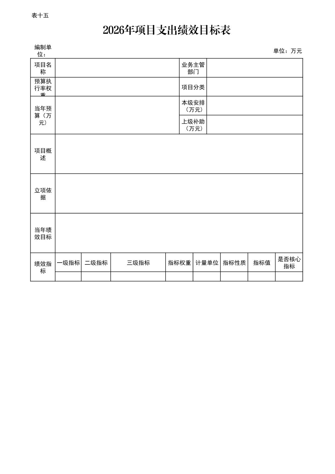 | 2026年项目支出绩效目标表 | ||||||||||||