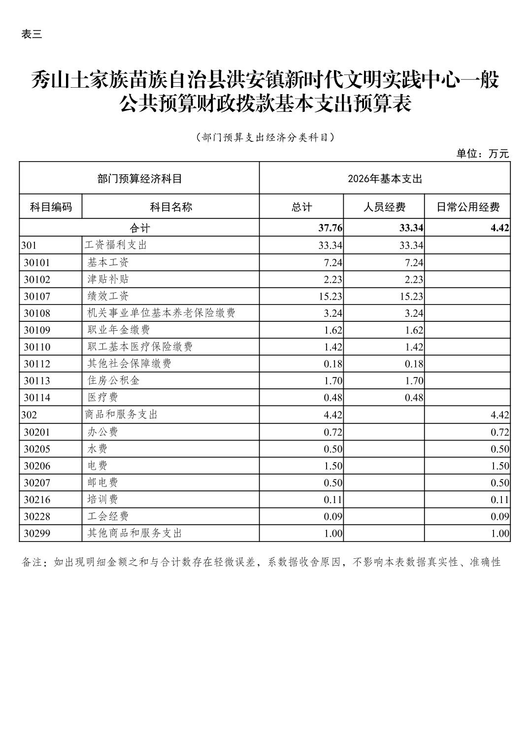 | 301 | 工资福利支出 | 33.34 | 33.34 | |