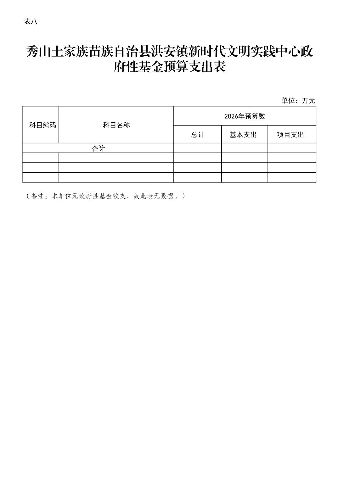 | 秀山土家族苗族自治县洪安镇新时代文明实践中心政府性基金预算支出表 | ||||