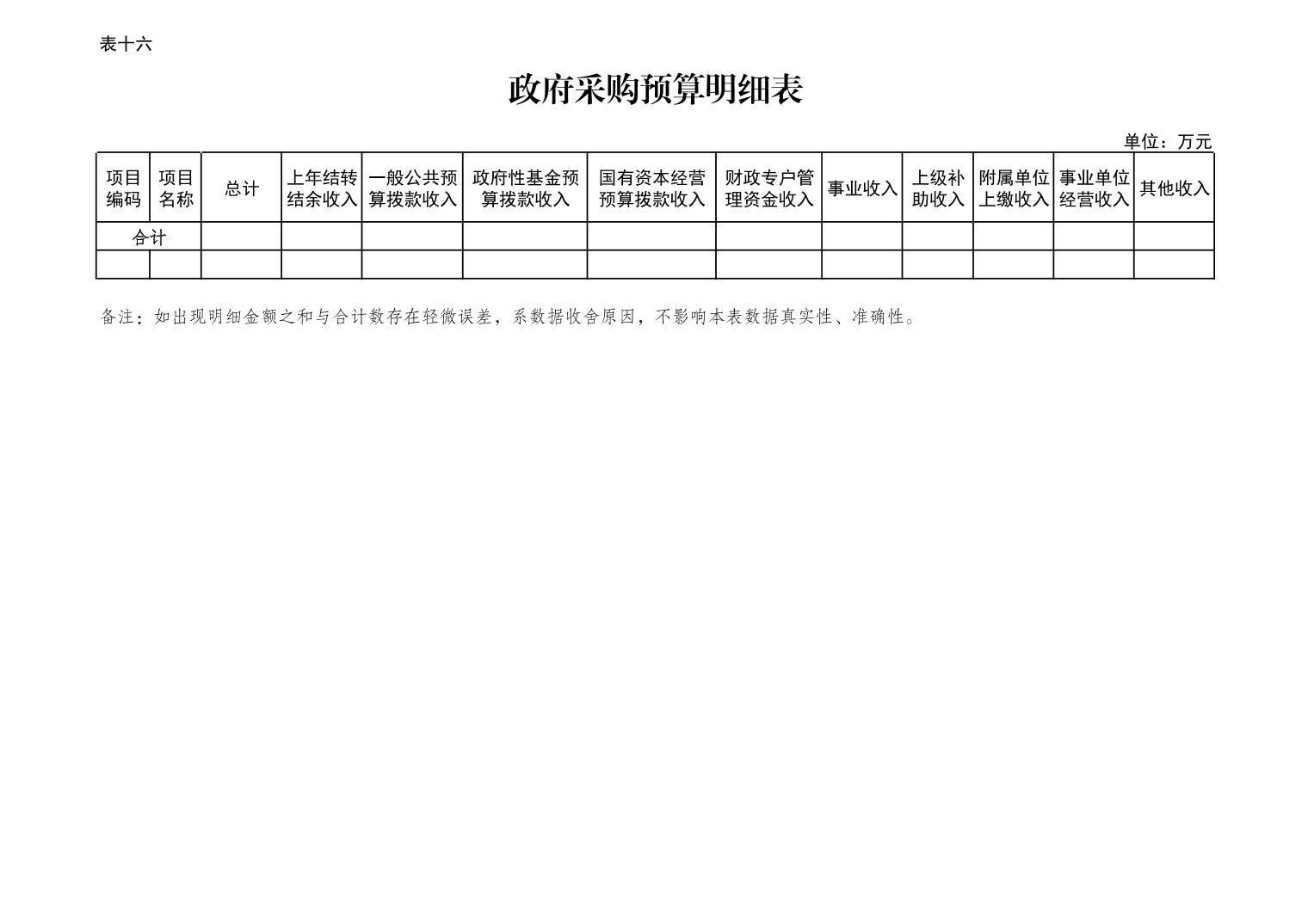 | 政府采购预算明细表 | |||||||||||||