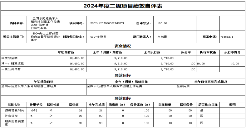 秀山土家族苗族自治县平凯街道退役军人服务站2024年度决算公开说明