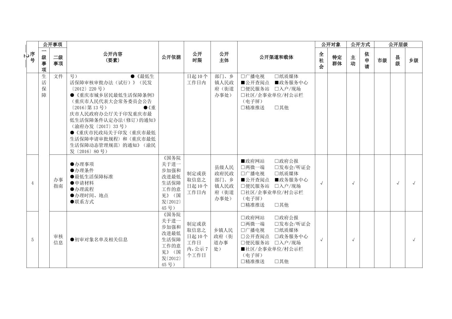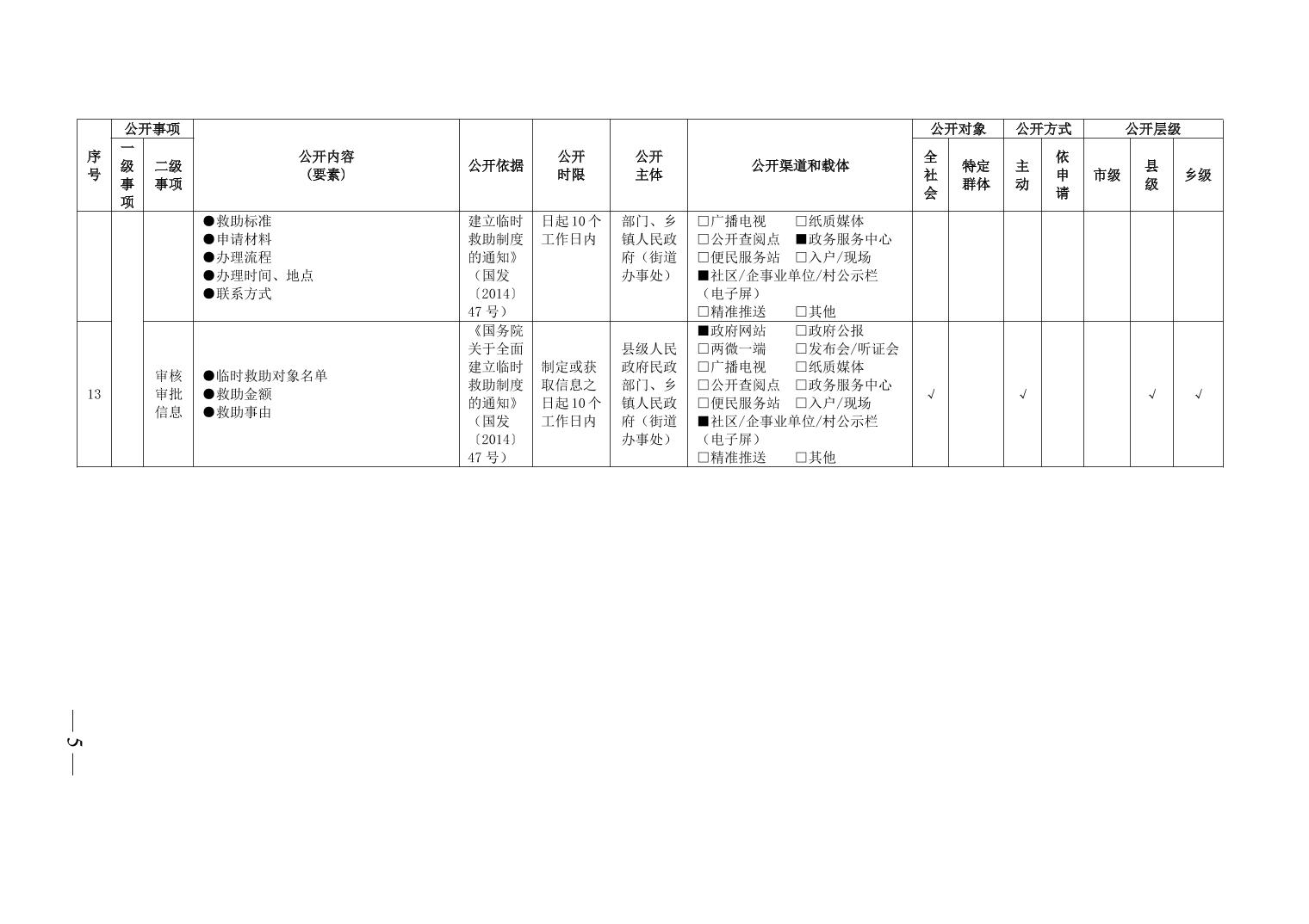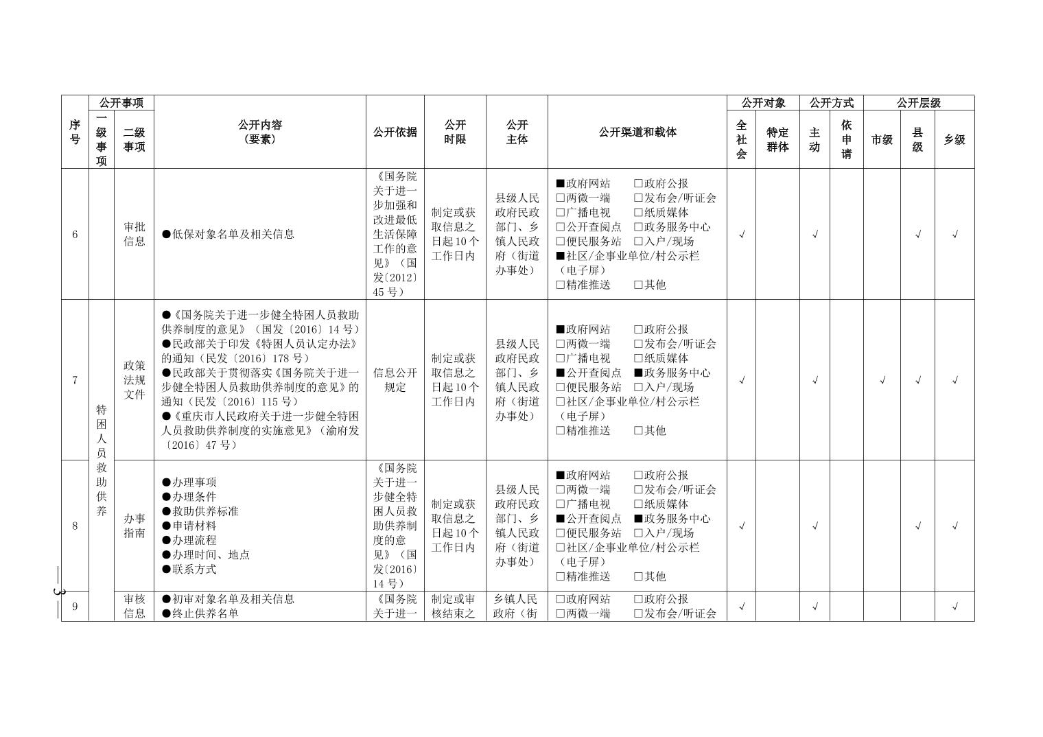 首页>中平乡人民政府>政务公开>政府信息公开目录>基层政务公开>社会救助领域>标准目录
