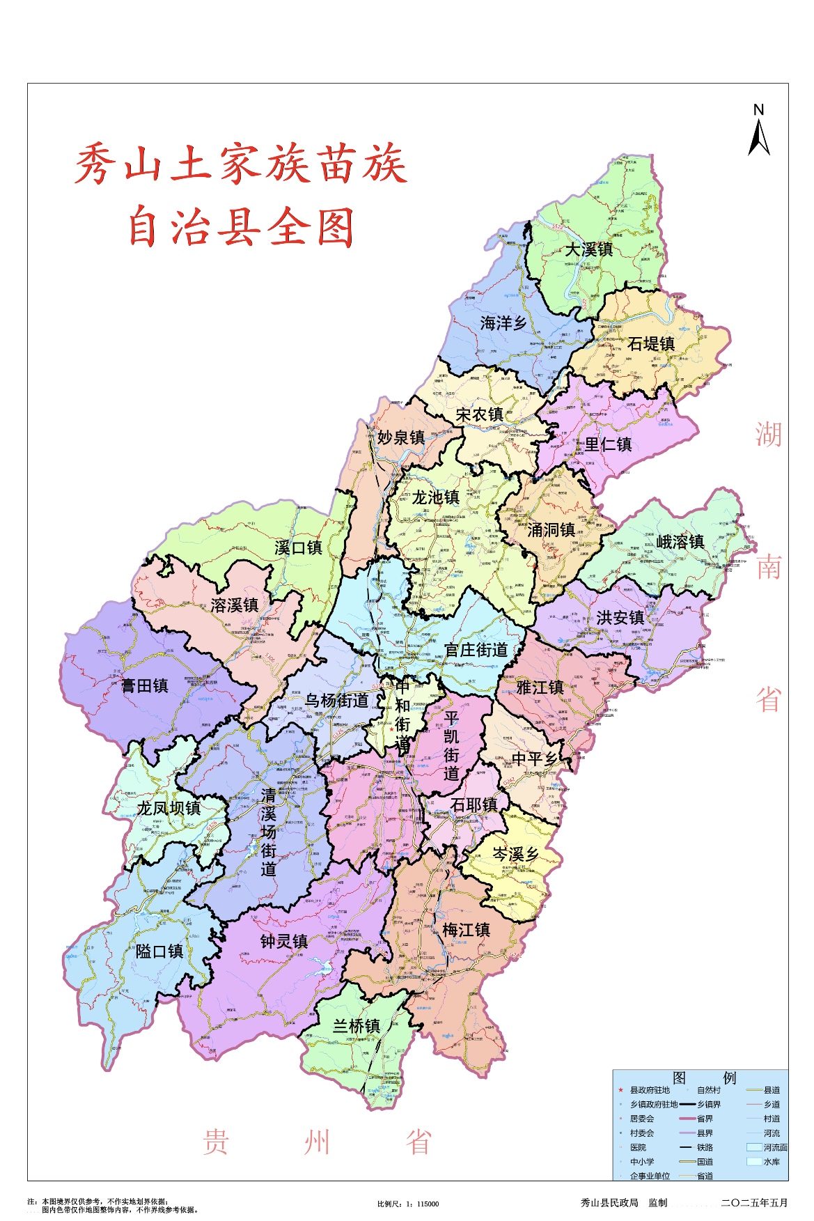 全县辖区内辖27个乡镇、街道。分别为5个街道:中和街道、平凯街道、乌杨街道、官庄街道,清溪场街道,22个乡镇:隘口镇、溶溪镇、龙池镇、石堤镇、峨溶镇、洪安镇、雅江镇、石耶镇、梅江镇、龙凤坝镇、兰桥镇、膏田镇、溪口镇、妙泉镇、宋农镇、里仁镇、钟灵镇、涌洞镇、海洋乡、大溪镇、中平乡、岑溪乡。