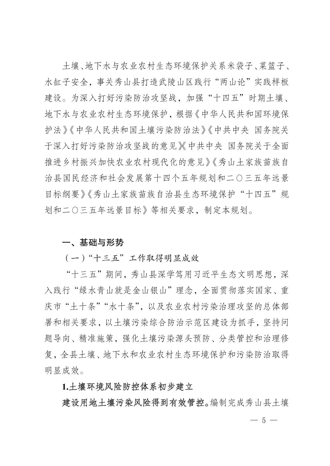 秀山土家族苗族自治县人民政府办公室关于印发《秀山土家族苗族自治县土壤(含地下水、农村污染)污染防治“十四五”规划》的通知