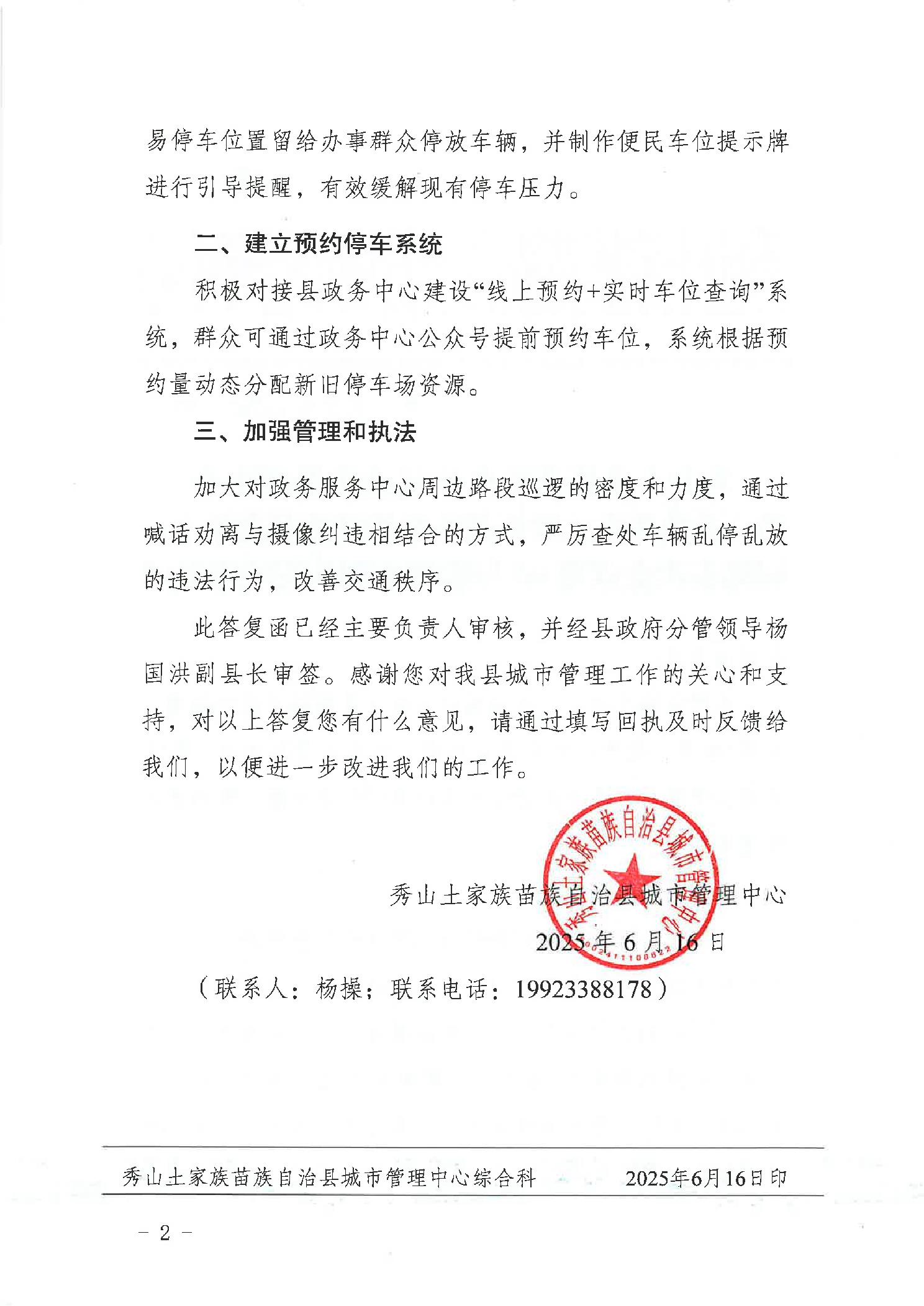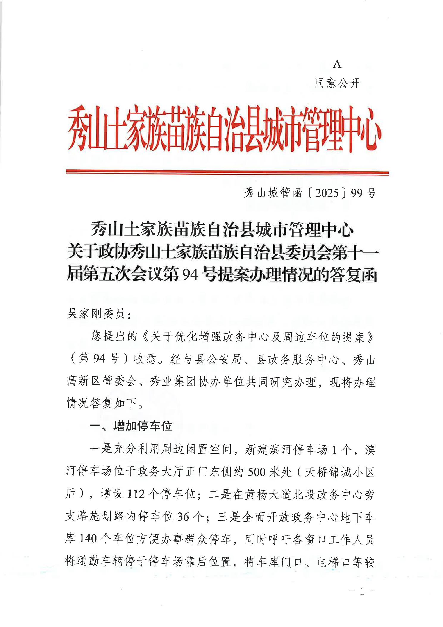 秀山土家族苗族自治县城市管理中心 关于政协秀山土家族苗族自治县委员会第十一届第五次会议第94号提案办理情况的答复函