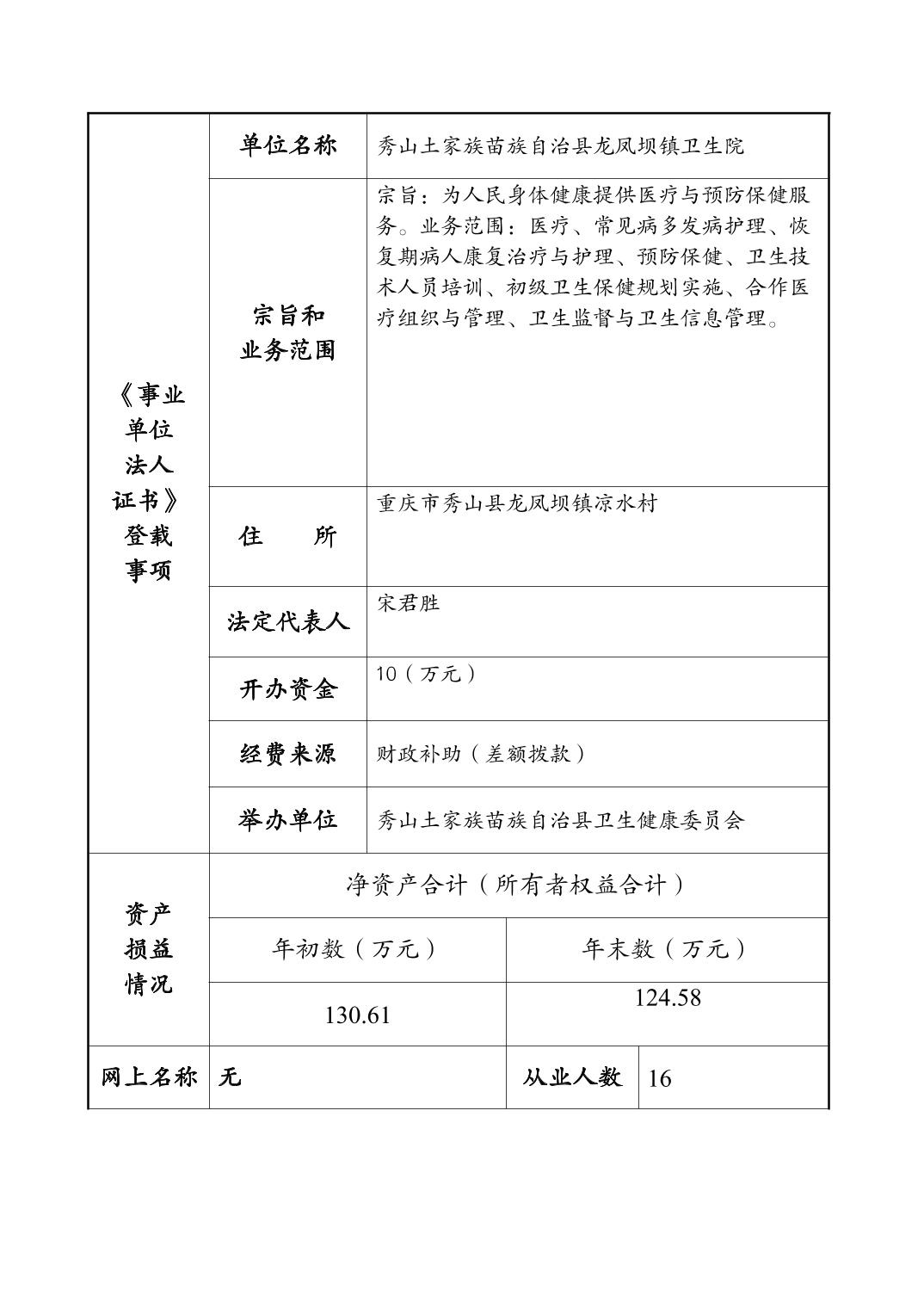 秀山土家族苗族自治县龙凤坝镇卫生院